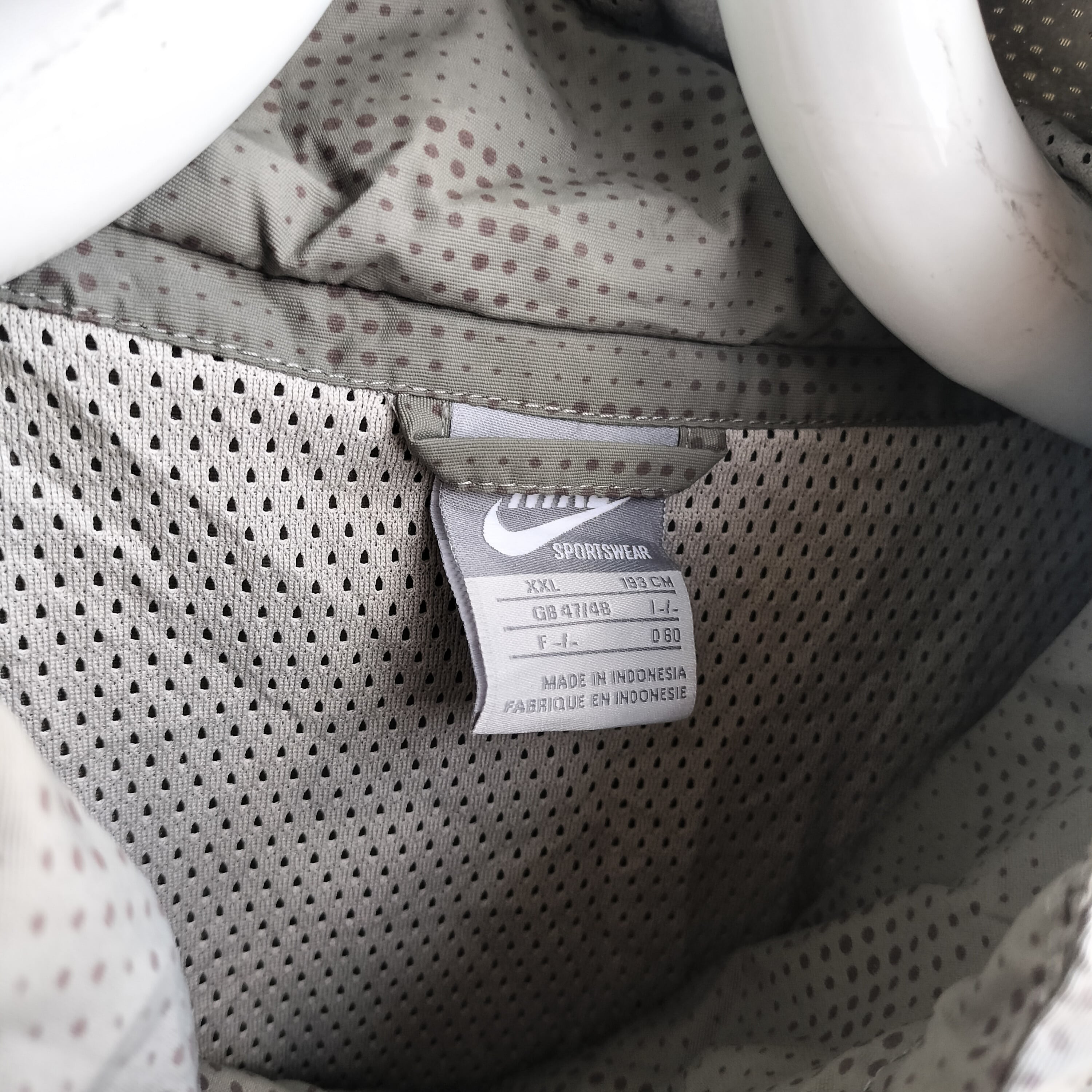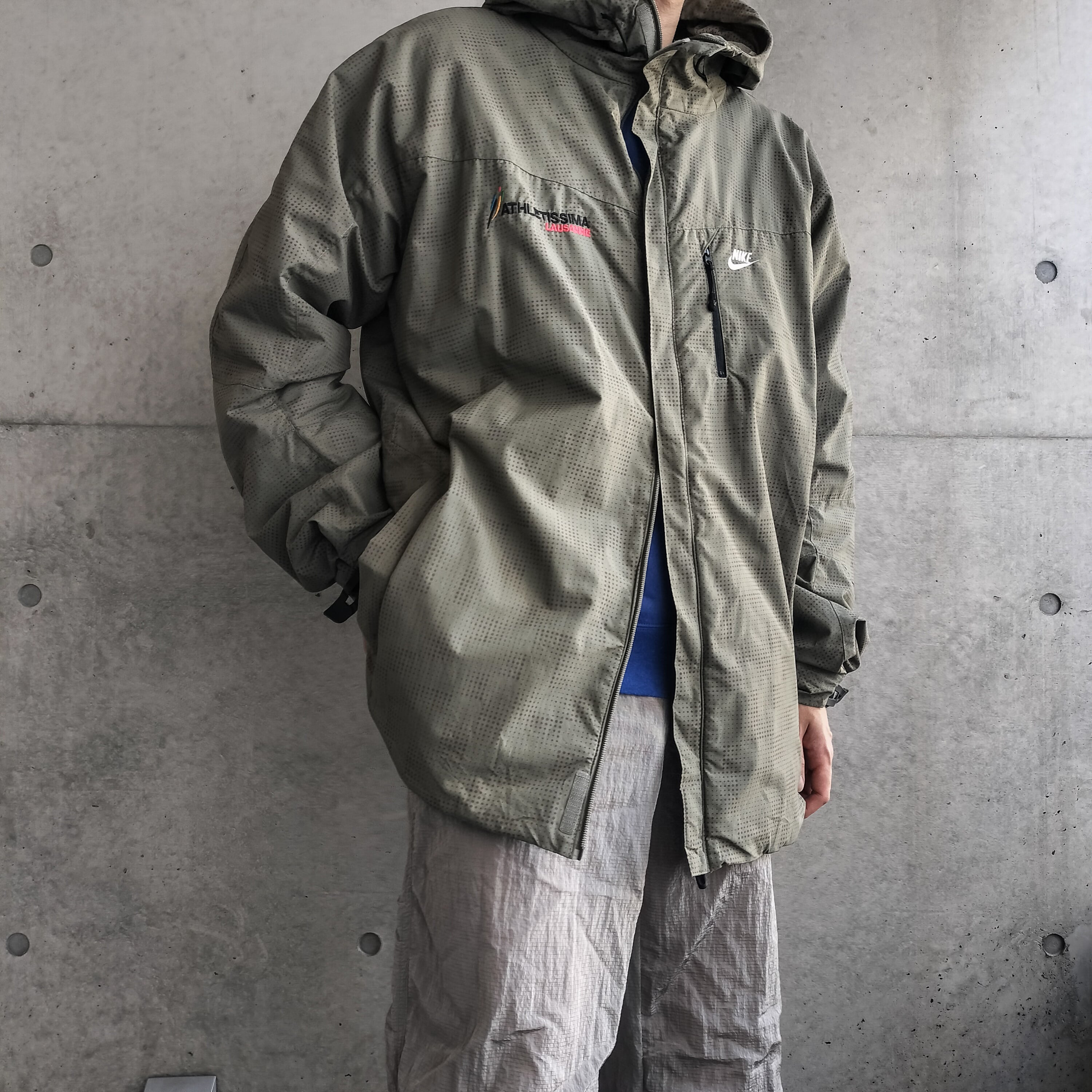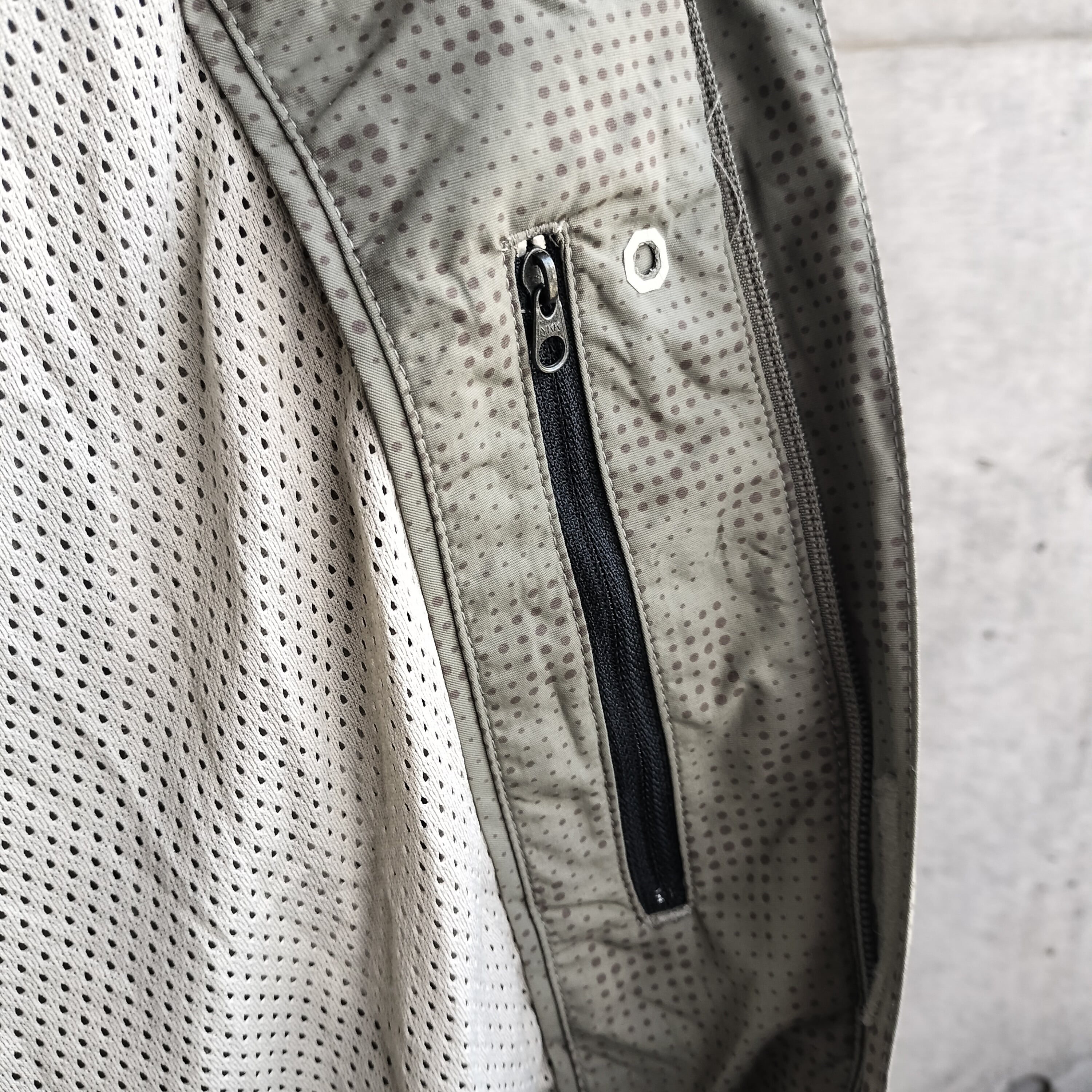 NIKEのアクティブジャケット。ナイキの特徴的なドットをミリタリーに落とし込んだ珍しいデザイン。ナイキでミリタリーっていうのが最高ですね。裏地メッシュで軽い生地。アームは立体的な細かい切替です。
