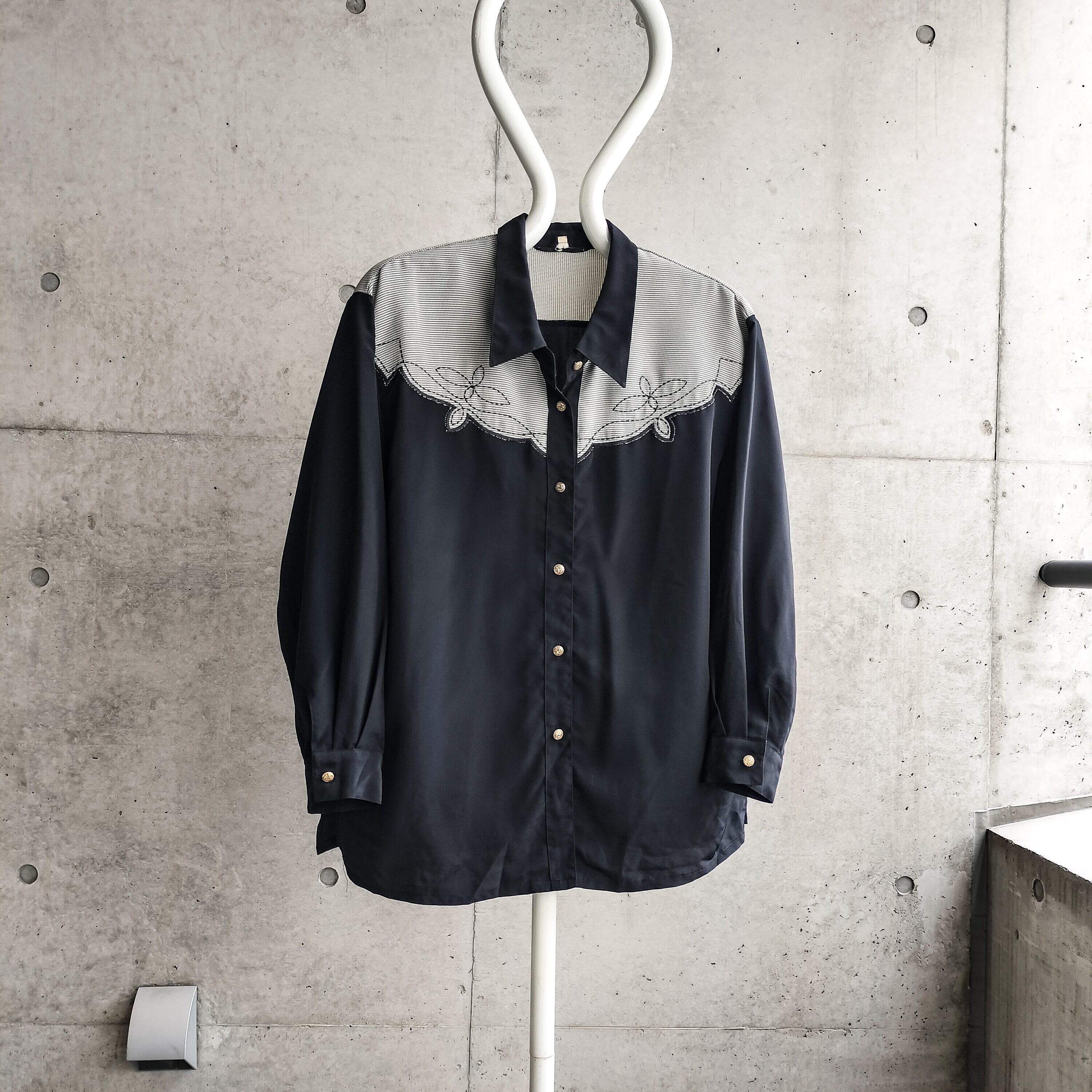 個人的オススメシャツ。ヨーク部分がチェックパターンの花柄刺繍。ヨークの切替部分が荒い切りっぱなし風の処理。この絶妙な雰囲気とデザインが最高です。Tシャツに羽織るだけでもカッコイイです。
