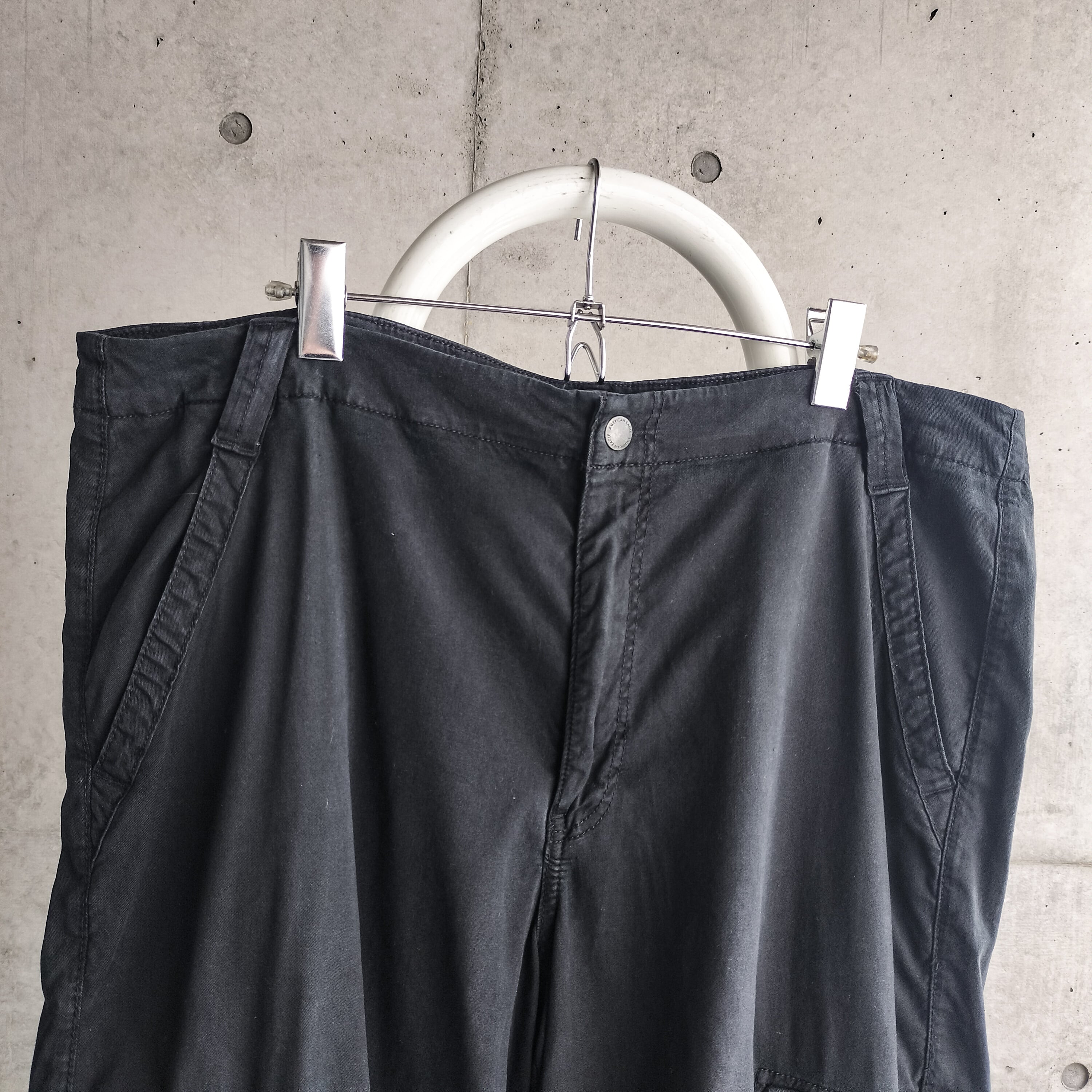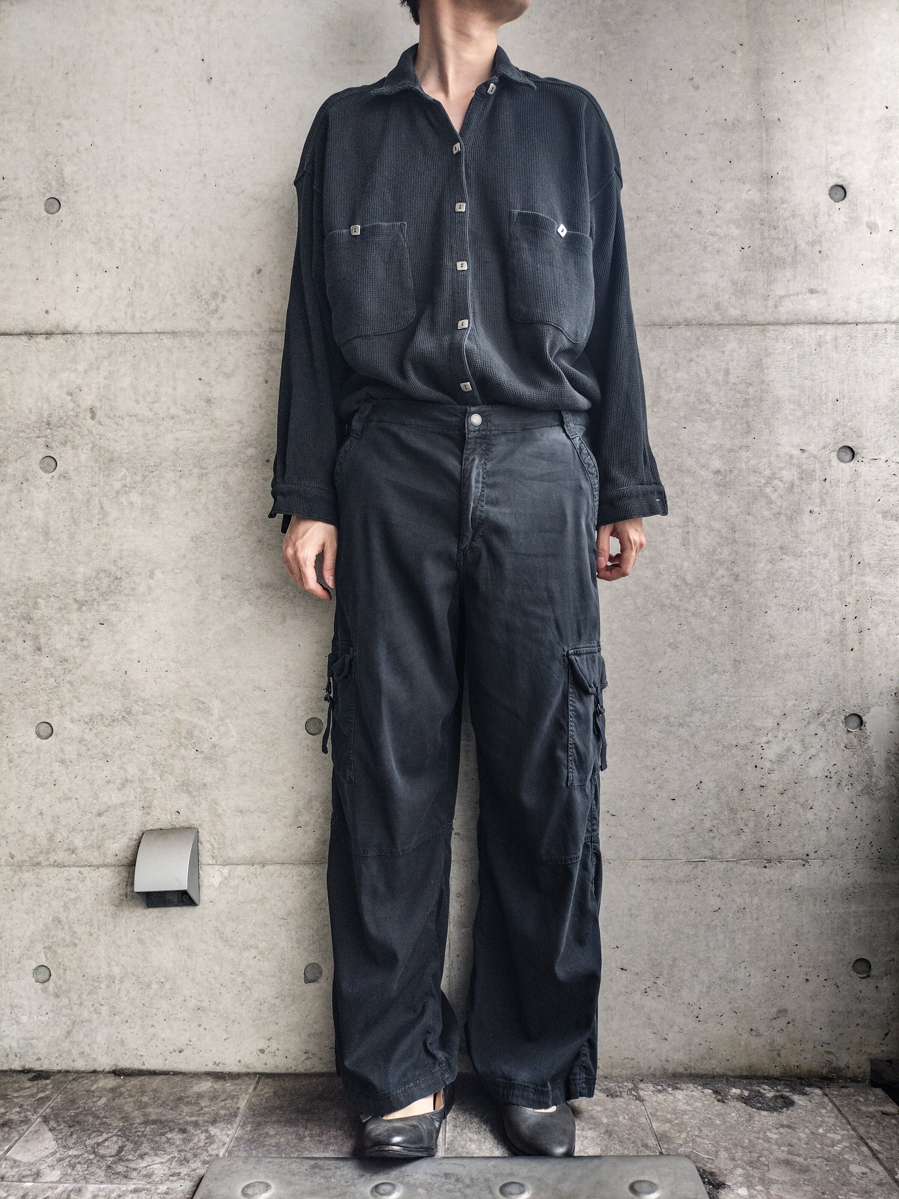 墨黒ブラックのカーゴパンツの入荷です。めちゃくちゃシルエットが綺麗なワイドストレートシルエット。墨黒なブラックなのもいいです。