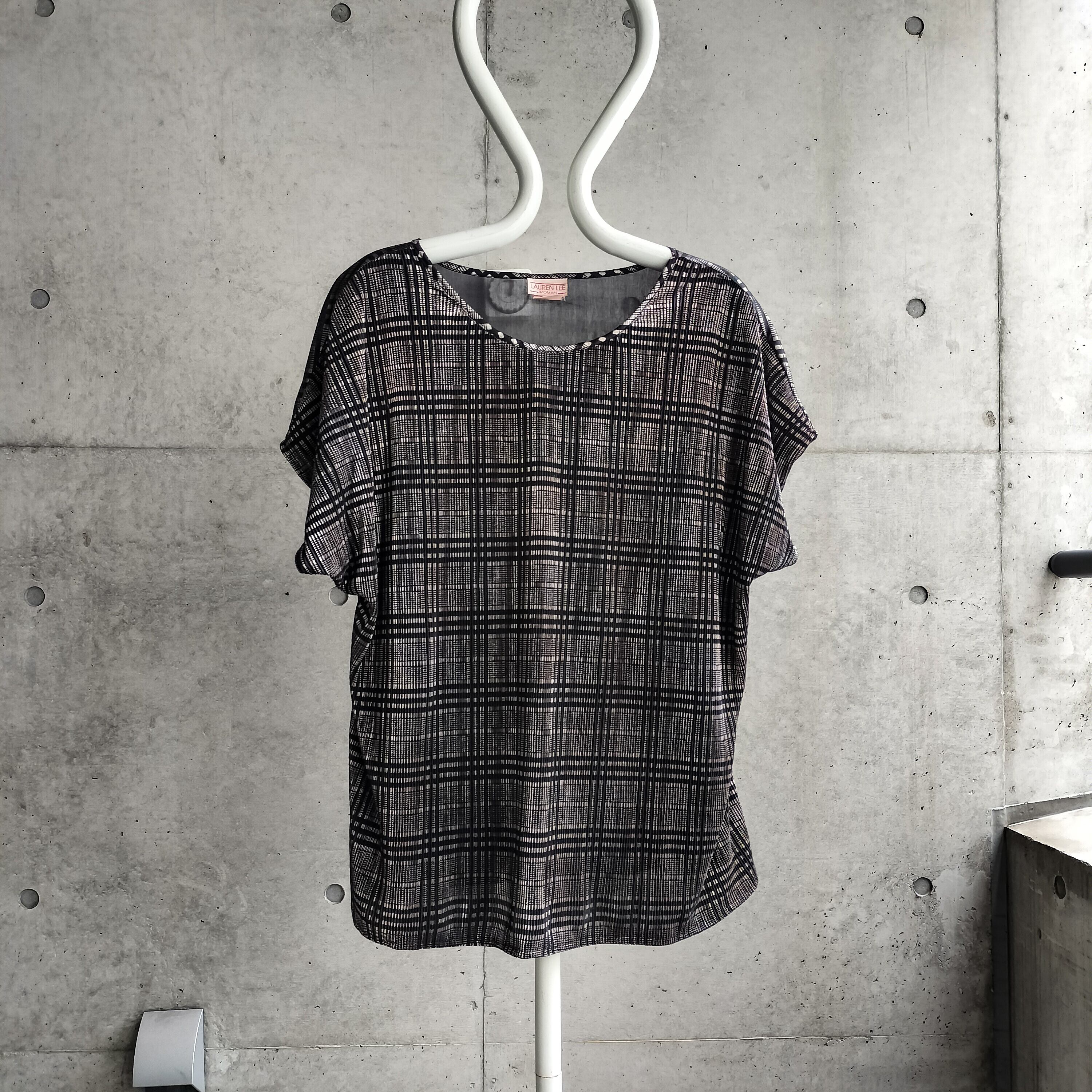 vintage Made In USA black pleats check Tee