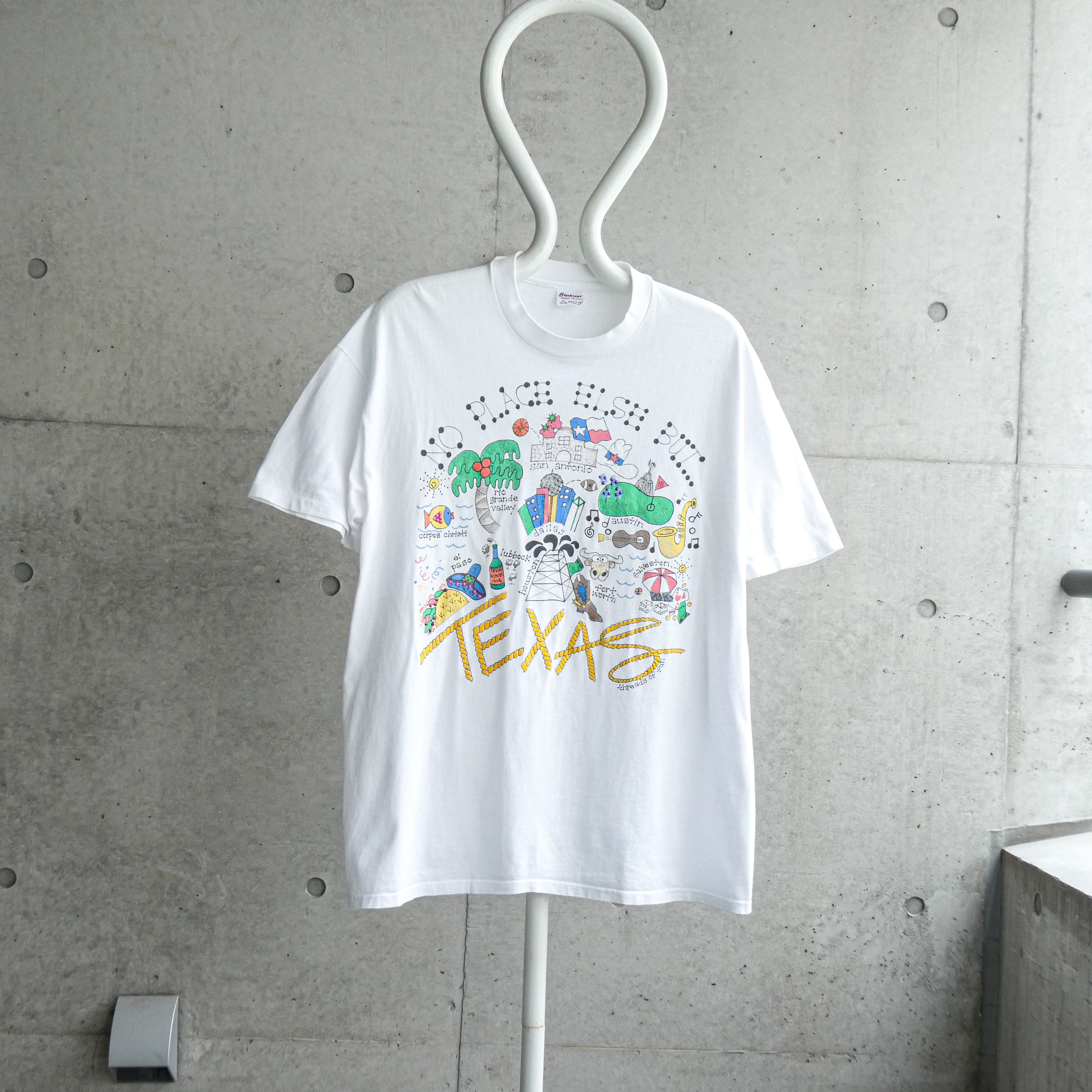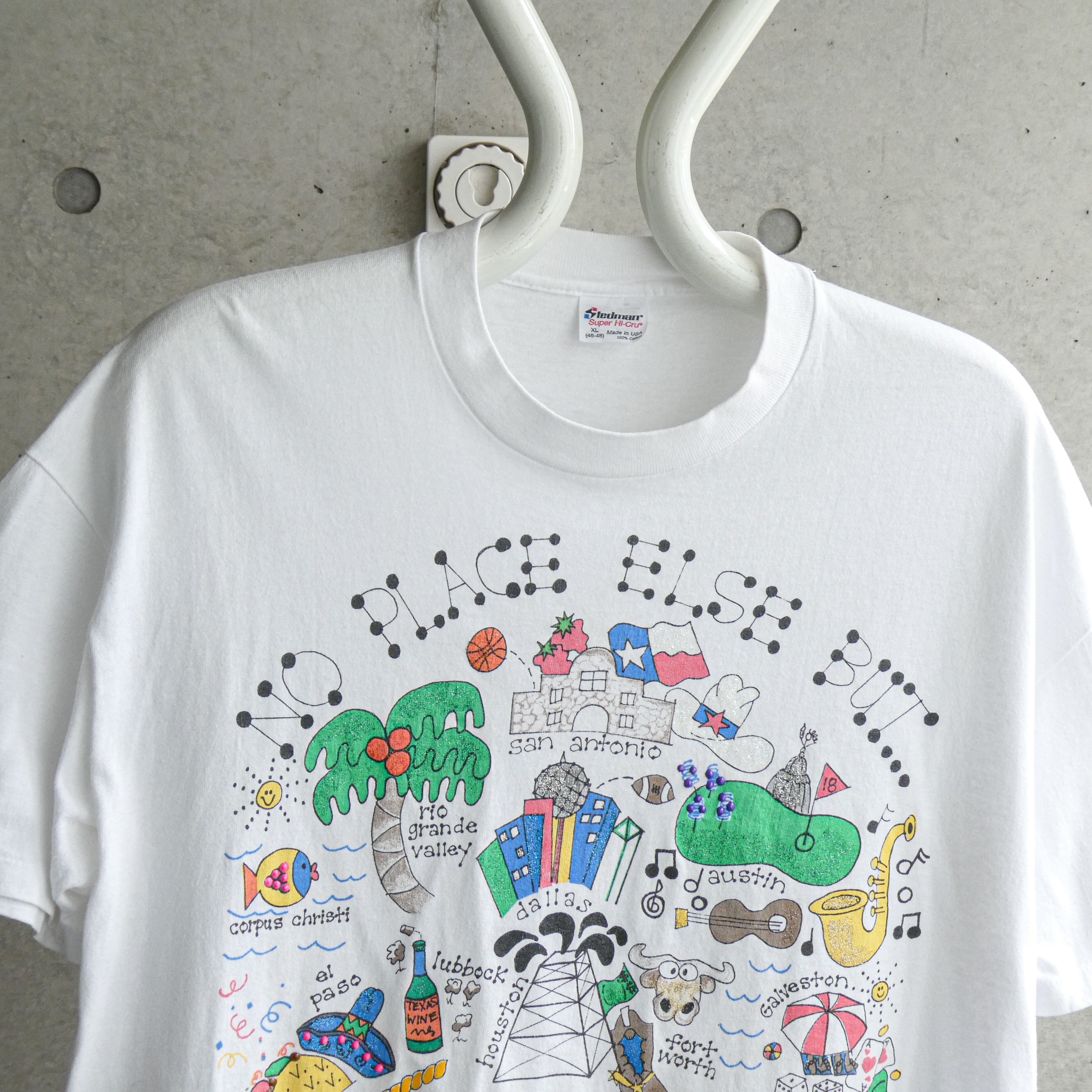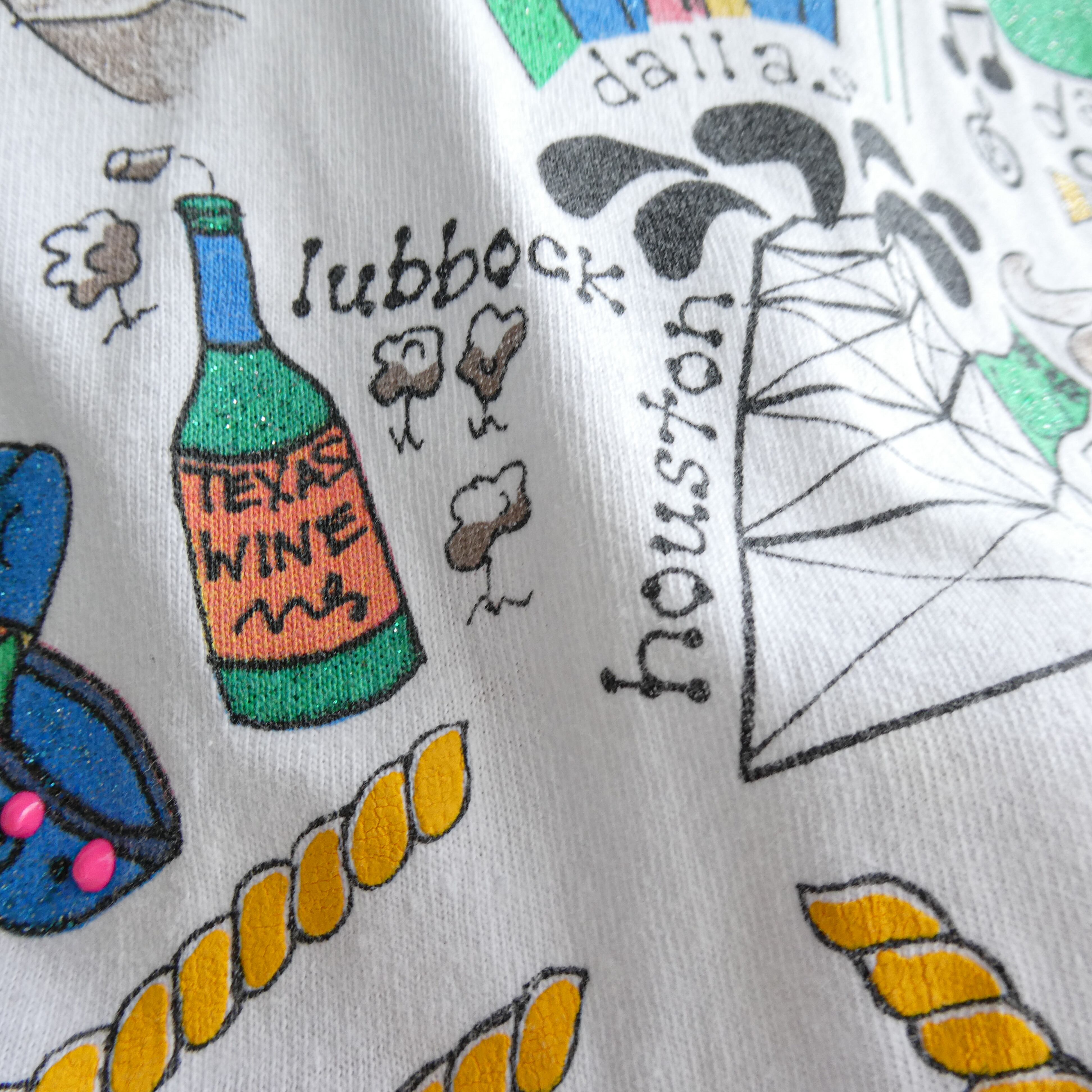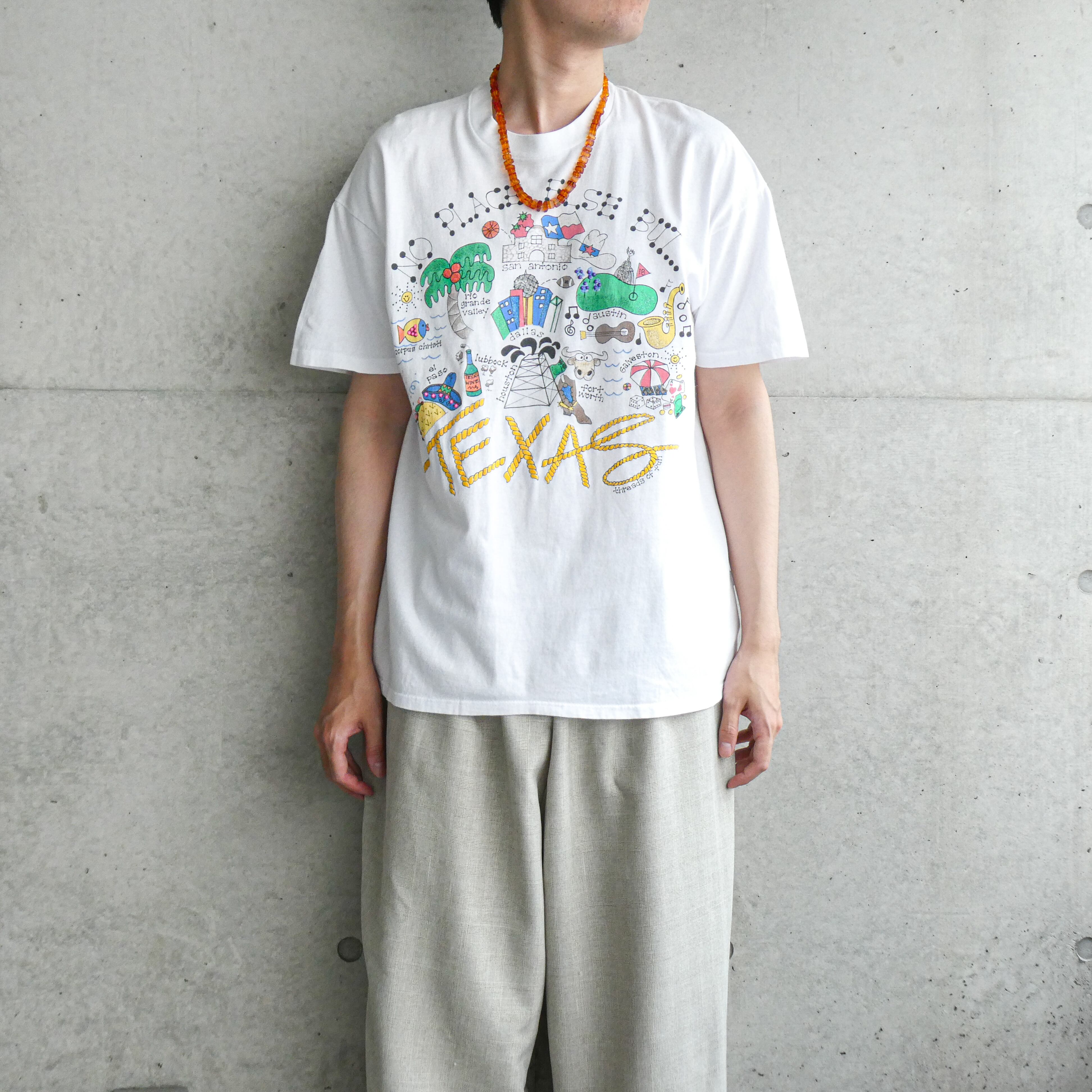 USA製。ハンドペイント風のプリントにラメが乗せられたデザインTee。全体の色味、雰囲気がいいTeeです。シングルステッチ。1枚は勿論、シャツの下に仕込んだ時に雰囲気出せるTeeを厳選してピックしてます。