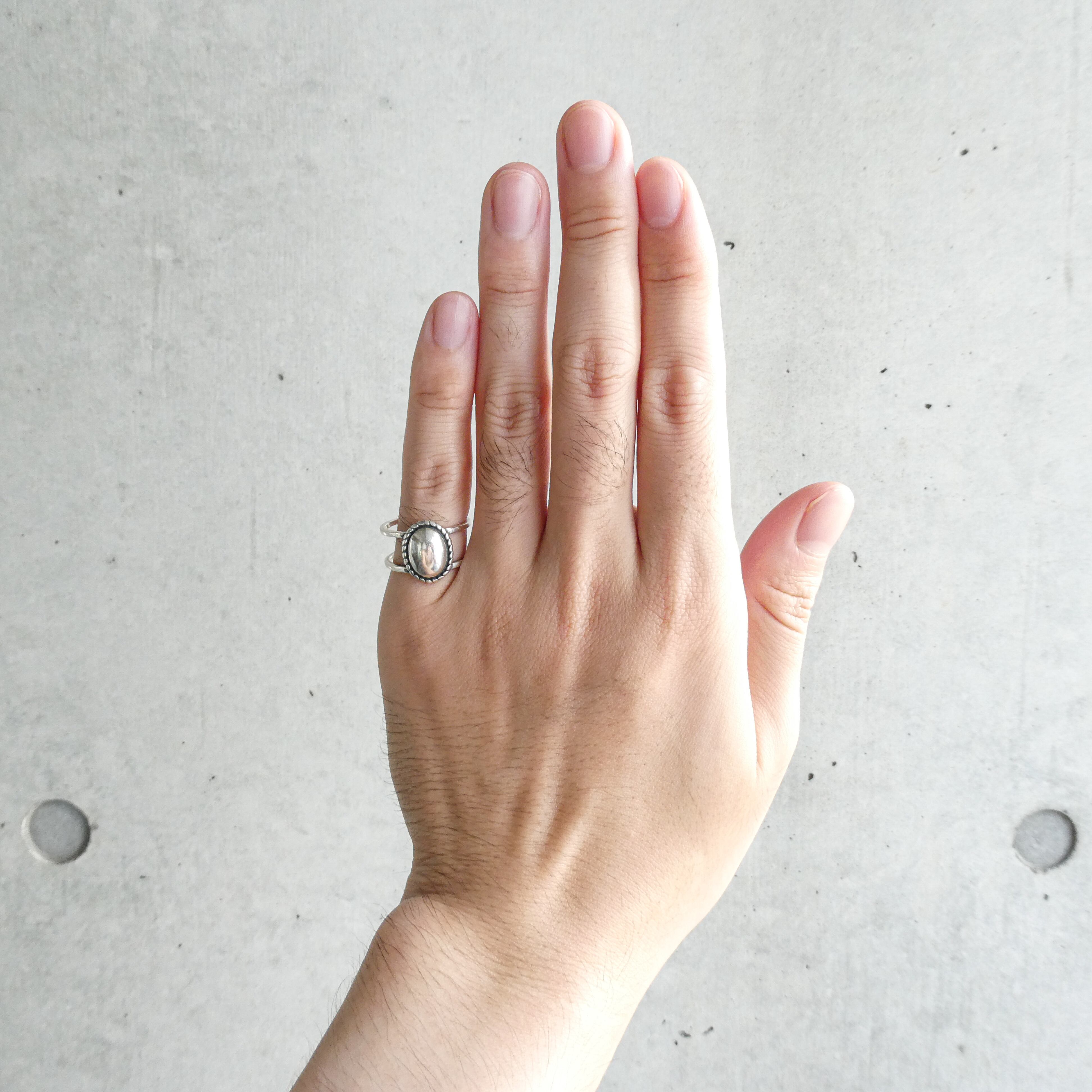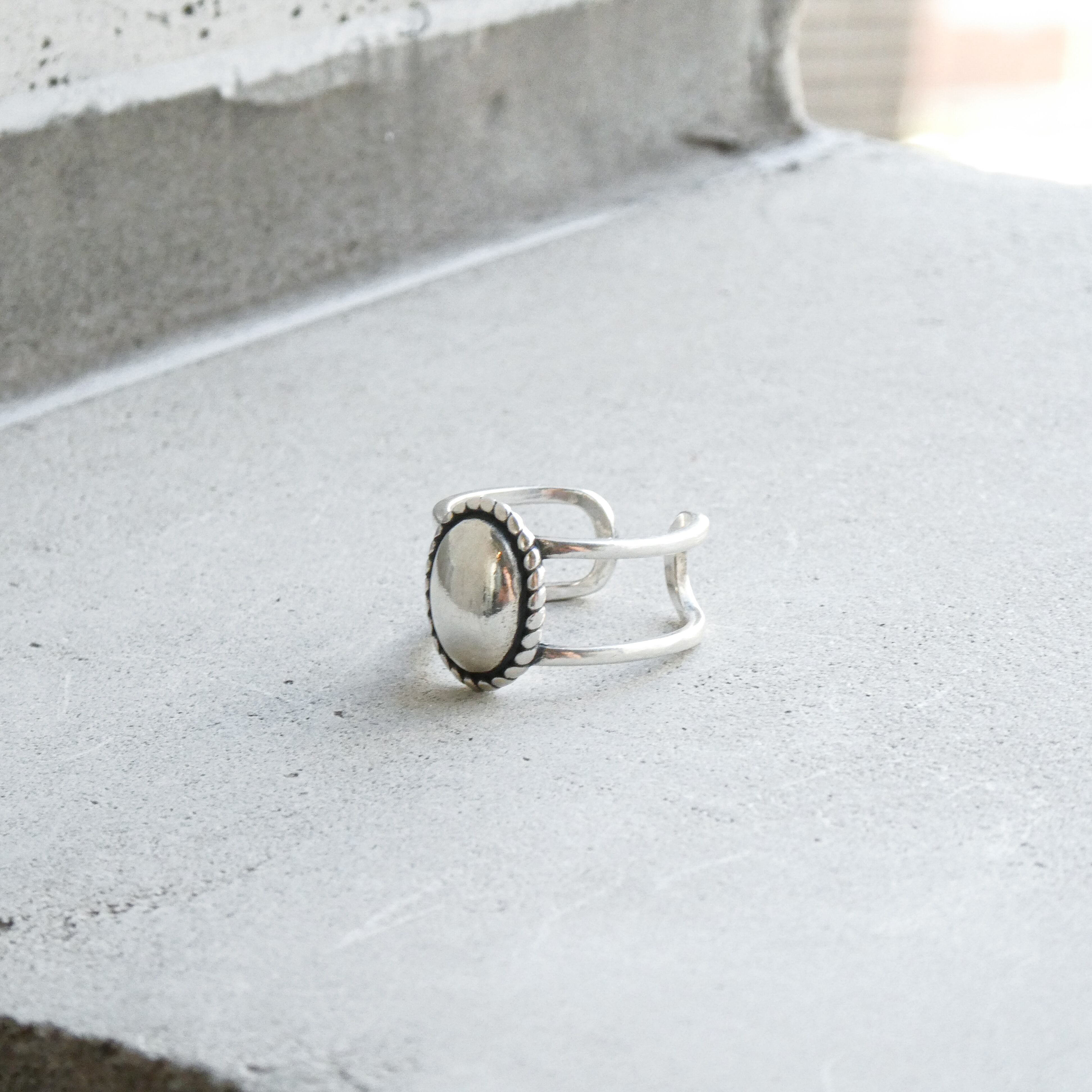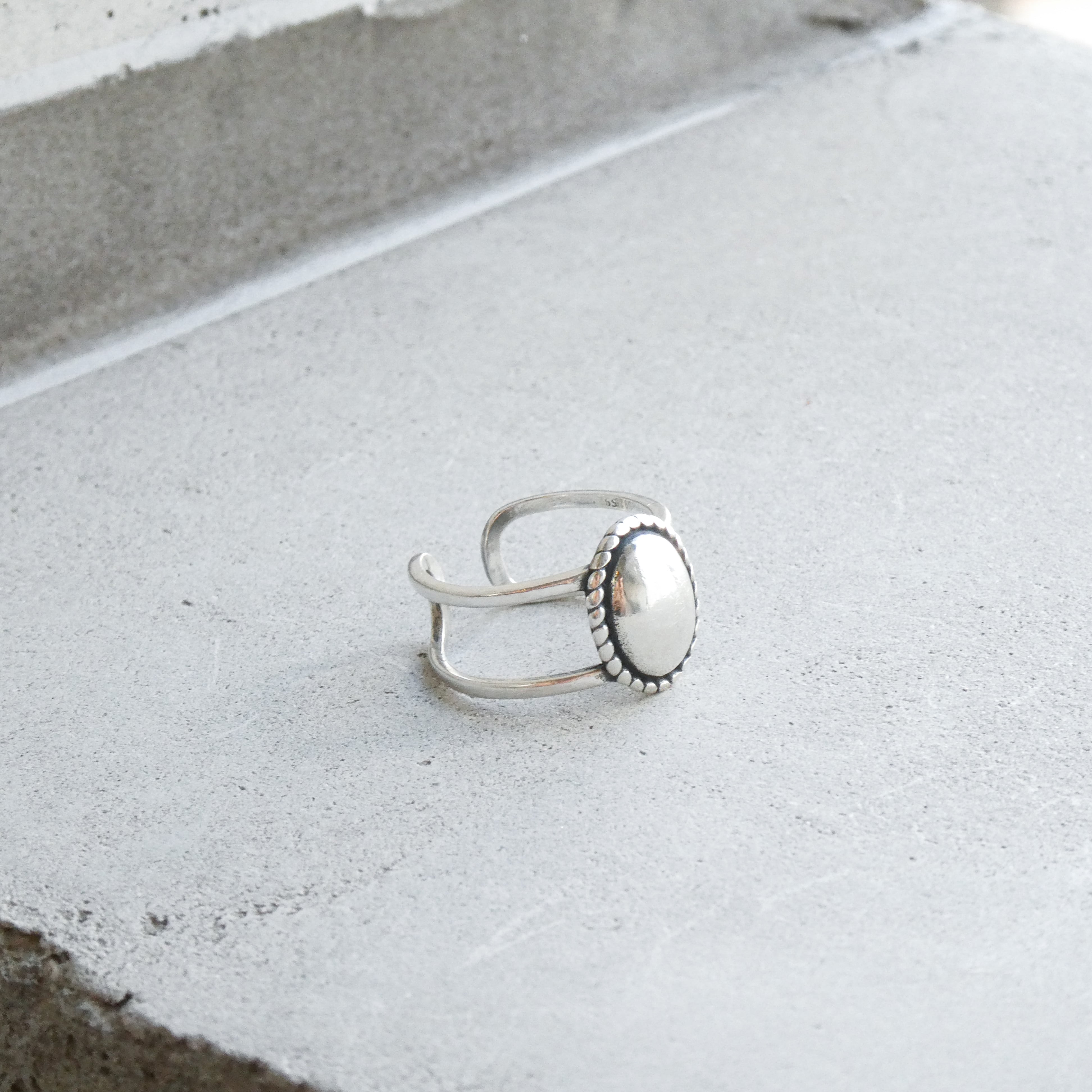 シルバー925のリング。花柄のようなデザインのリング。シルバー単色のシンプルなデザインで使い易いです。ブリッジが2本なのもいいアクセントです。