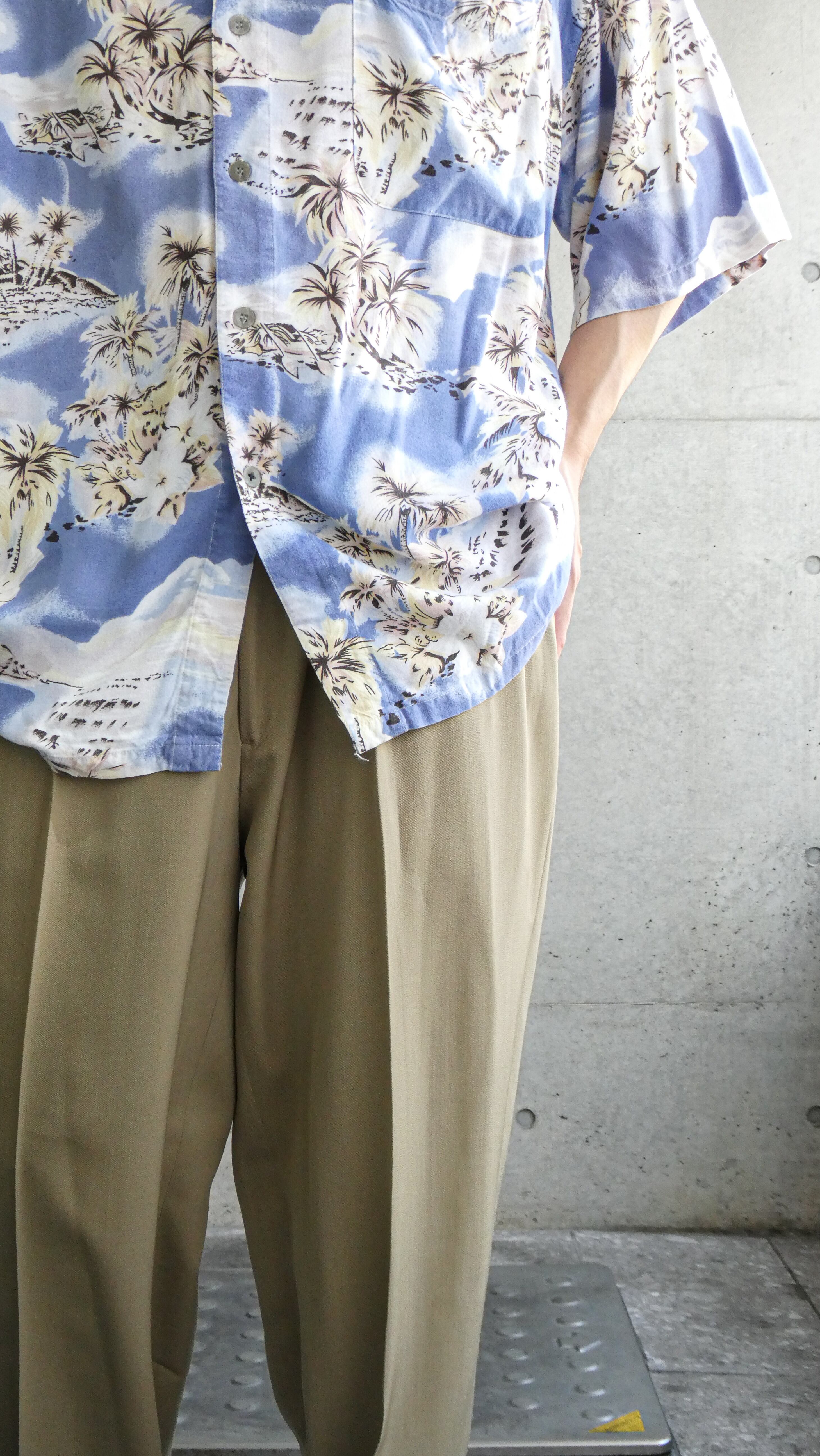 発色の綺麗なブルー、イエローのレーヨンアロハ。トロトロなレーヨン生地です。スラックスに合う綺麗目なアロハを厳選してます。こんだけ暑いと涼しげな色味も大事だなって最近思います。