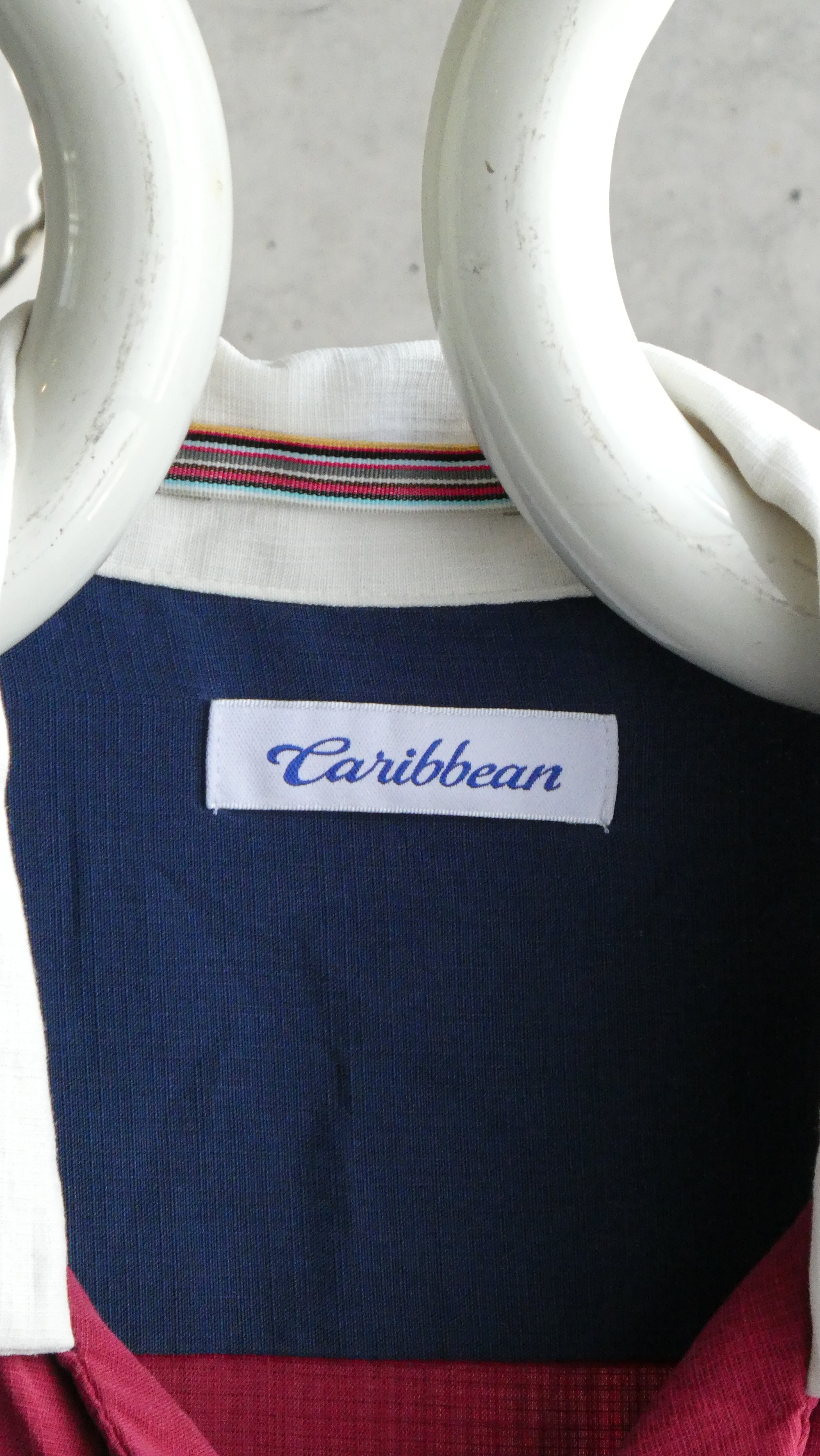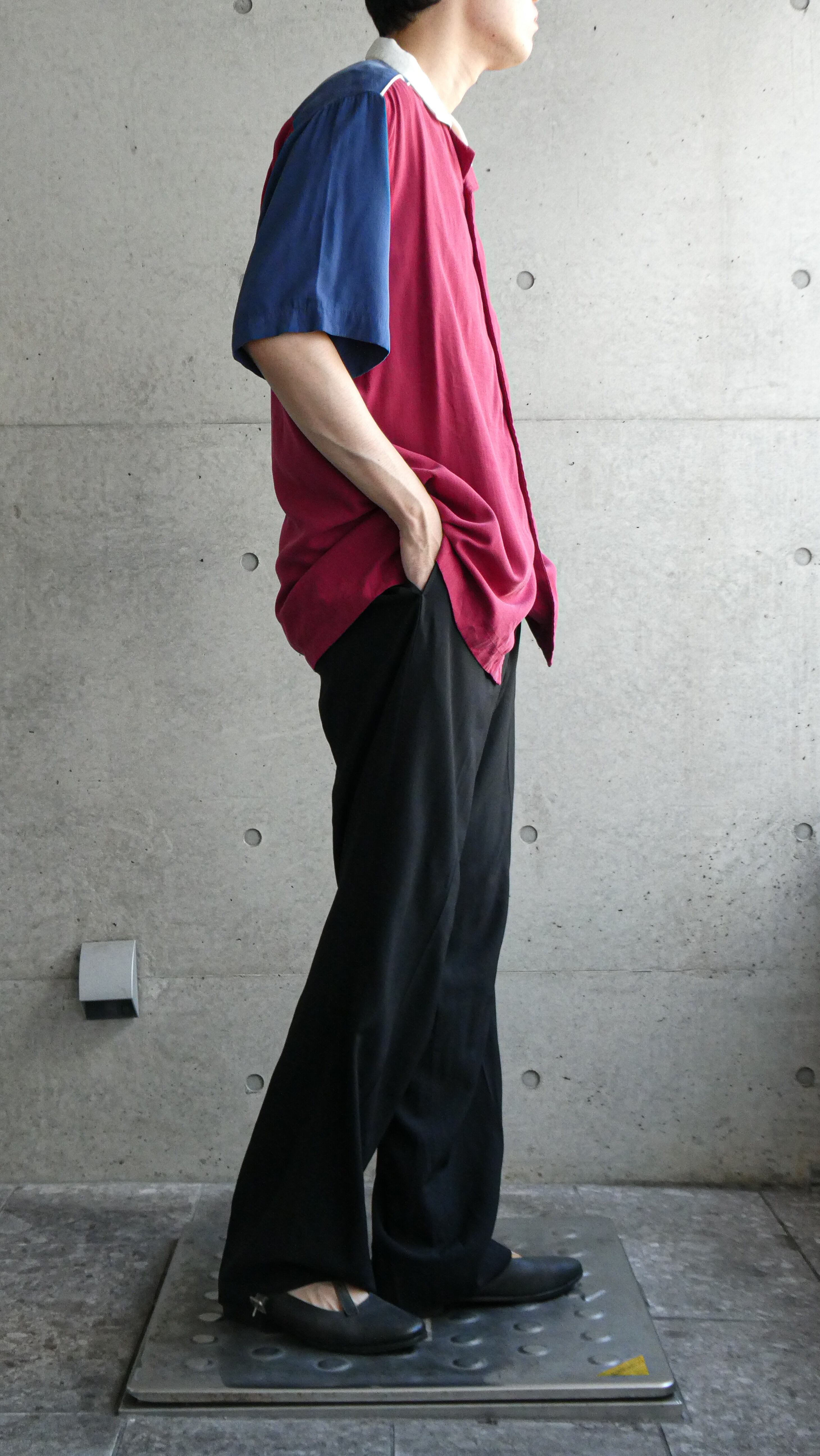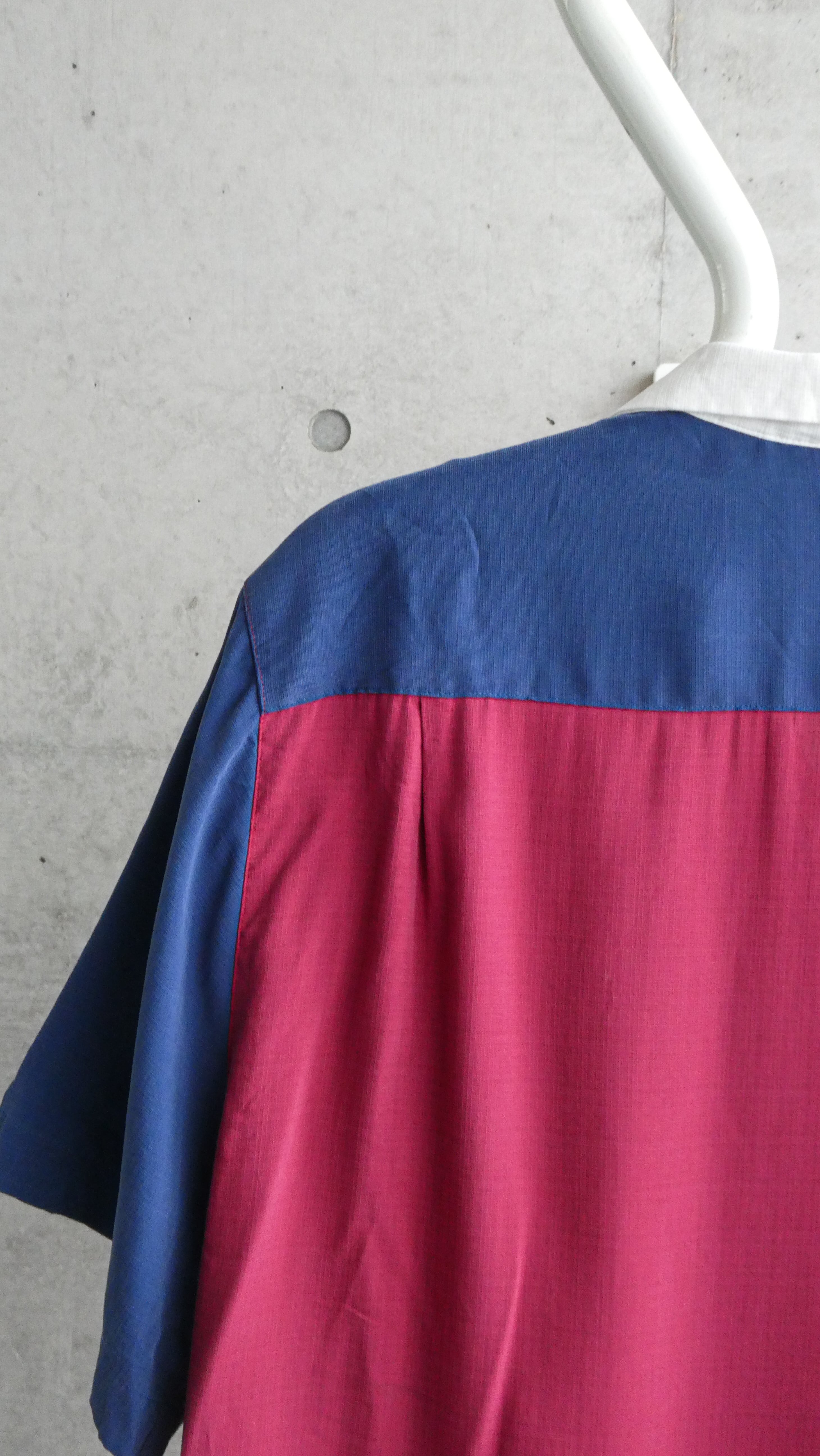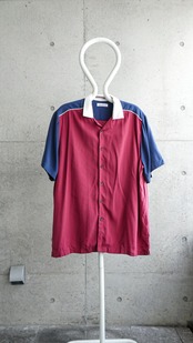 マルーンカラー、ブルー、ホワイトの3トーンの切替。miumiuのメンズやプラダの2013ssを彷彿とさせる切替パターン。襟も異素材の白切替なのが◎。シルエットも完璧です。