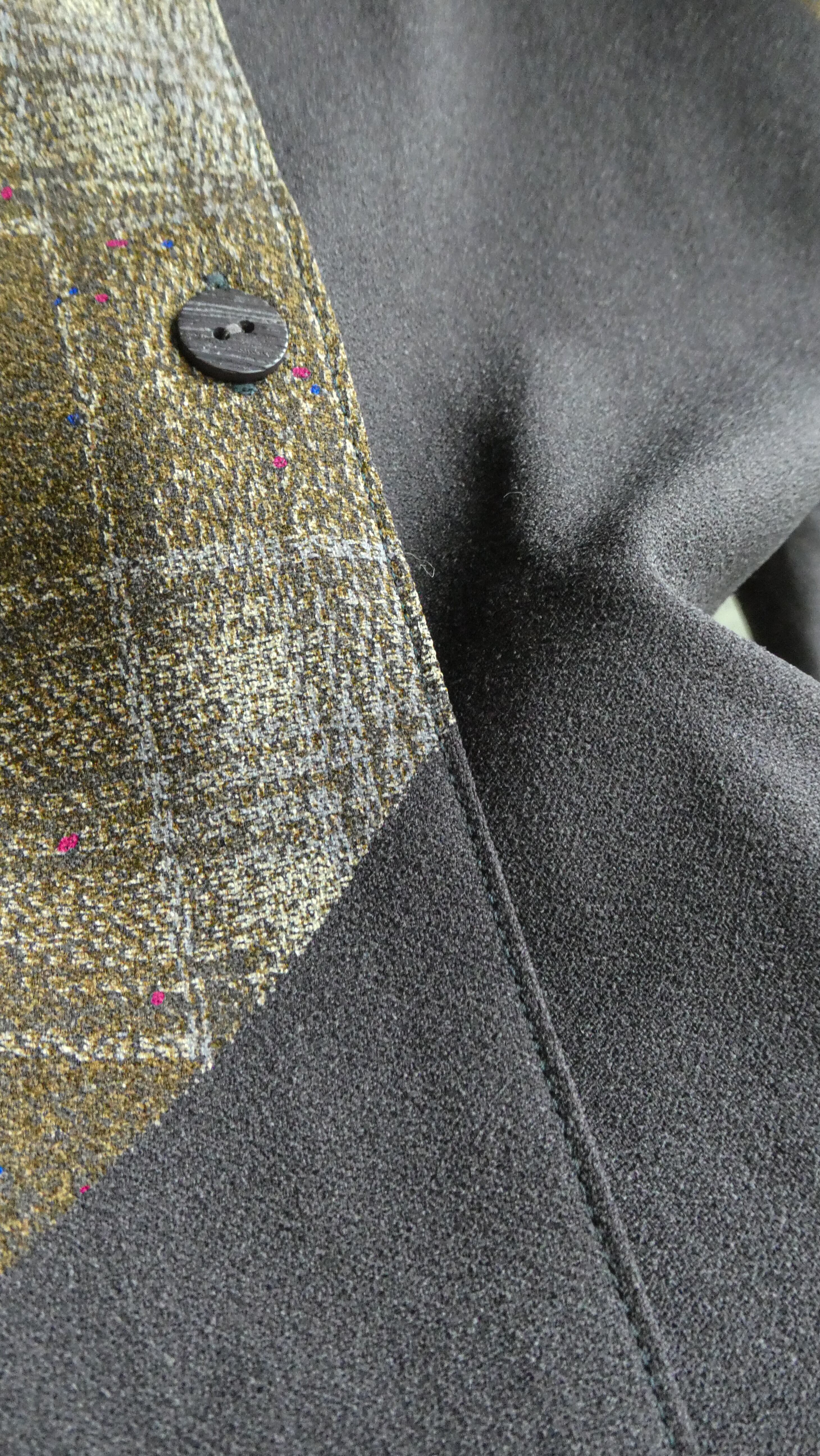 凄く気分な7部丈のシャツ。オンブレチェックのブラウンベースに切替パターン。深めのサイドスリット。アンニュイな感じが魅力なシャツです。