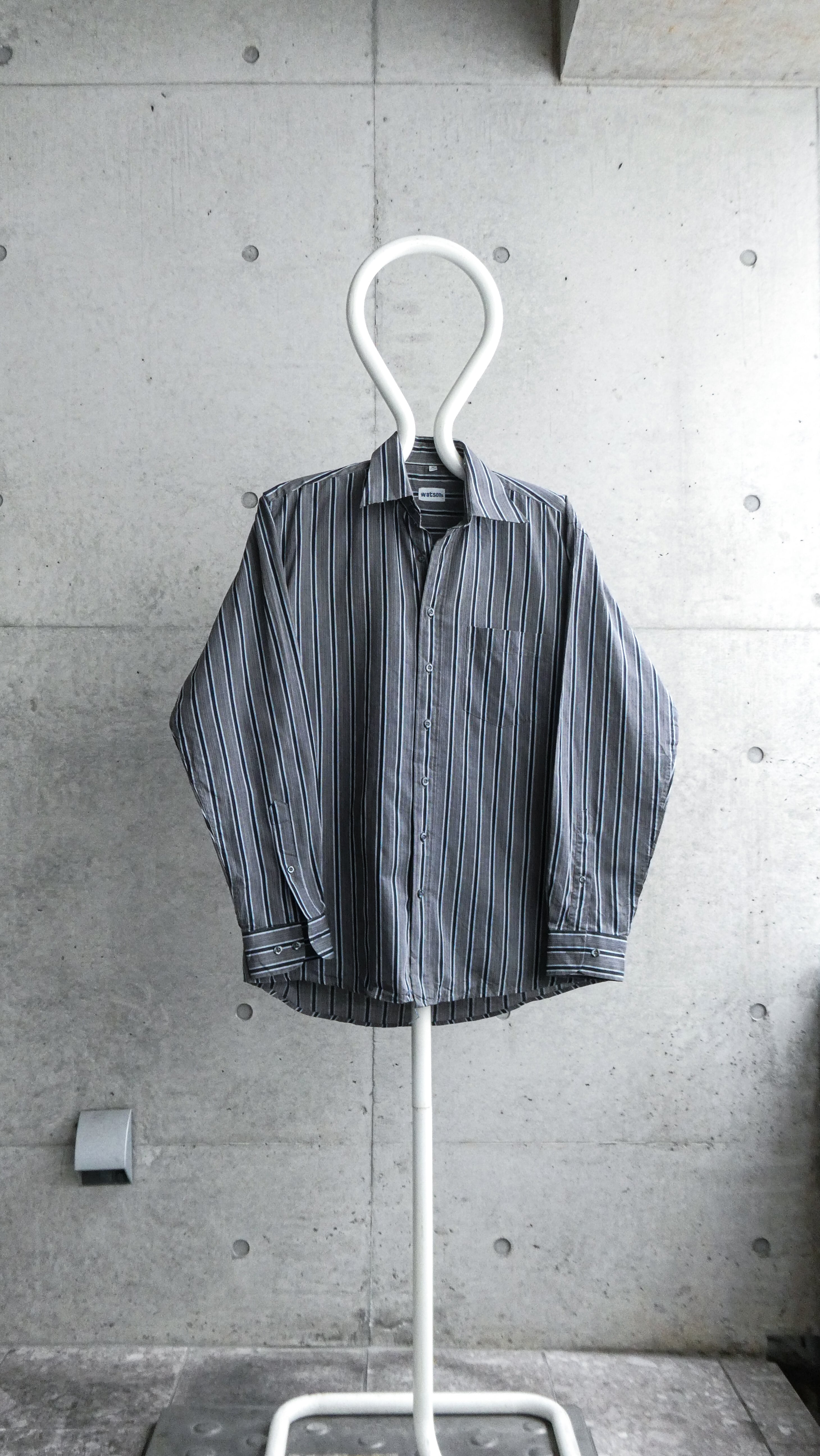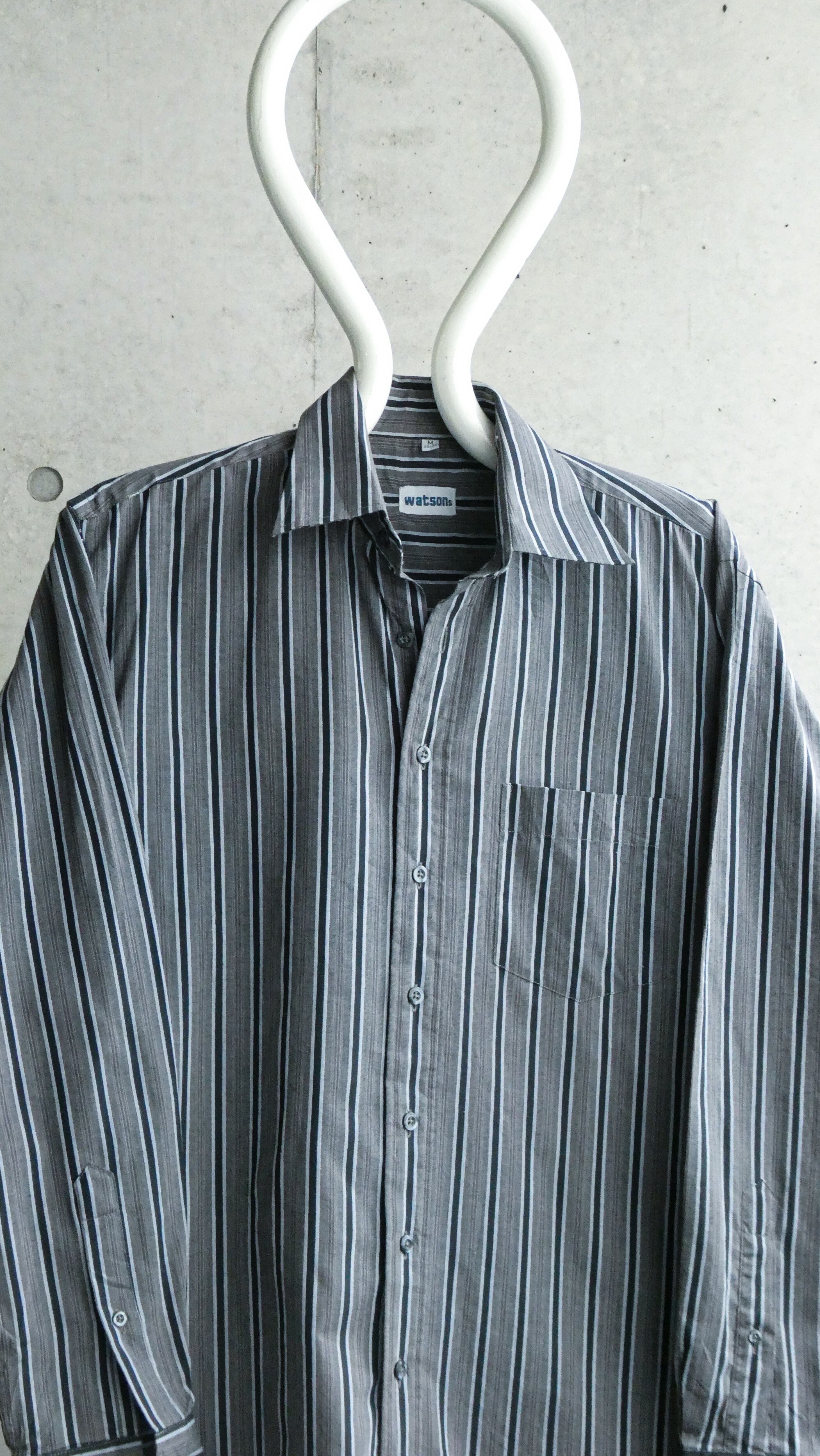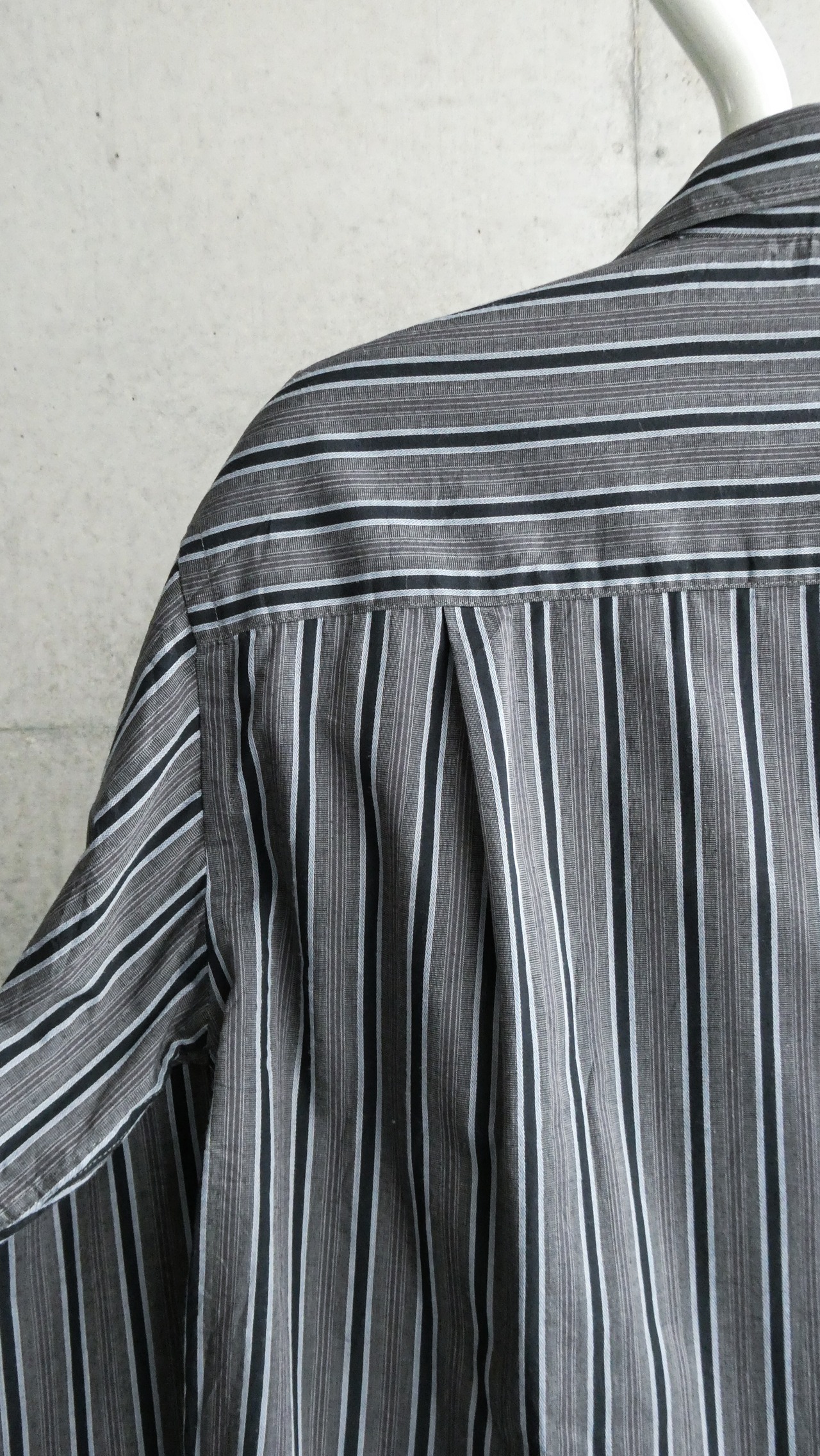 ユーロ物。watsons。ブラック、グレーのストライプ生地。太めなピッチの黒ストライプ。シャリ感のある生地。背面にタック入りです。