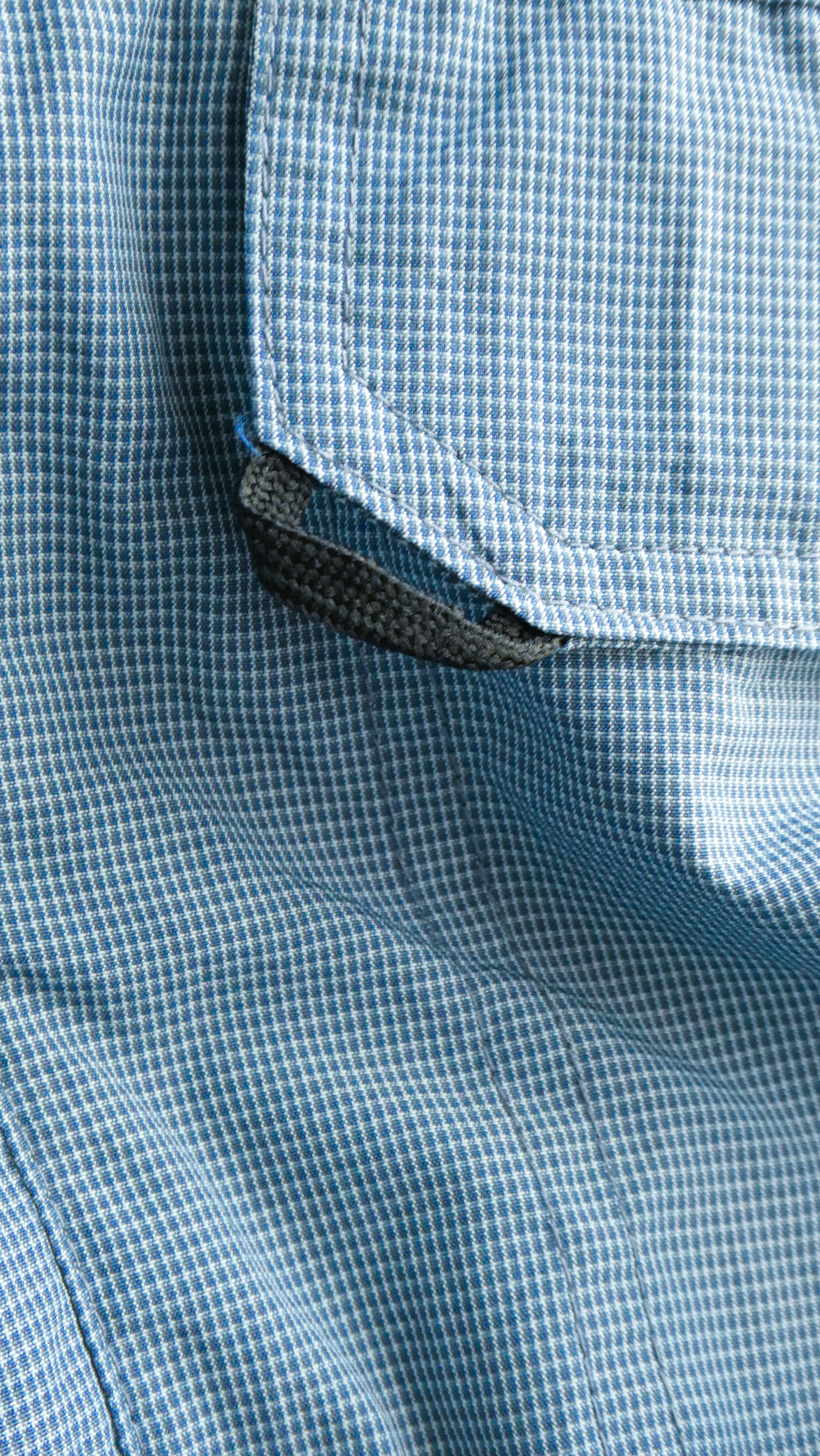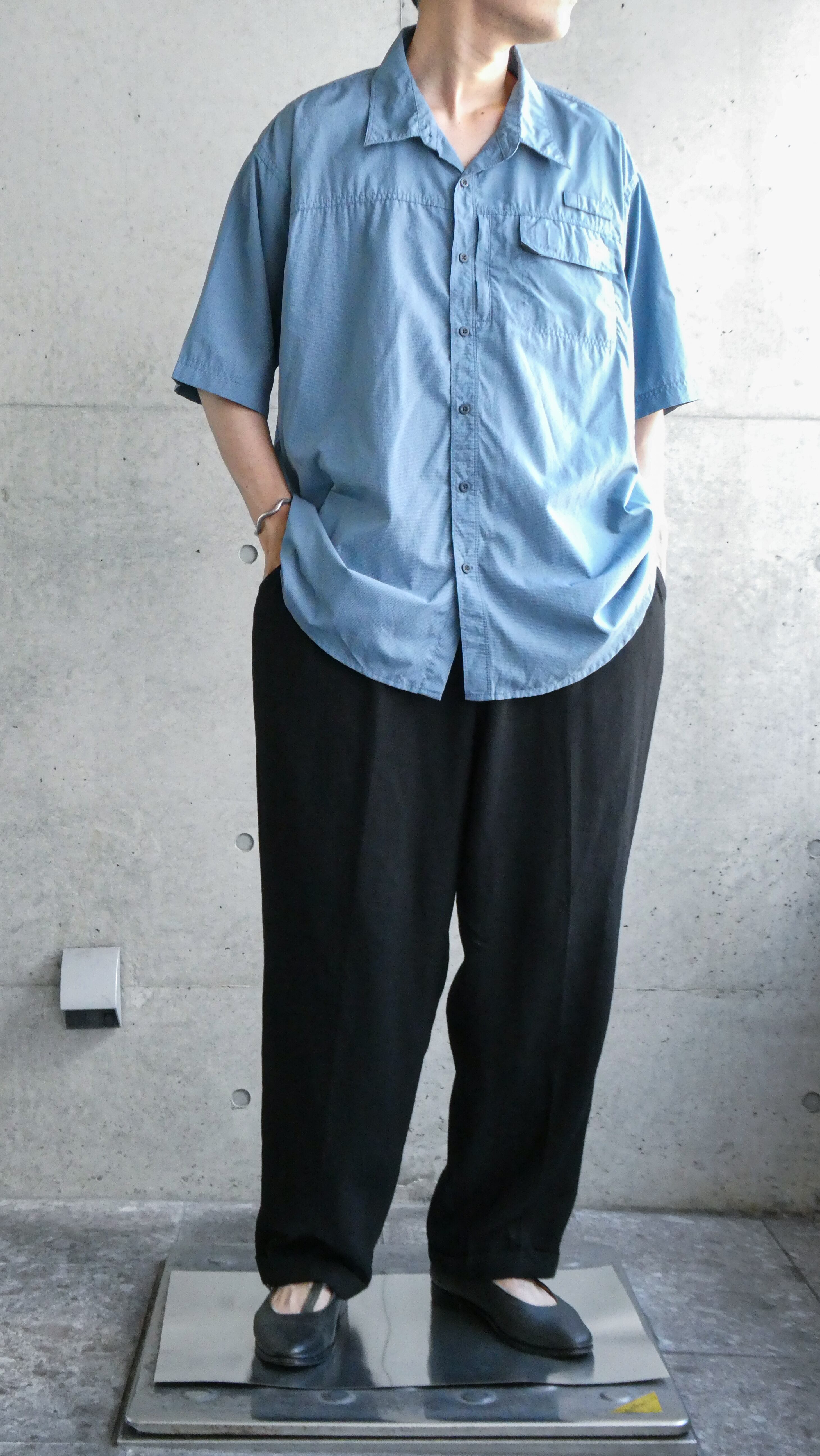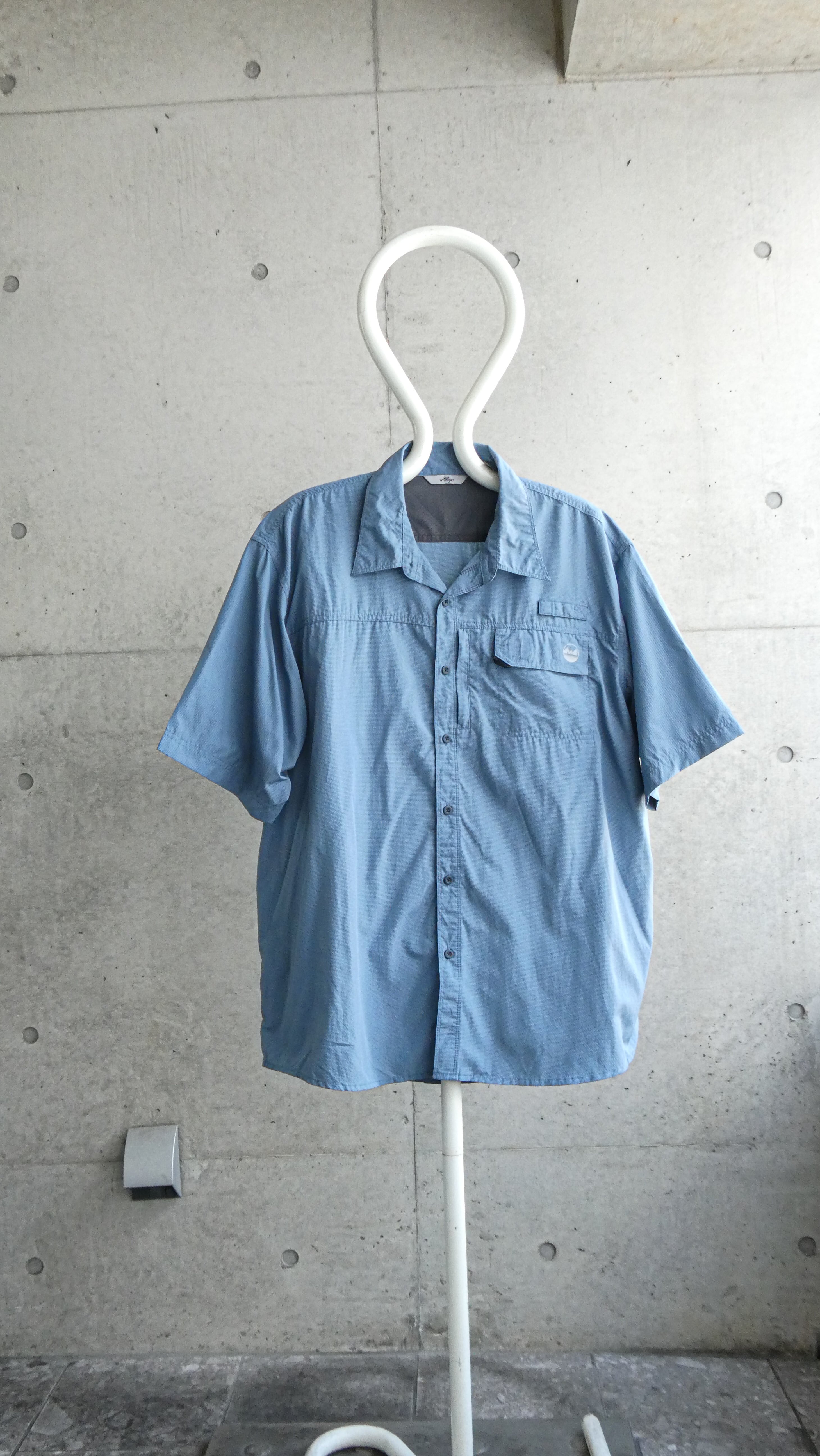 Wranglerのレジャーシャツ。ブルーのマイクロチェック。ほぼ無地のノリで着れるほどの細かいチェックパターン。とろみのある生地です。