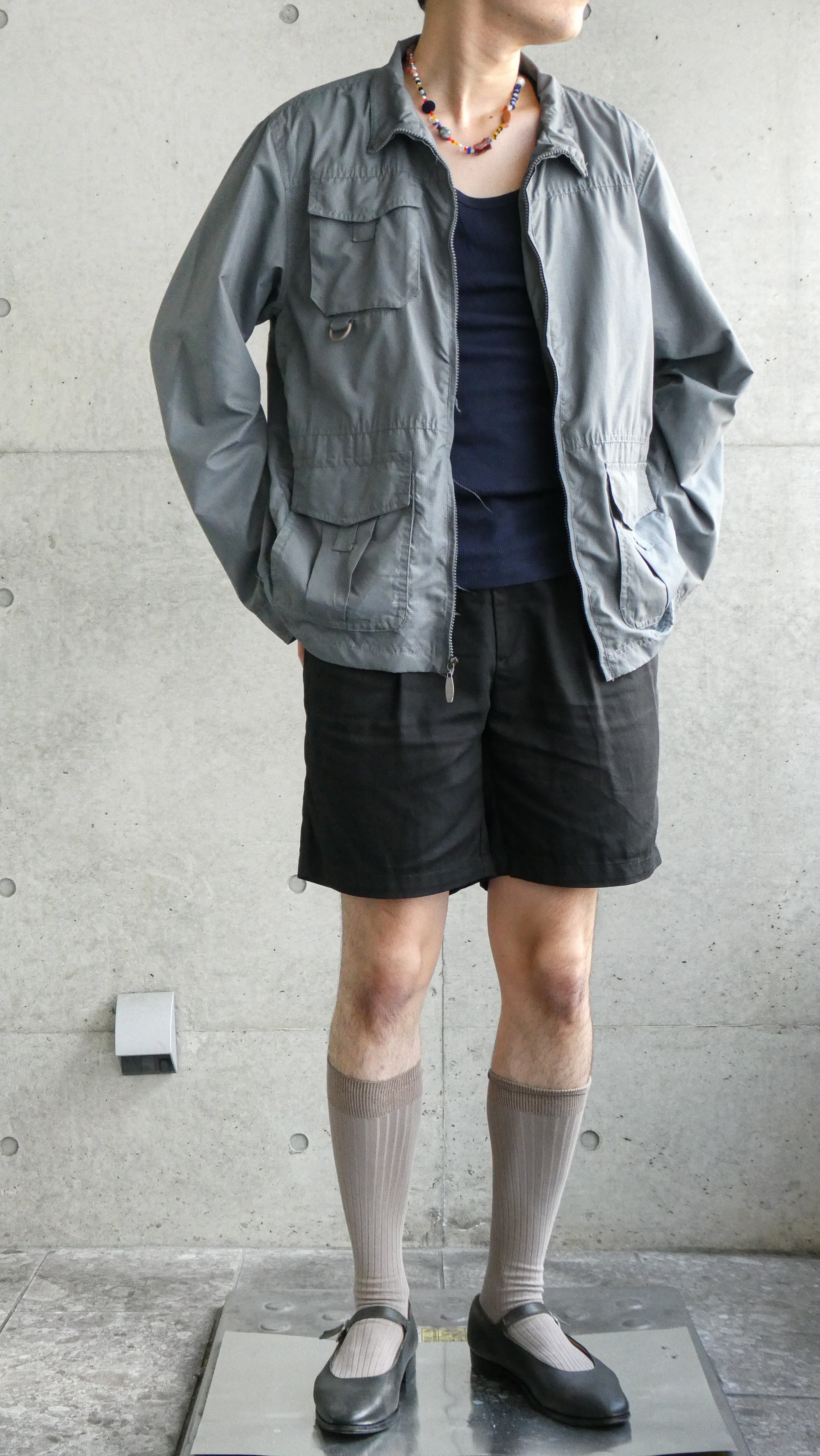 vintage gray ripstop zip up blouson
