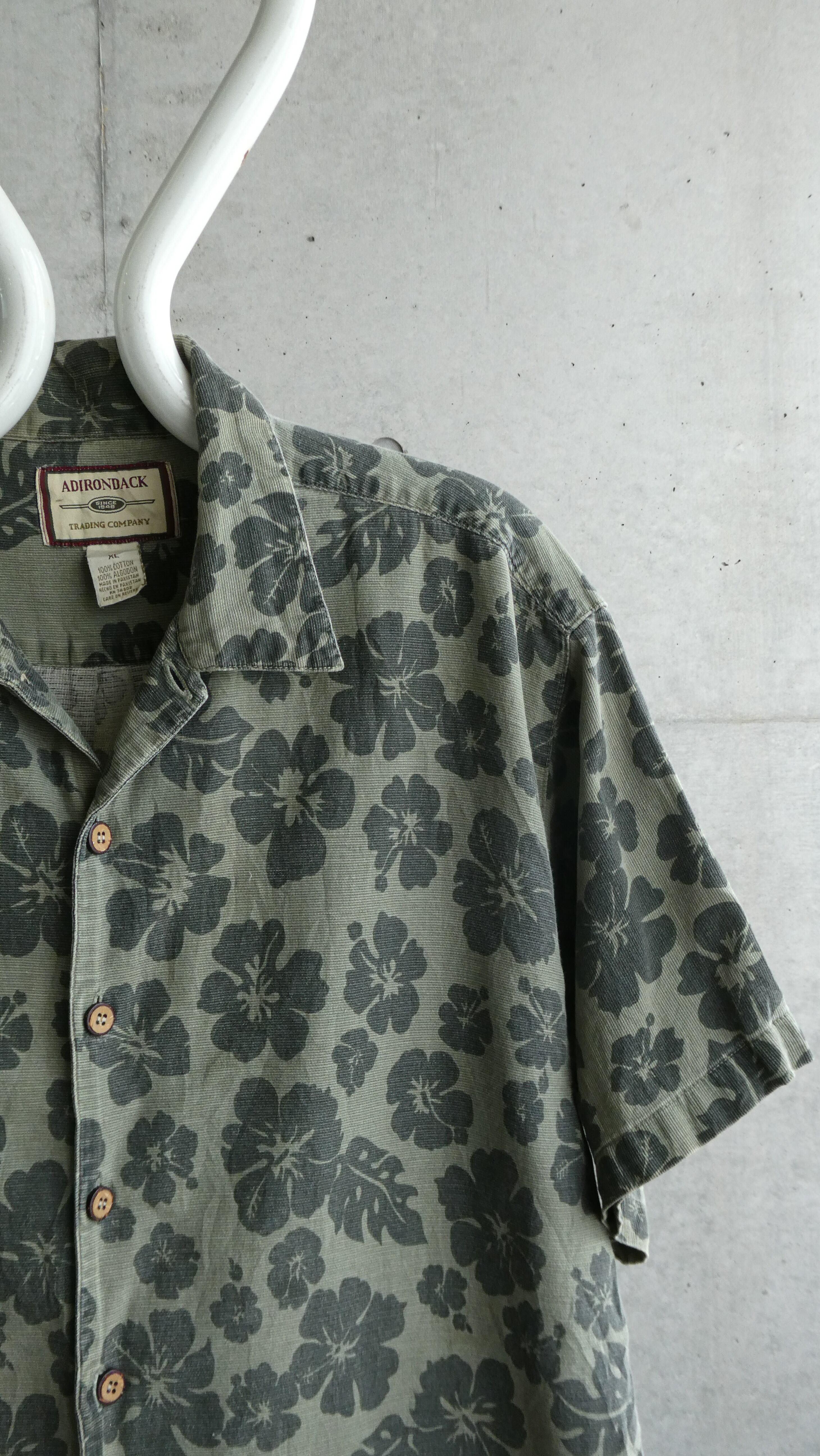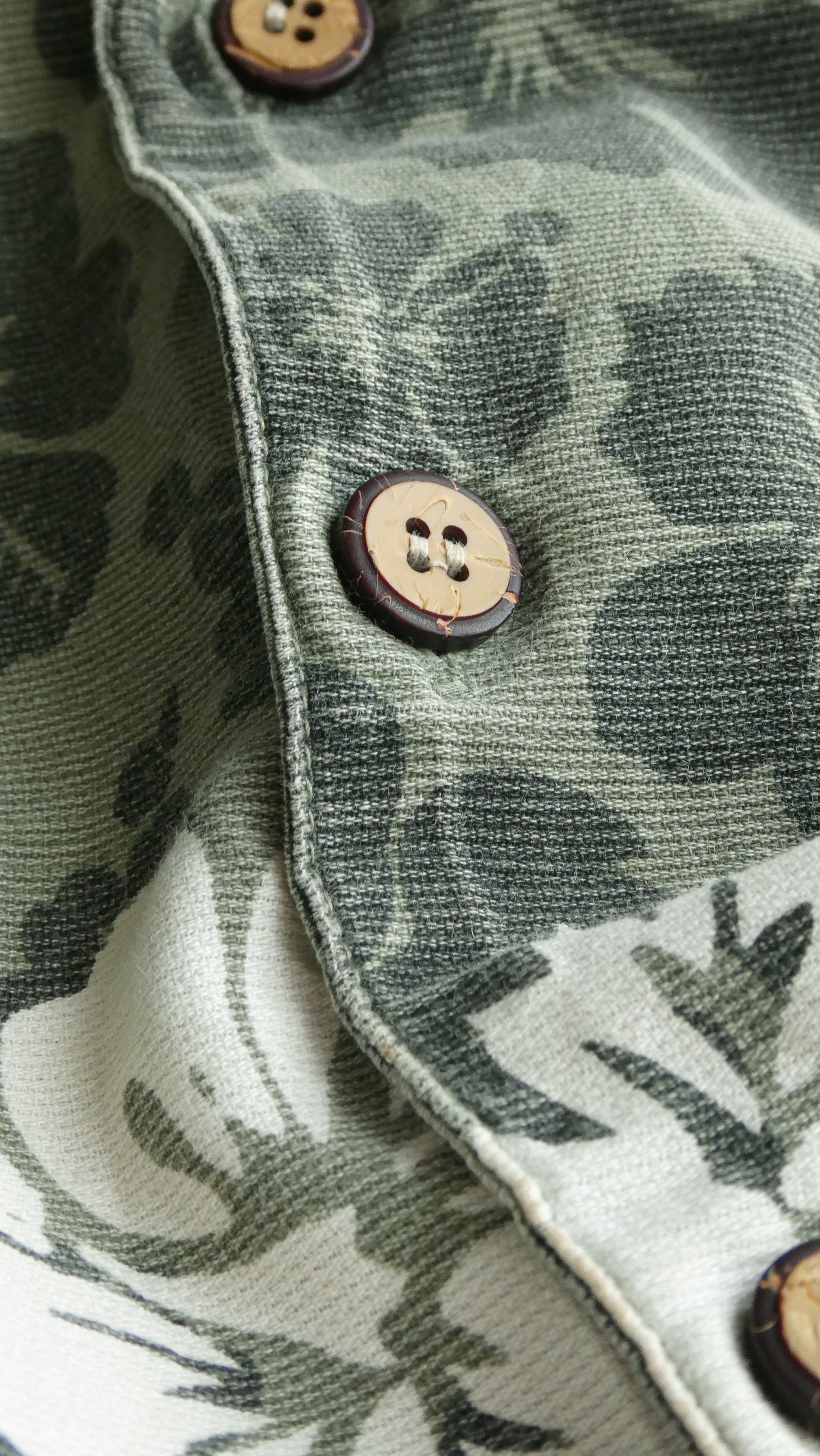 珍しいミリタリーカモをアロハに落とし込んだシャツ。これ、めちゃくちゃいいです。ボタンも少し変わったココナツボタン。アロハっぽく見えないのま最高です。