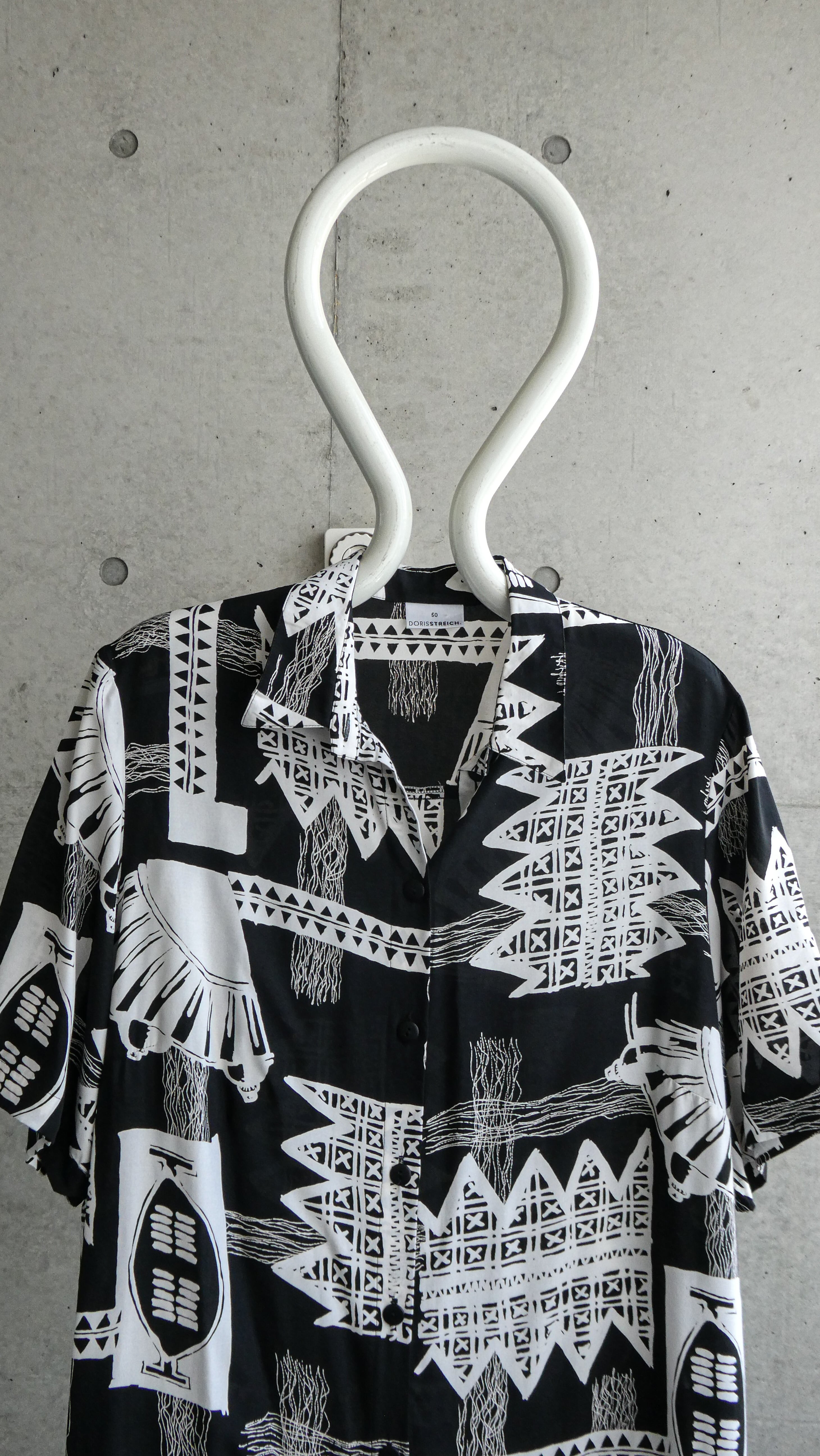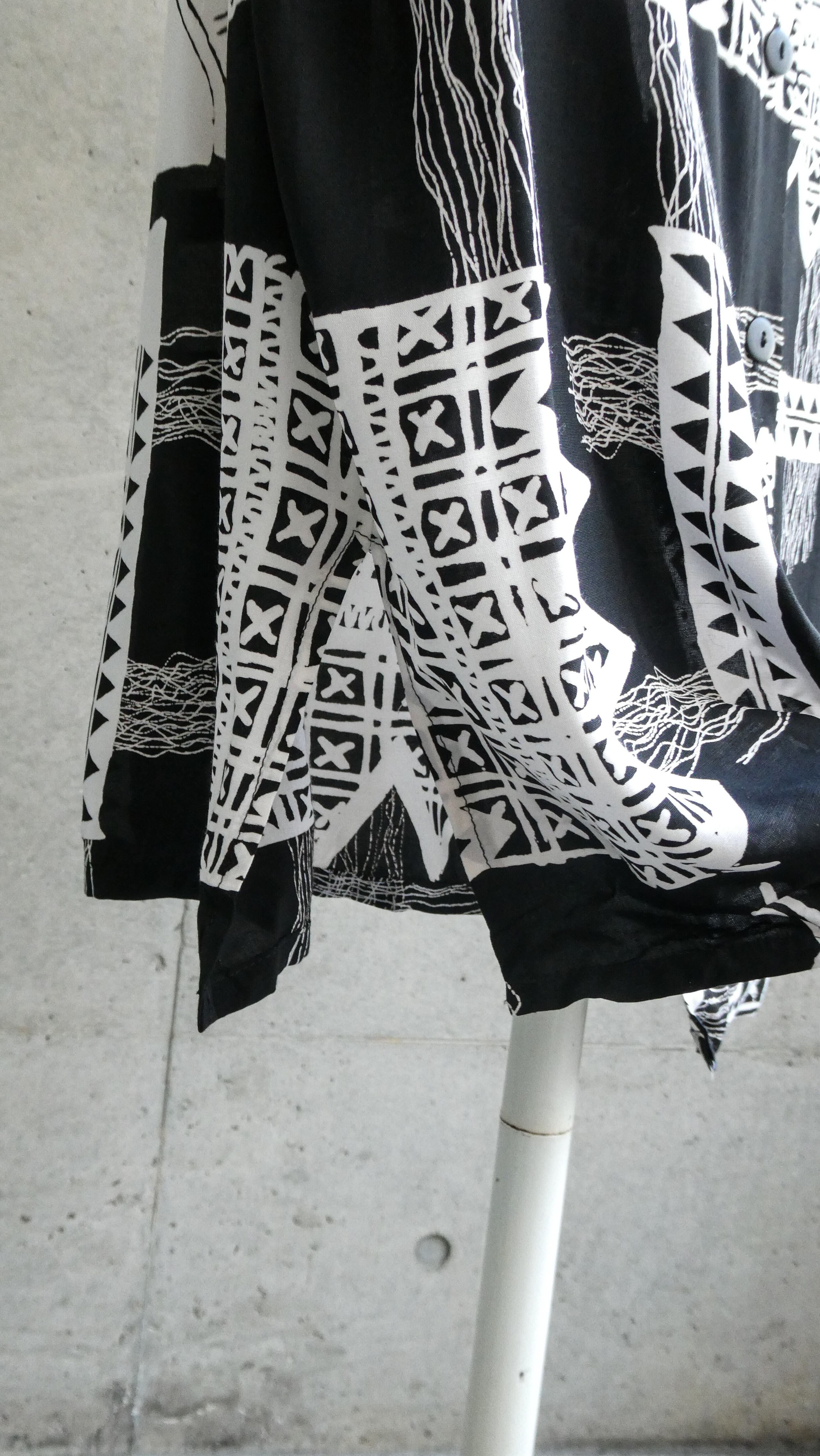 ユーロ物のシャツ。黒、白のモノトーン。ヴィスコース100%でドレープのある生地です。肌に張り付きにくくて快適な生地です。