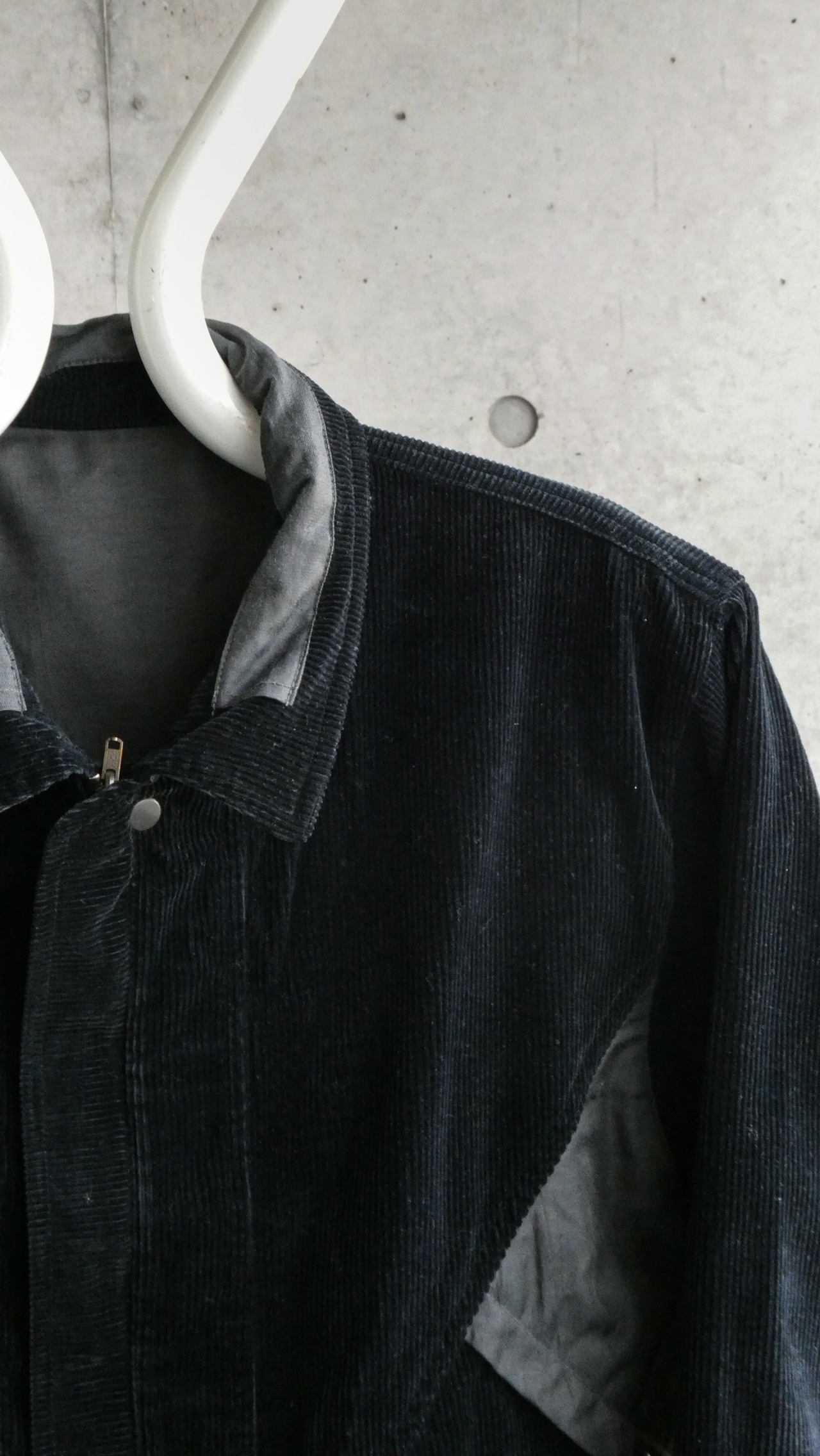スペシャル。ブラックのリバーシブルブルゾン。普通の生地とコーデュロイの切替パターン。オールブラックでシンプルにカッコイイ切替。両面使い易いリバーシブルなのもいいです。