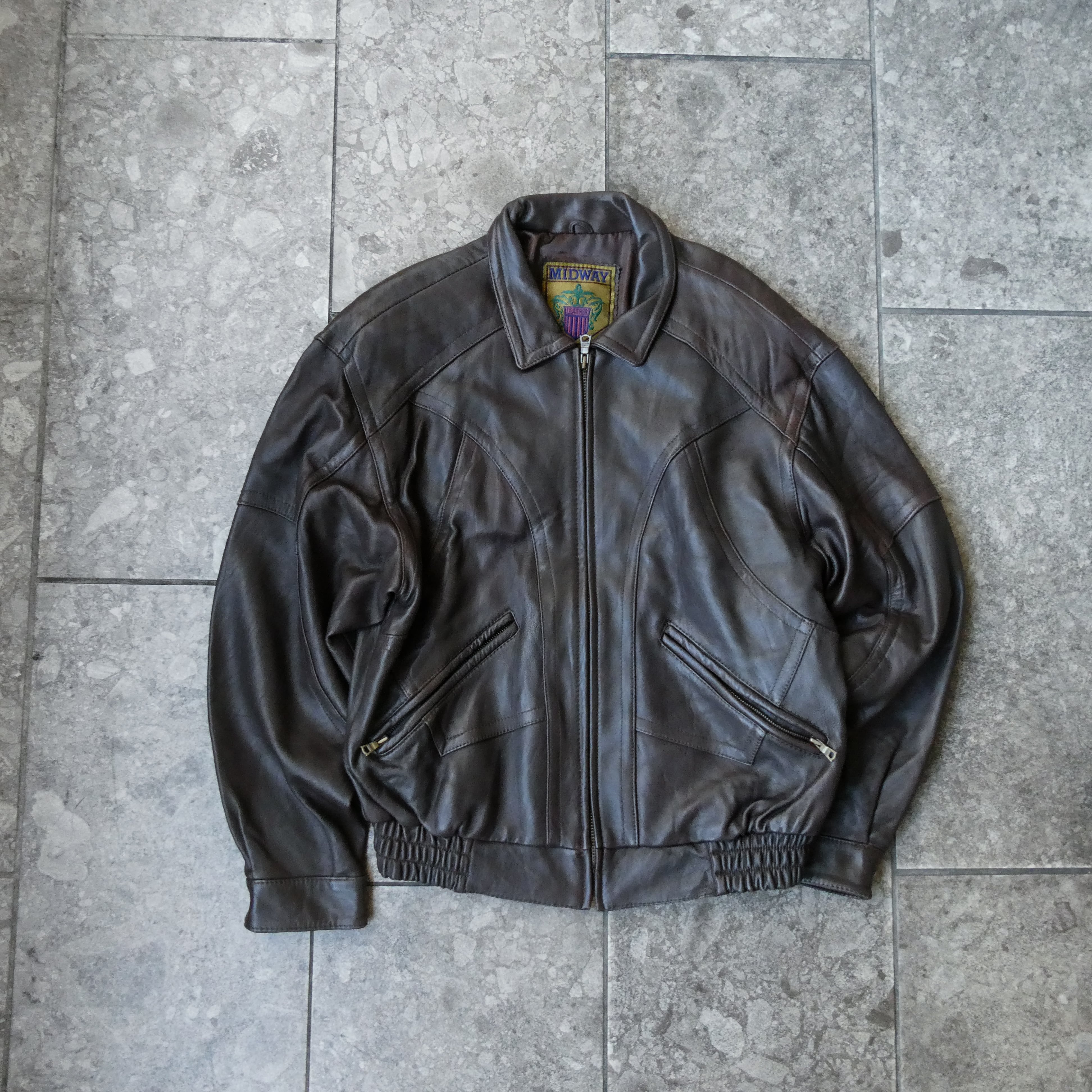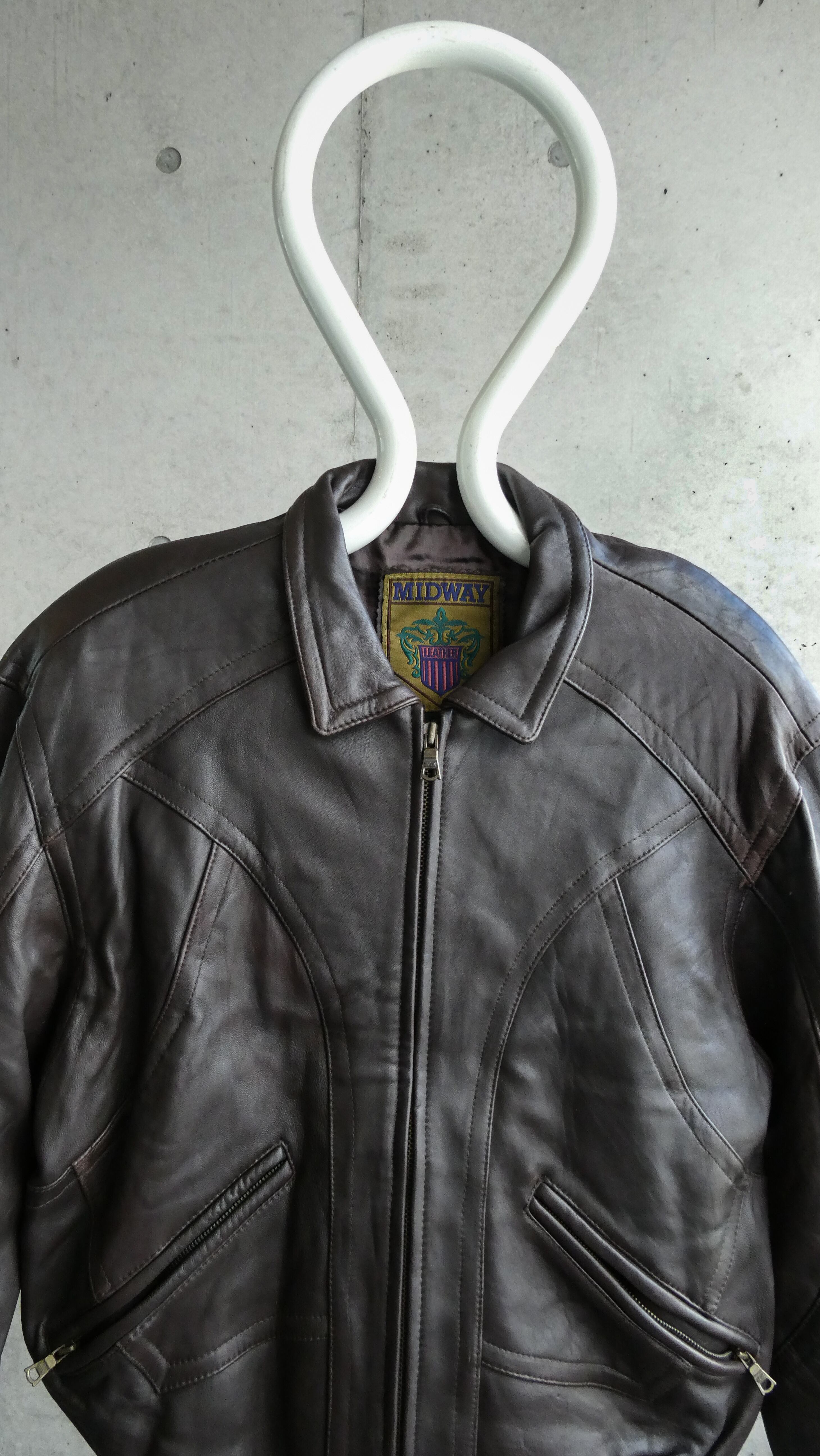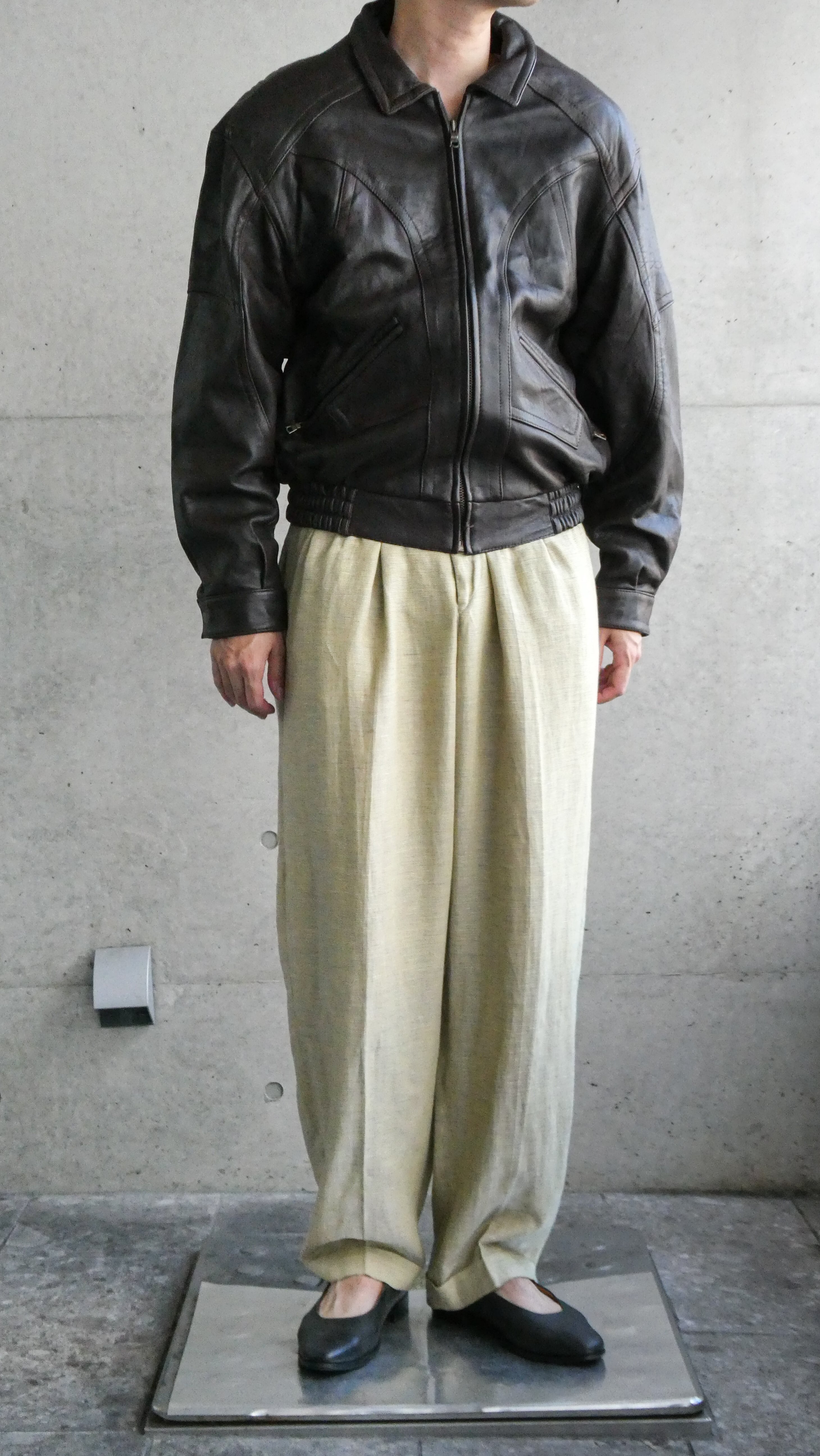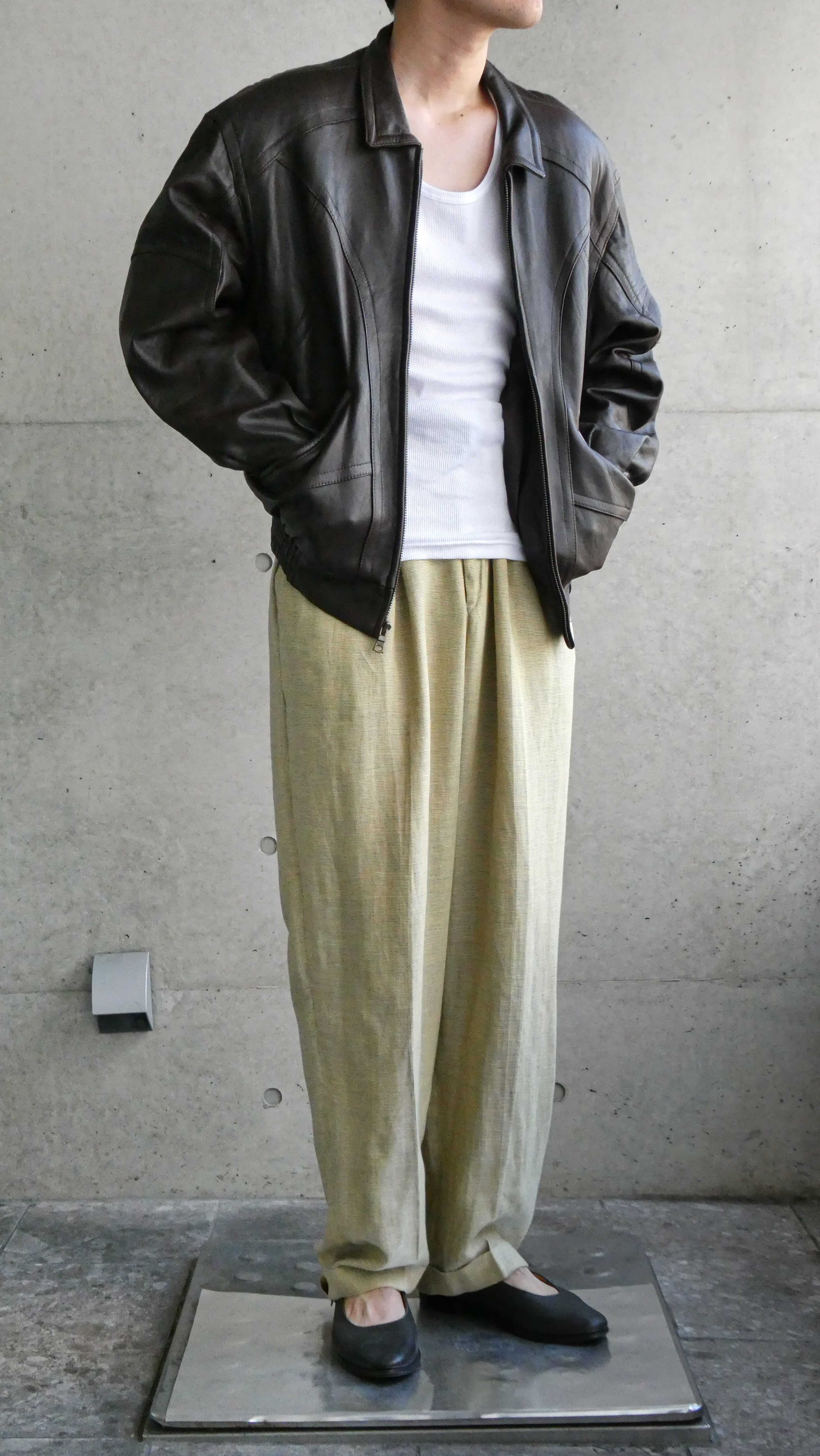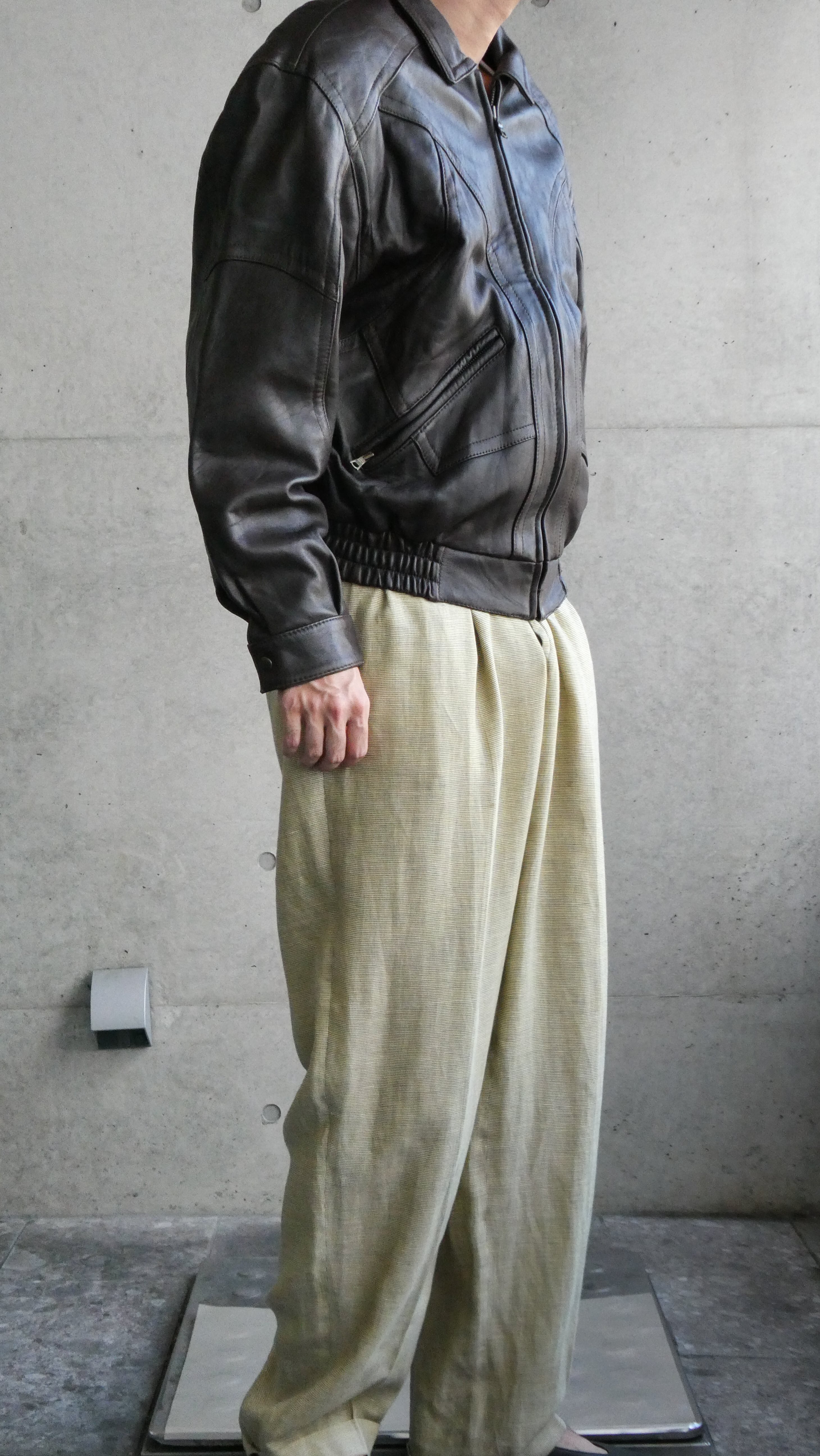 ブラウンのレザーブルゾン。アームから全体にカーブを描いた切替パターン。写真からも伝わる程のモチモチレザーです。今季は特にブラウン系のレザーが気分です。シルエットも完璧な一着。