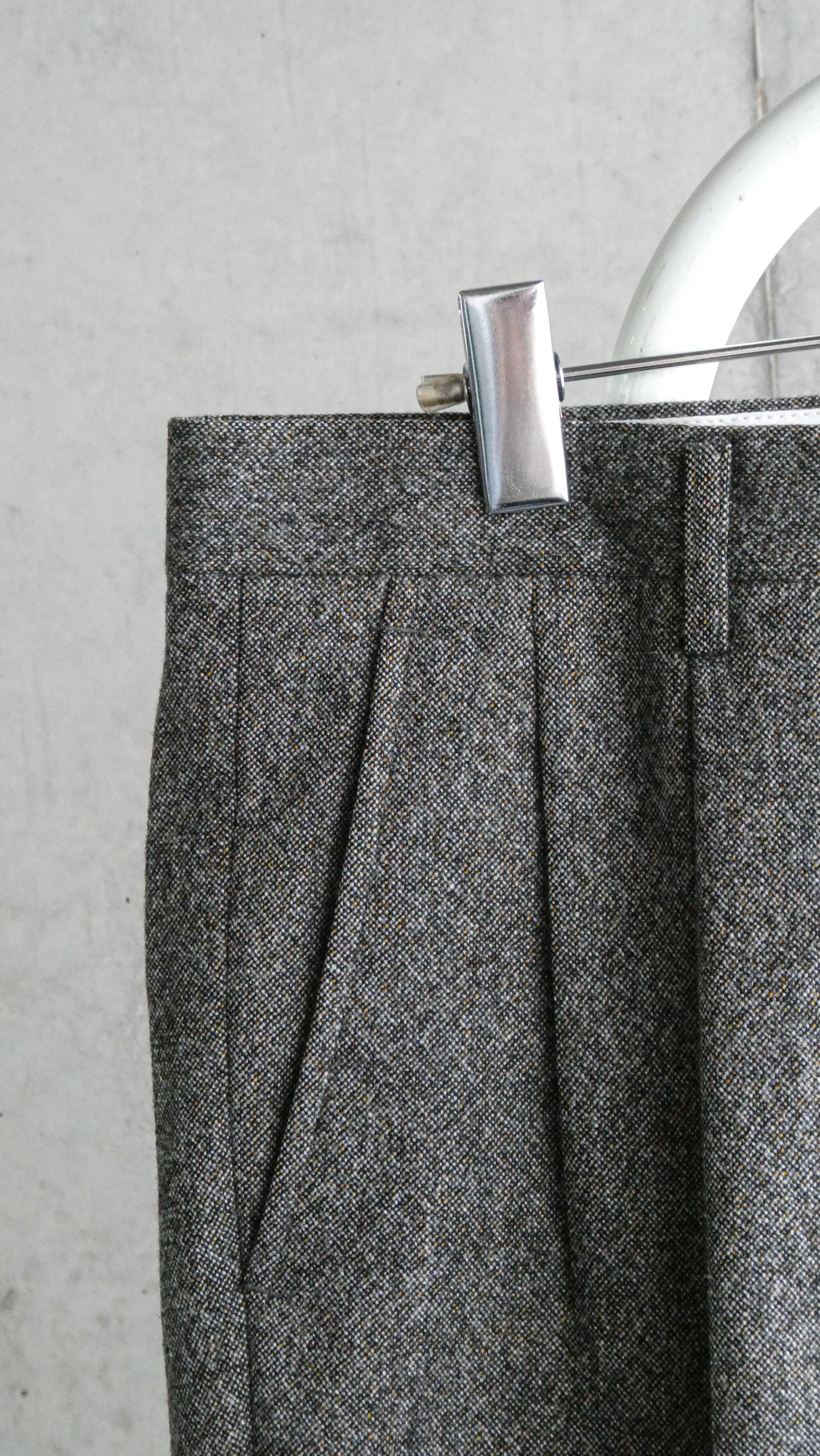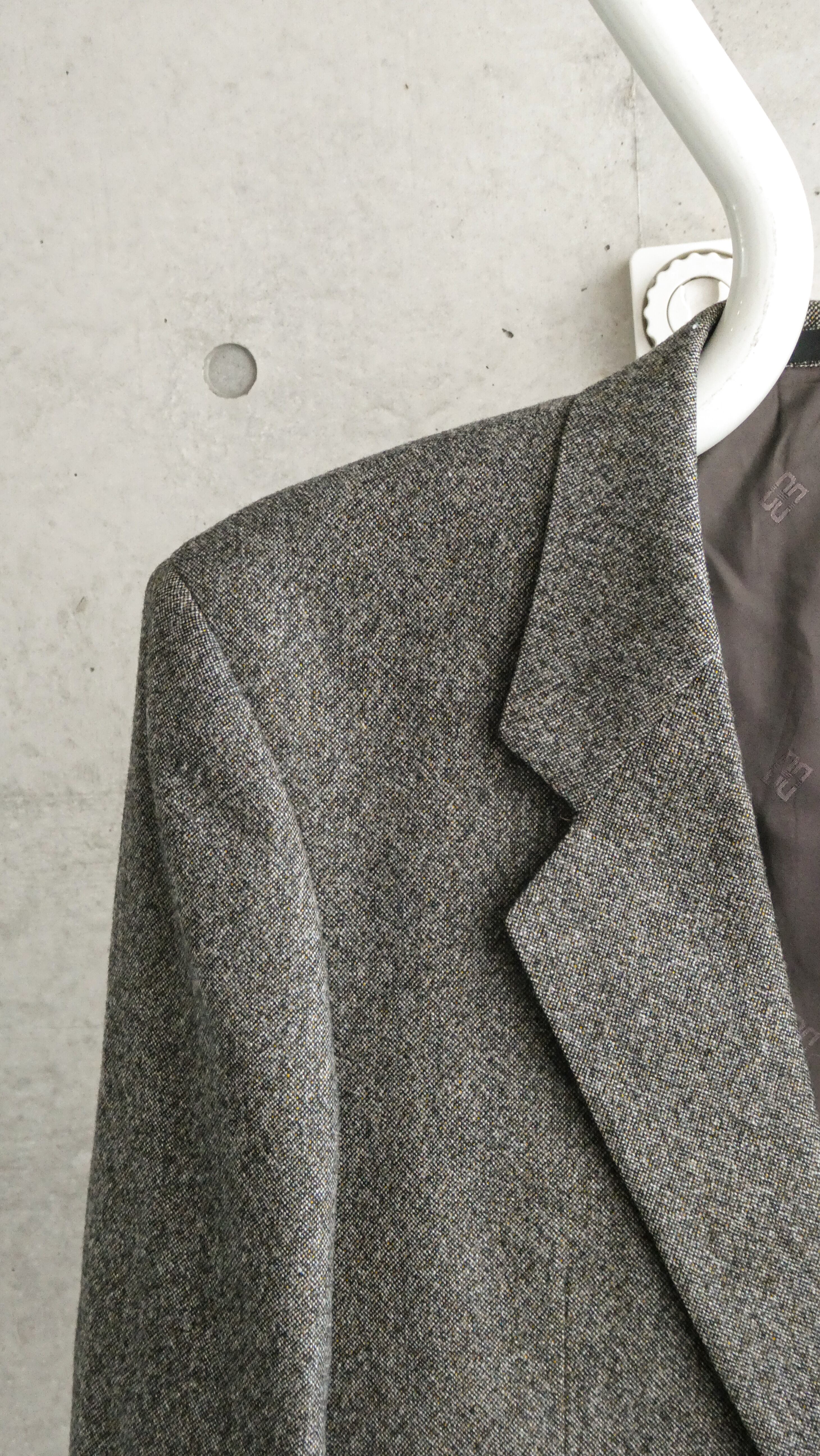 ブラウンベースにイエロー系のツイード生地のセットアップ。凄く立体的な仕立ての極上なシルエットです。こういう気の利いた生地のセットアップは希少です。小柄なメンズ、レディース向けサイズです。