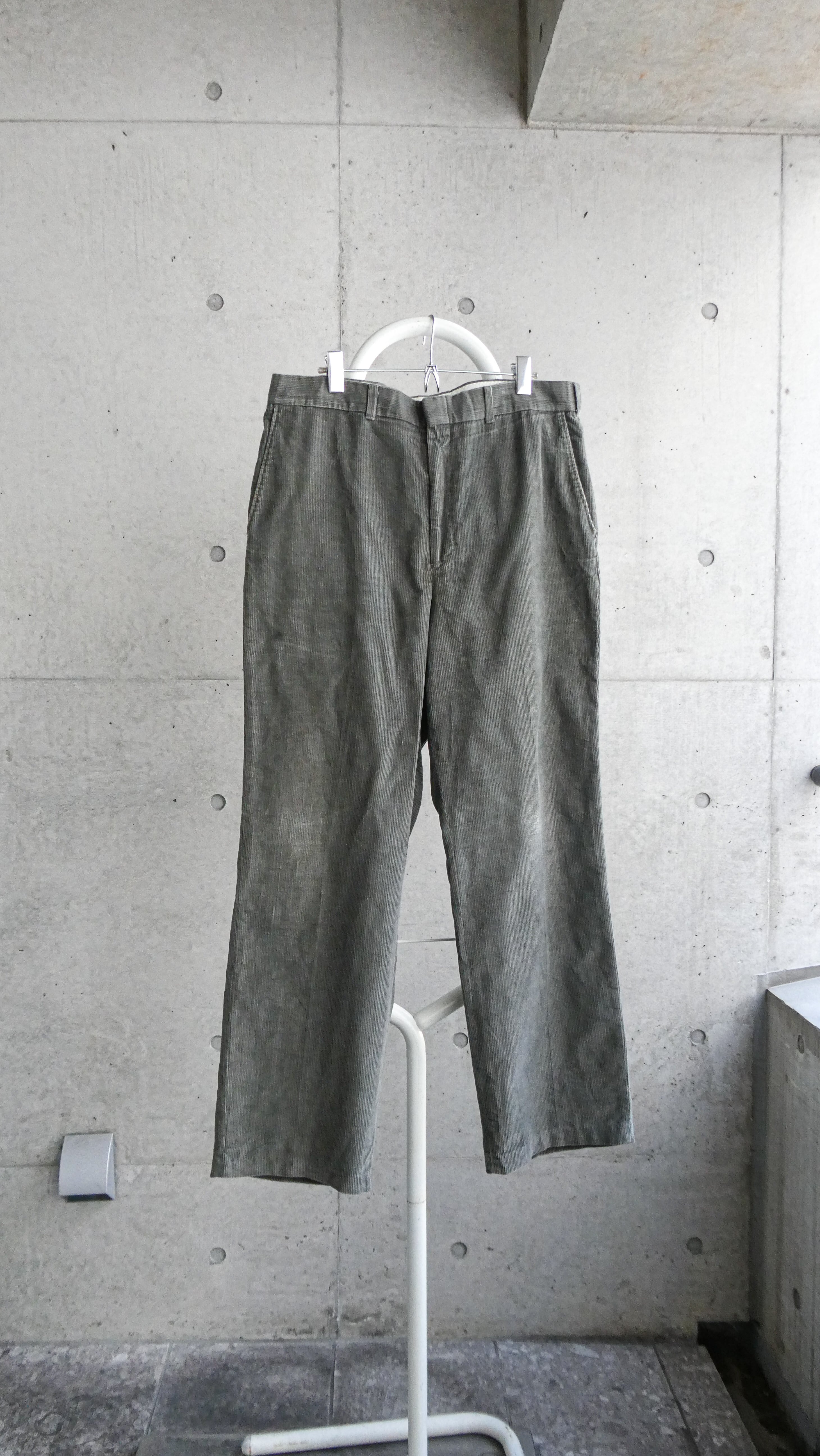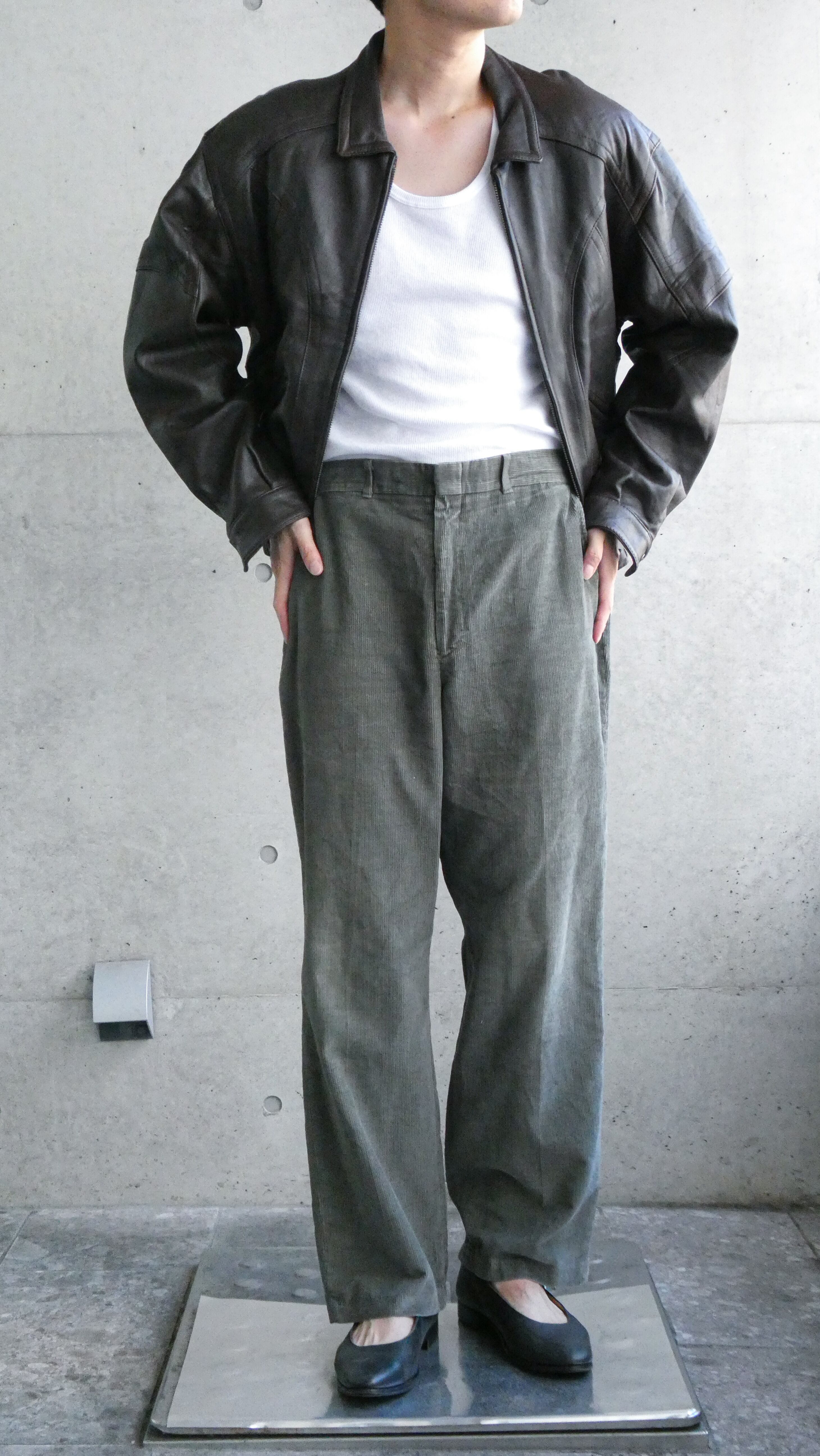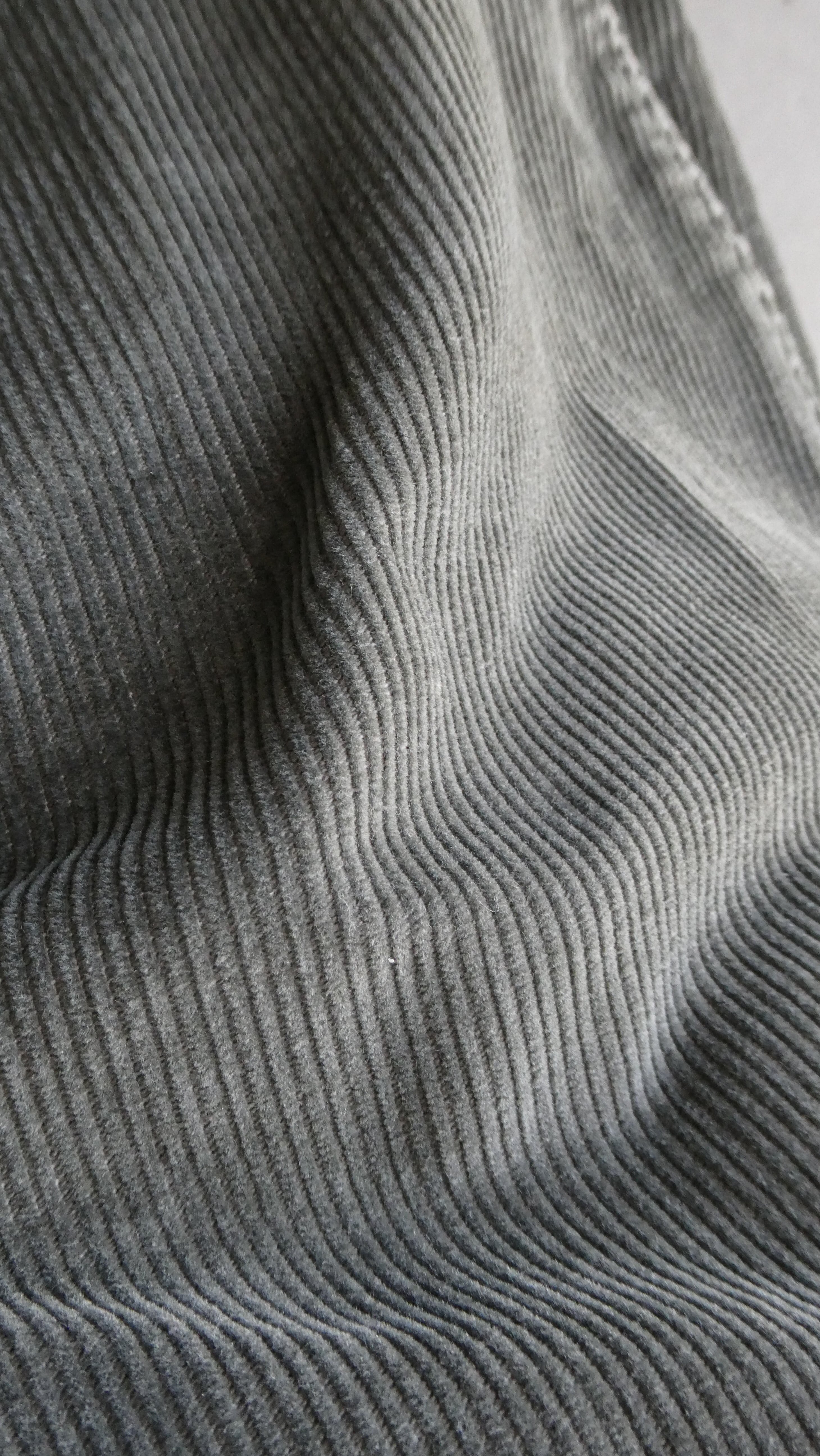 チャコールグレーのコーデュロイパンツ。探すと案外ないシルエット綺麗なグレーのコーデュロイ。ストンと落ちるワイドストレート。どんな服装にも合うカラーで万能なパンツです。