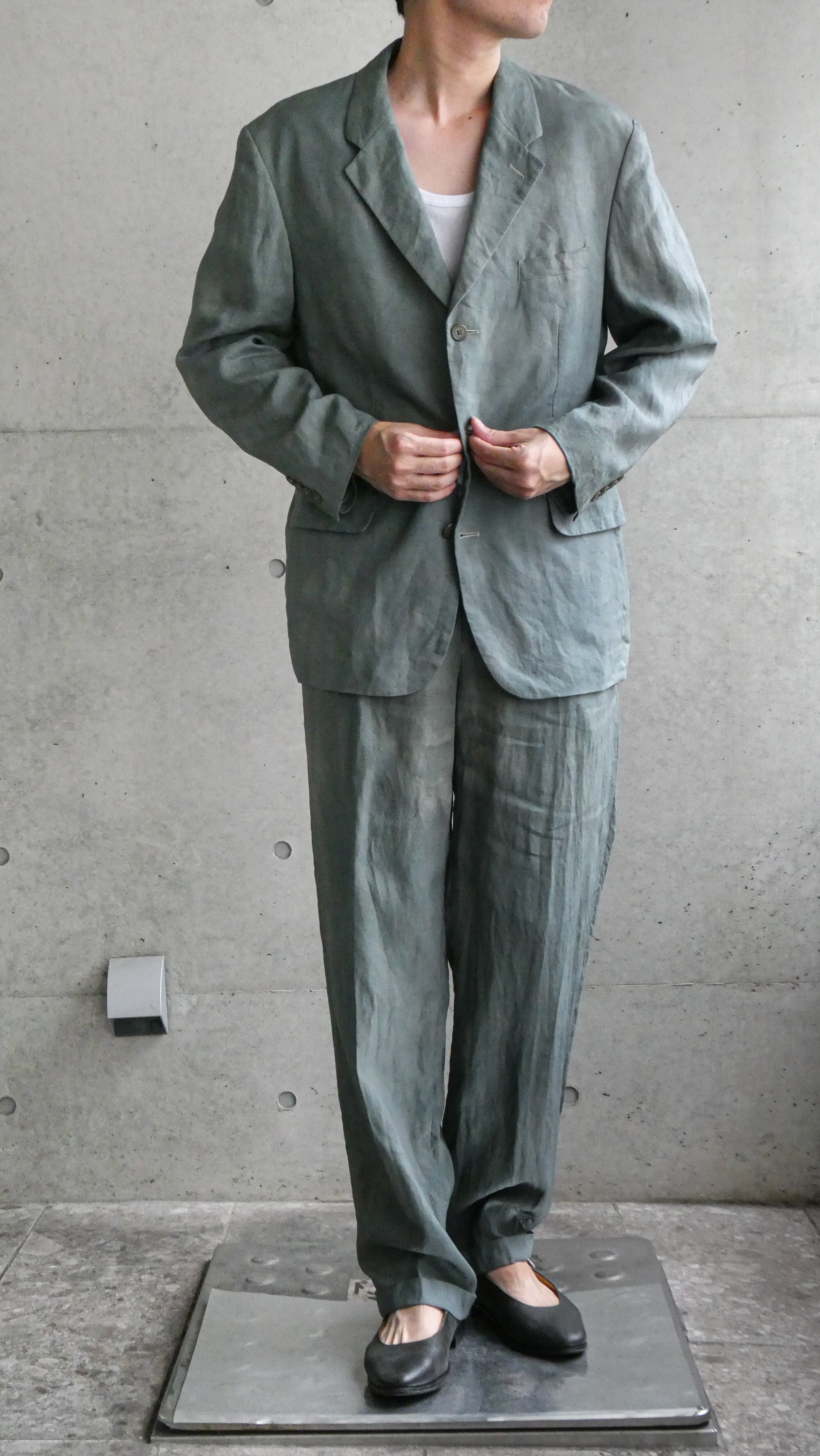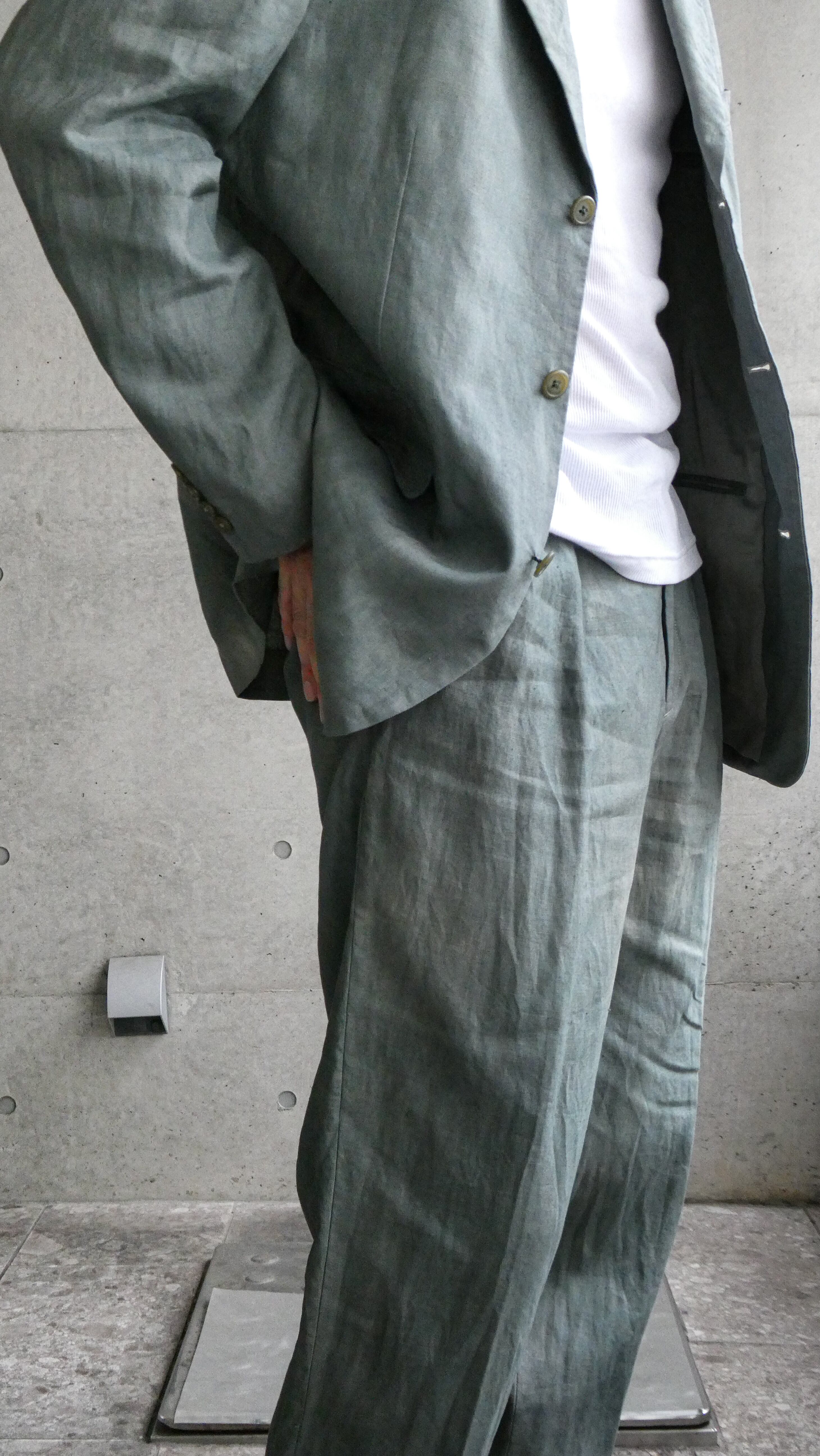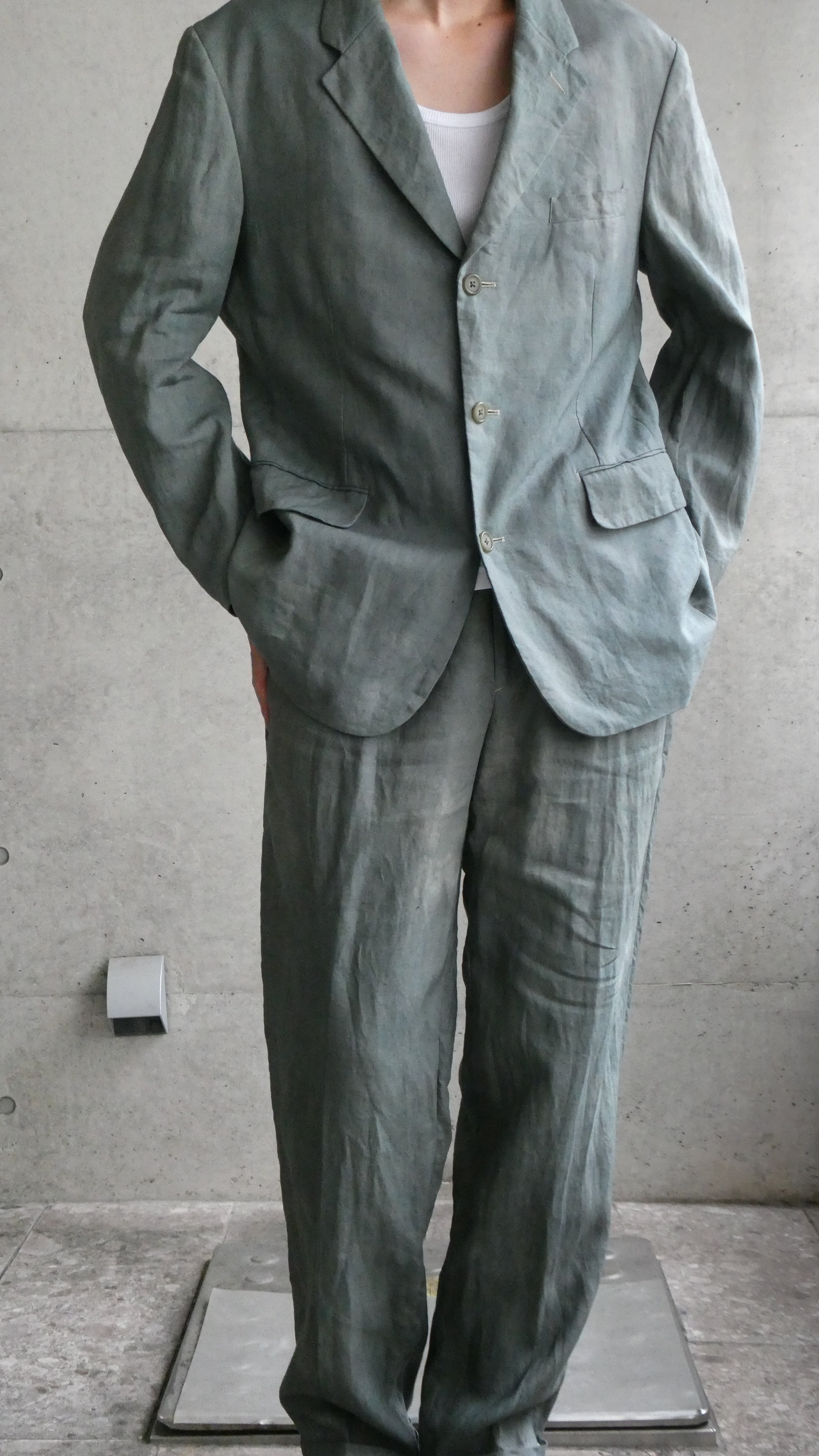J.CREWの後染めセットアップの入荷です。珍しく後染めされたセットアップ。いい感じの錆び感のあるグレー色。ムラ感ある染め雰囲気あって唯一無二です。上下別々でも使い易いセットアップです。