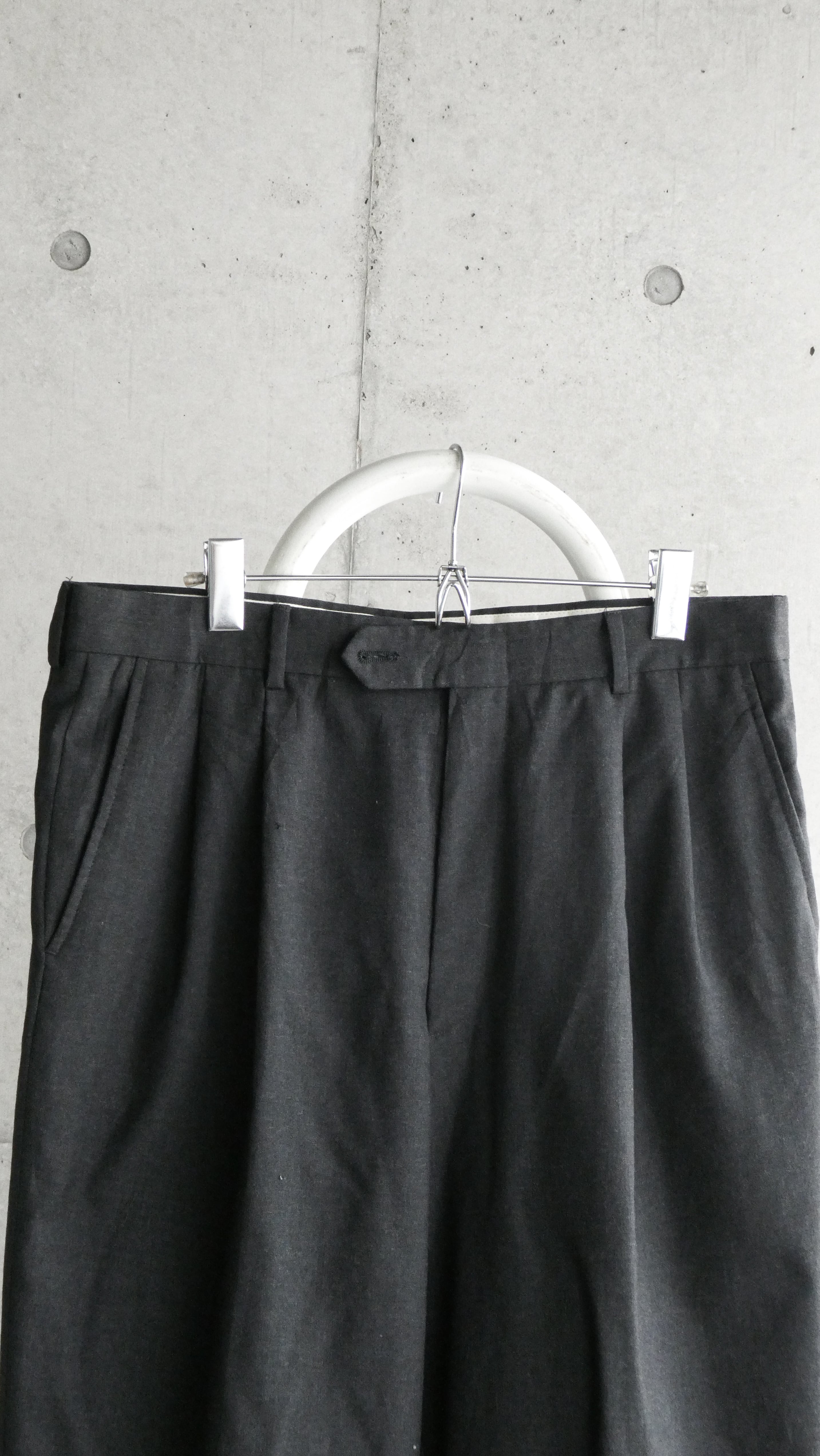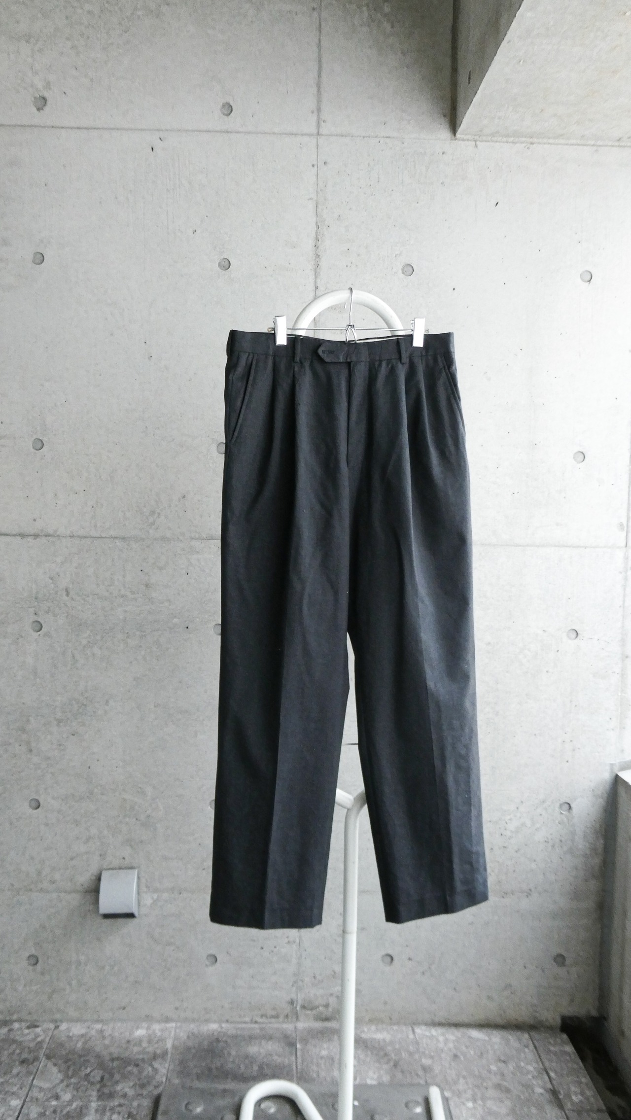 チャコールカラーの2タックスラックス。個人的に毎年推してるグレーのスラックス。ウール生地です。細すぎず、太すぎない絶妙な太さのシルエットです。