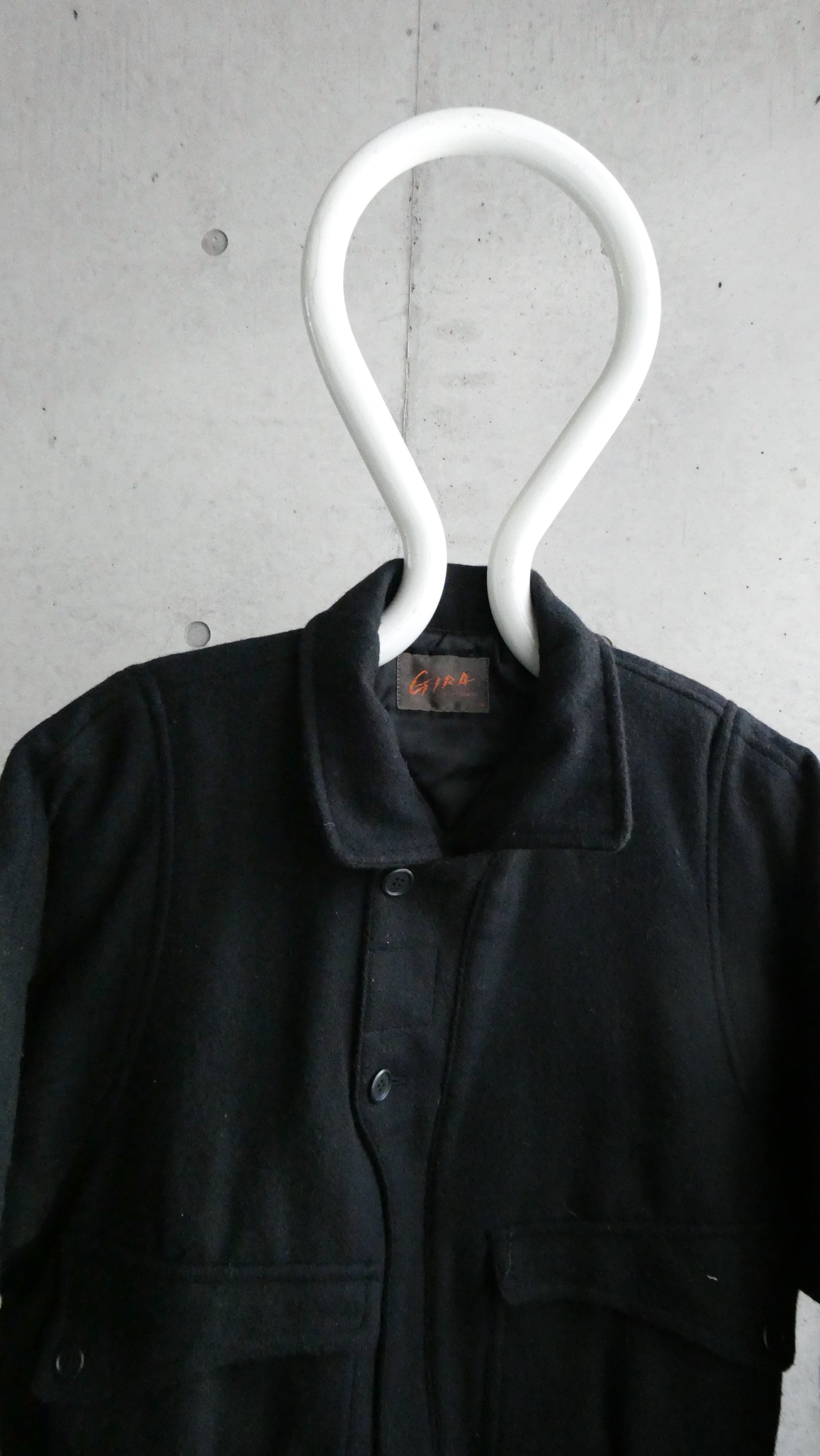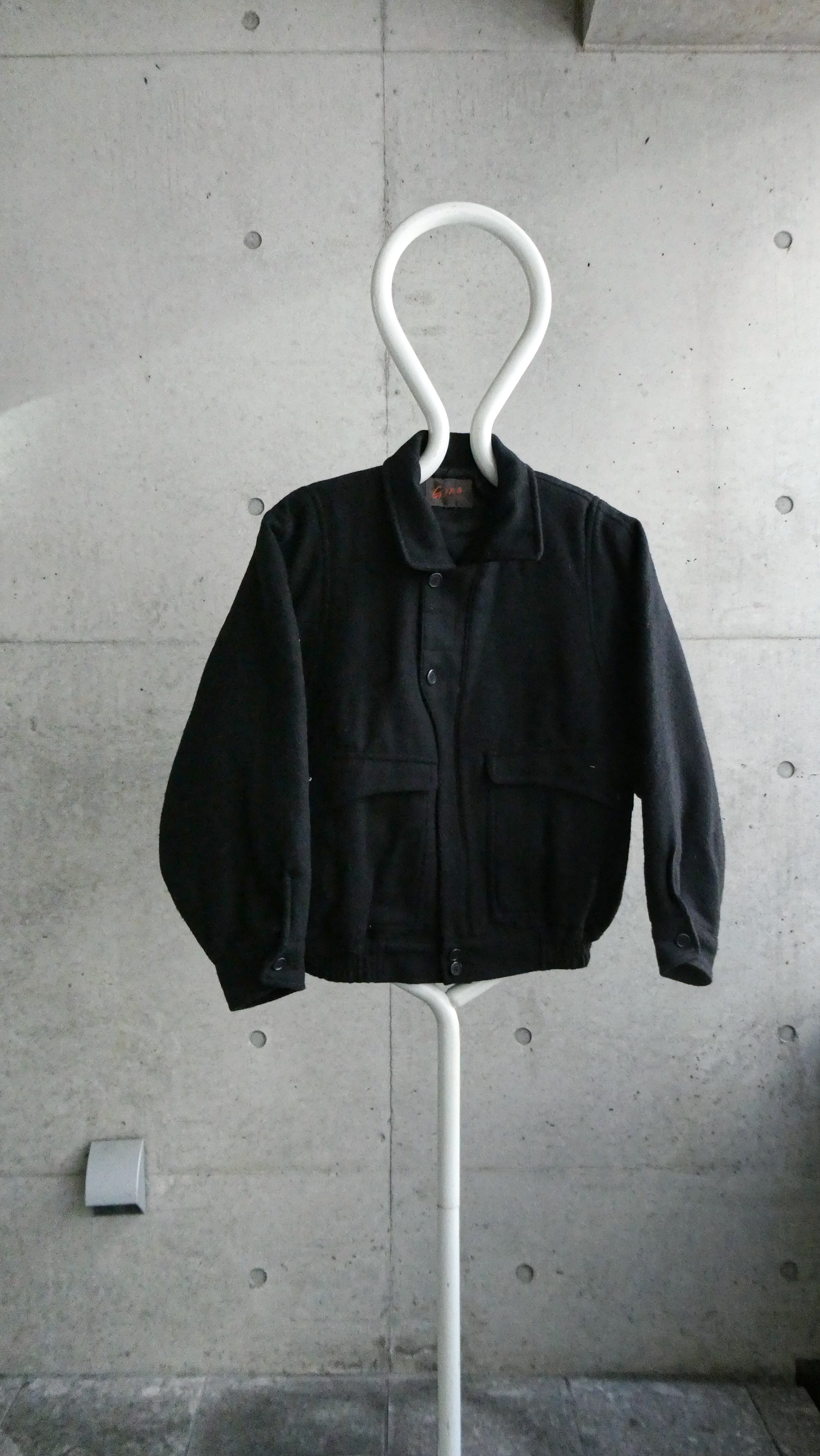 ブラックのウールブルゾン。前たてが変形パターンの珍しい形。こういう黒無地で、ちょっとしたアクセントある物は希少です。