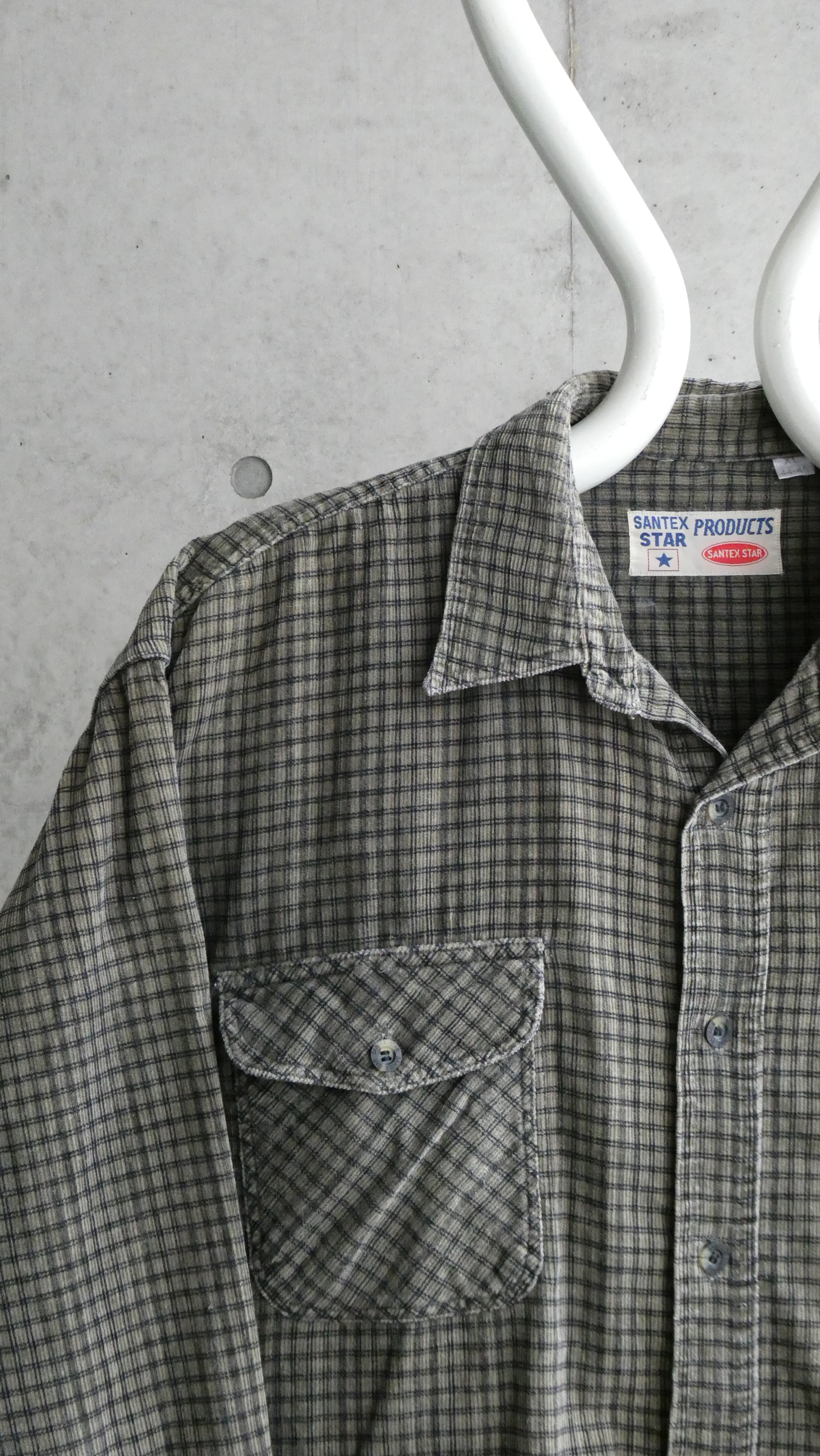 今季当店イチオシのコーデュロイアイテム。珍しいプリントコーデュロイ生地。チェック柄なのに縦畝のコーデュロイというプリントコーデュロイにしか出せない質感と技法です。適当に1枚で着てカッコイイシャツです。