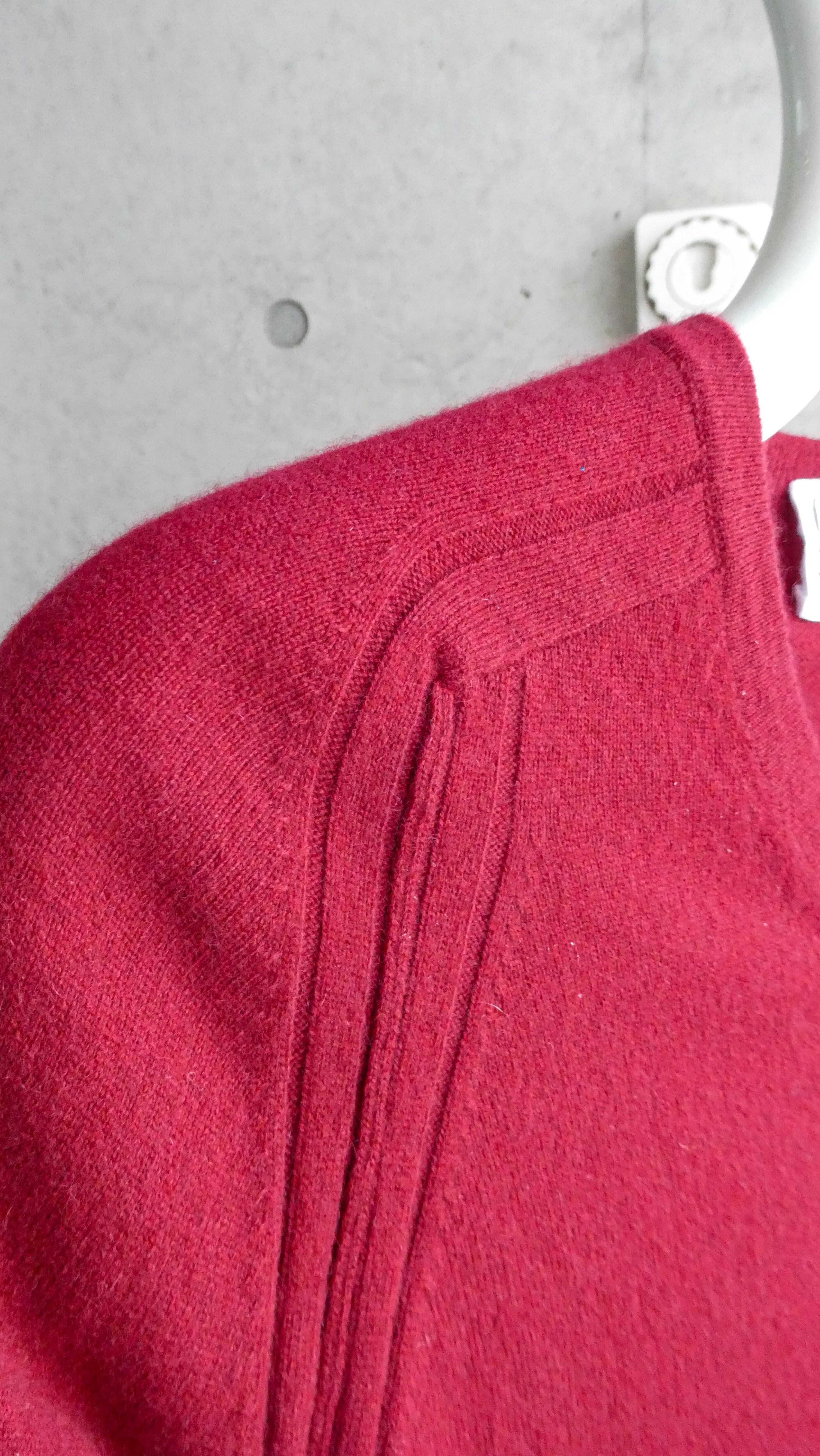 バーニーズニューヨークのカシミヤ100%ニット。今季トレンドな赤。ラグランで、袖にシームが入って、しっかり拘りが見られる作りです。小柄なメンズ、レディース向けサイズ。