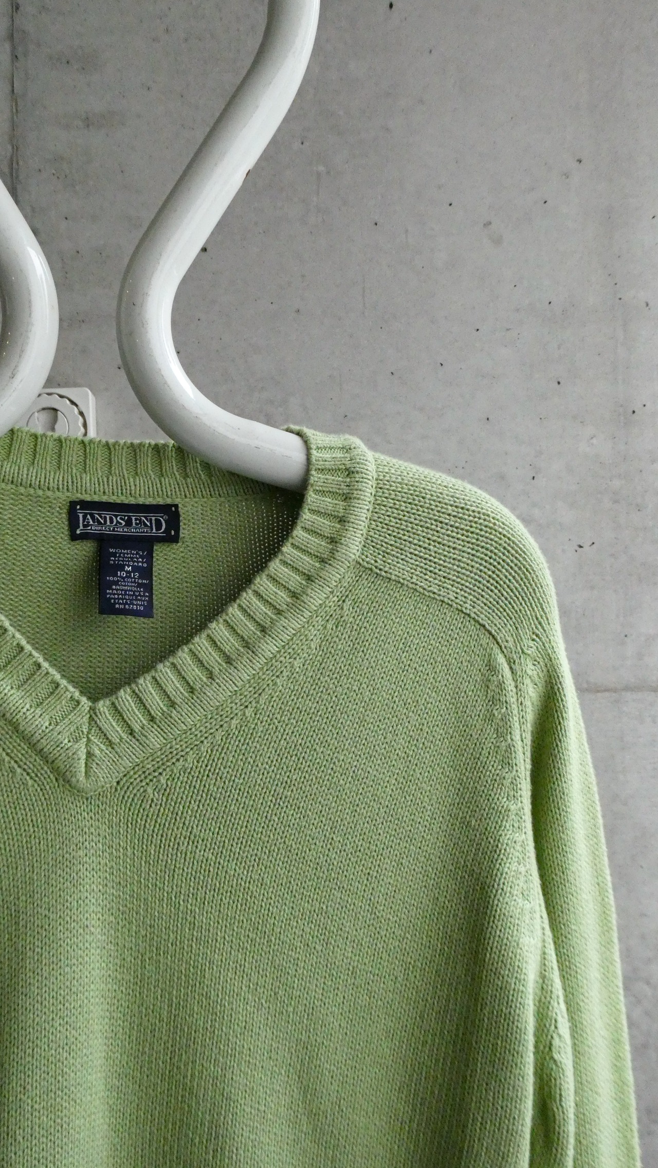 LANDS' ENDのコットンニットの入荷です。当店の毎年オススメのピスタチオカラー。今季は気になってる方も多いカラーです。ショート丈なのも凄く気分なシルエットです。