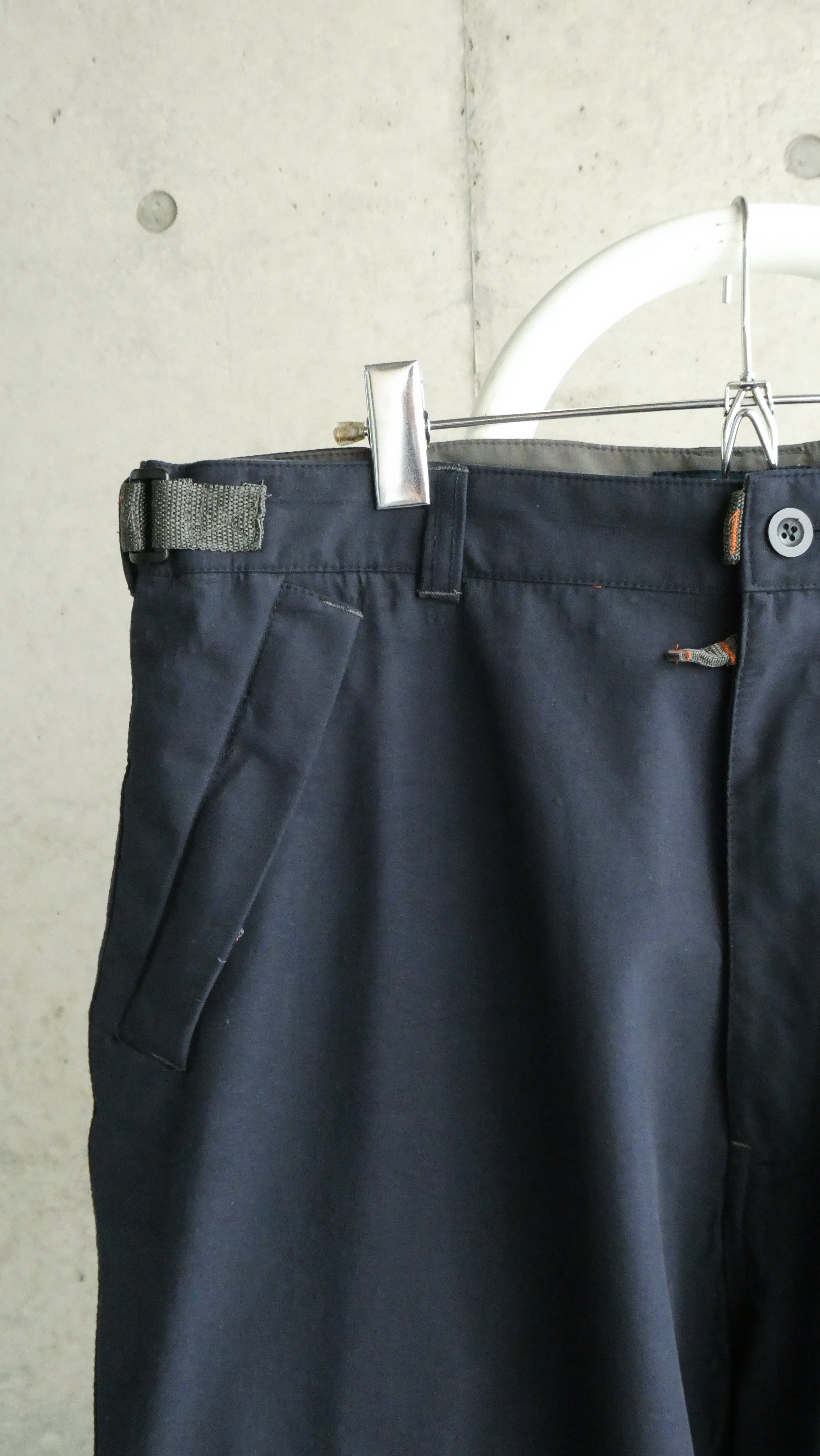 ネイビーにオレンジのカーゴパンツ。オレンジのベルクロ、ジップなどが凄くいいアクセントです。生地もピーチスキンのようなスムース生地です。