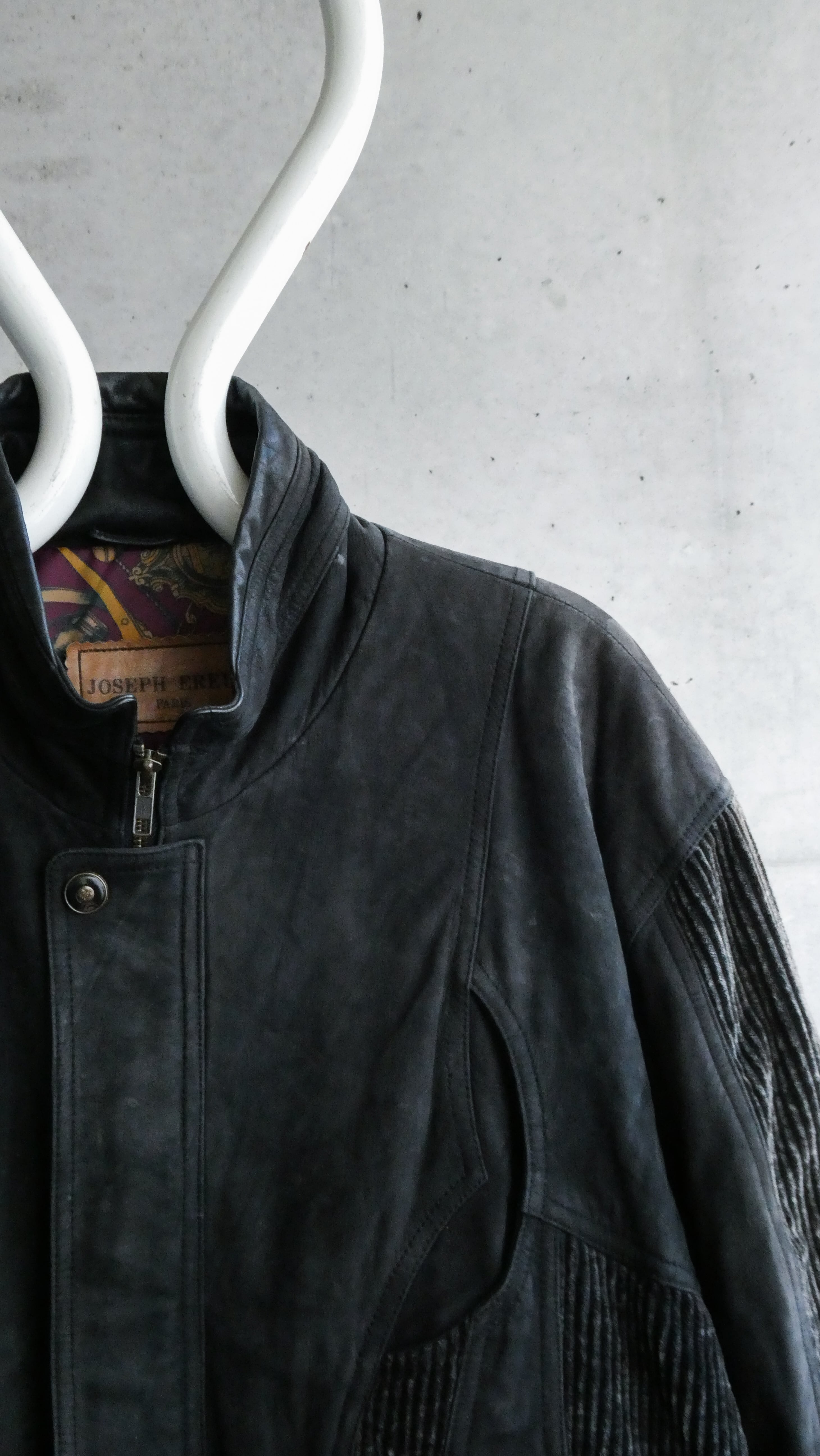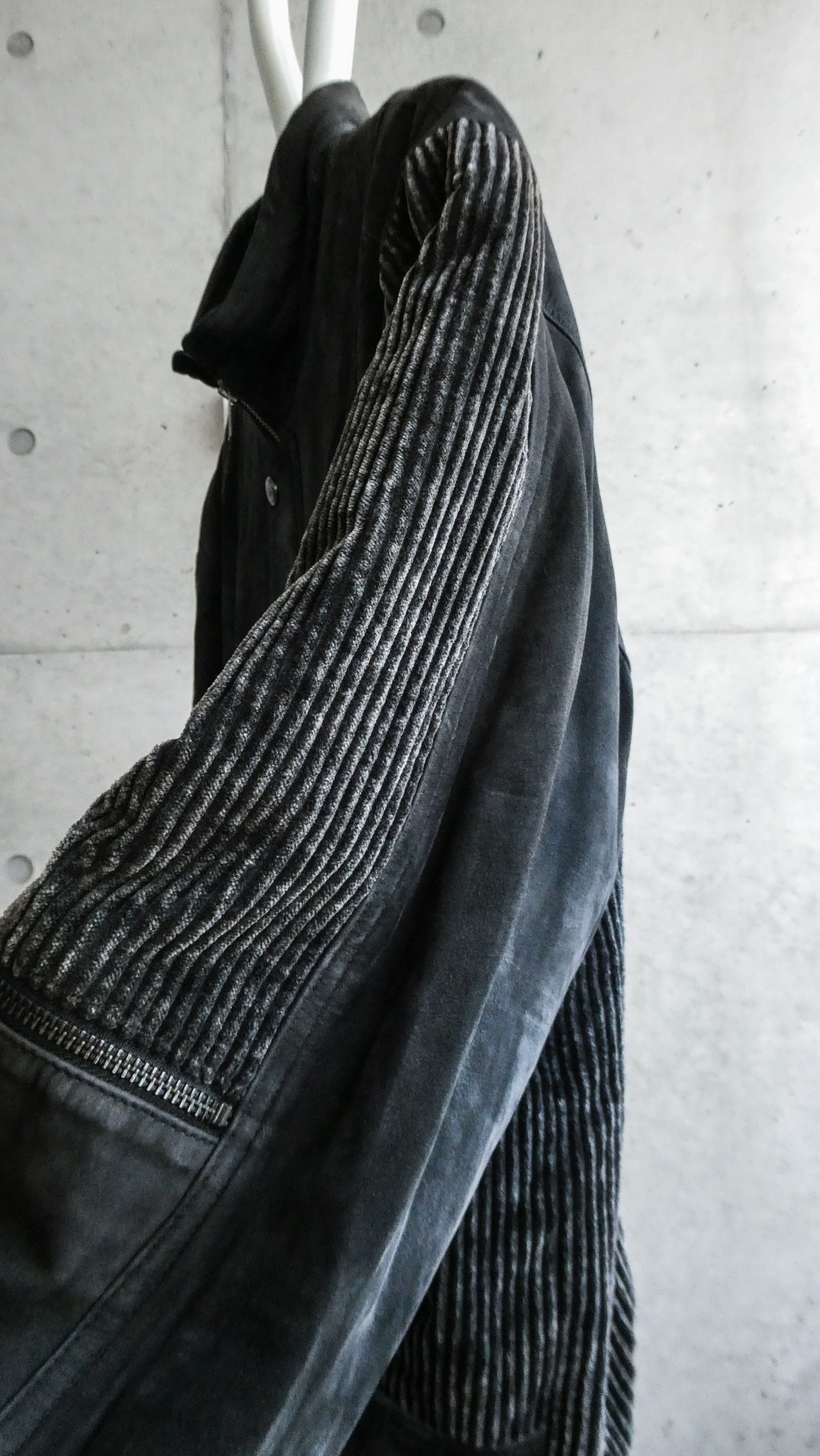 スペシャル。ブラックのヌバックレザーとコーデュロイの切替ブルゾン。コーデュロイもマーブル柄のブラックコーデュロイ。探してますが全く見つからないコーデュロイとレザーのブルゾンです。