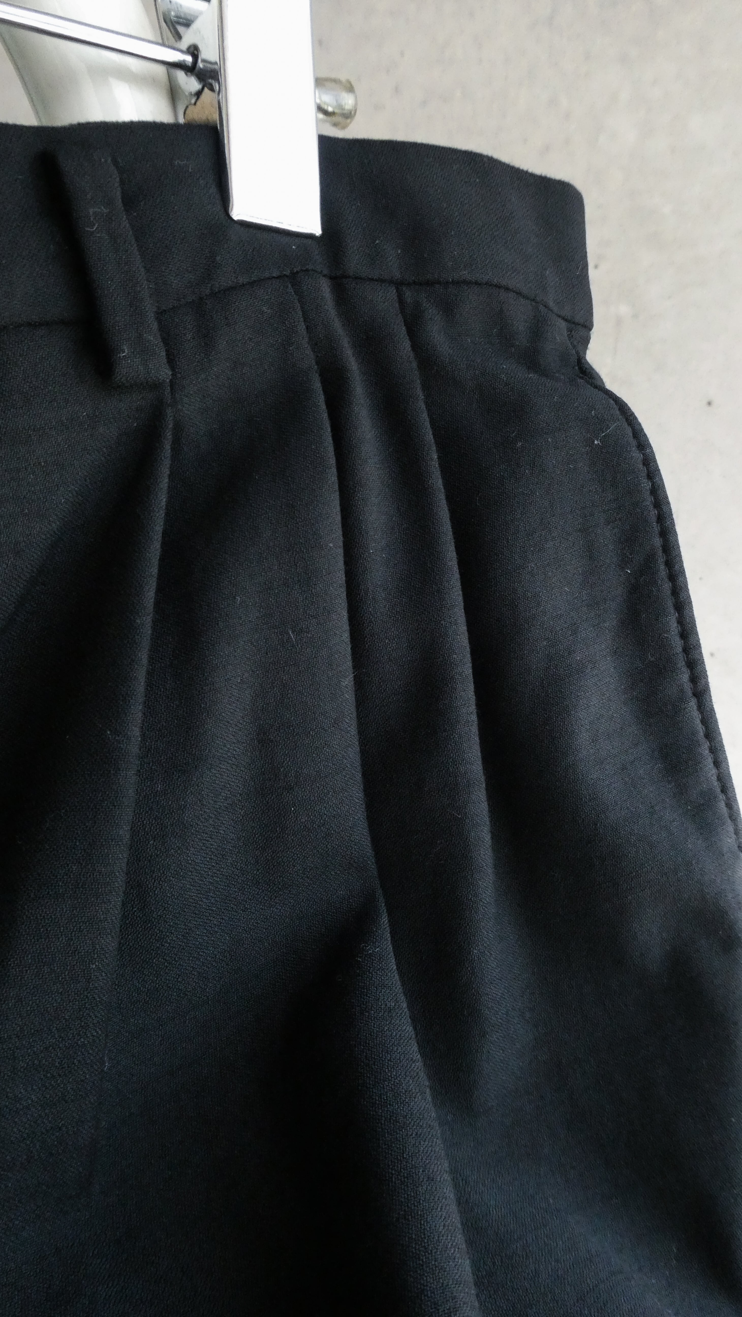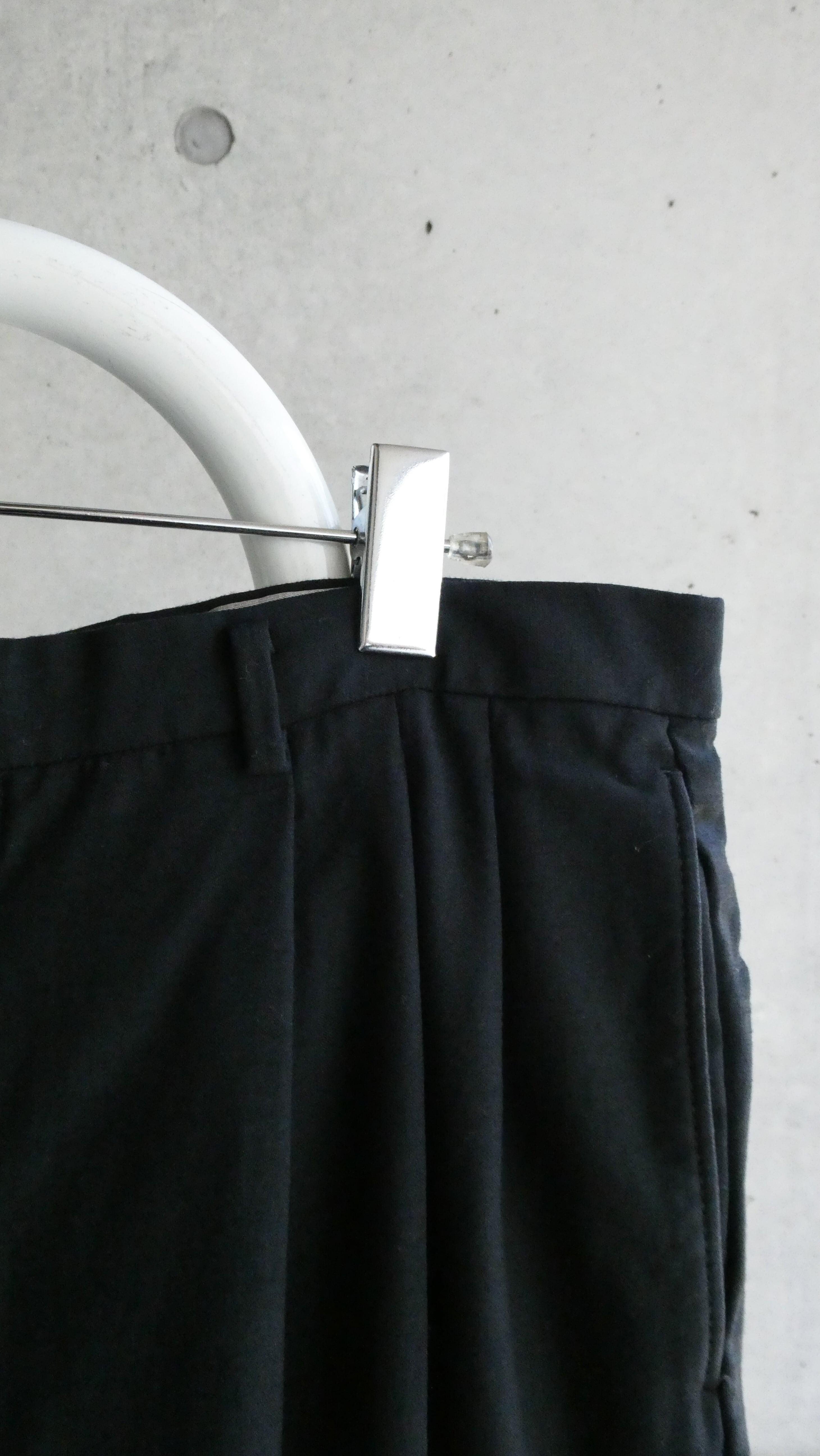 ブラックのウールスラックス。ヴィンテージらしいウールギャバ生地。タック入りで、太すぎず、細すぎないストレートシルエットです。