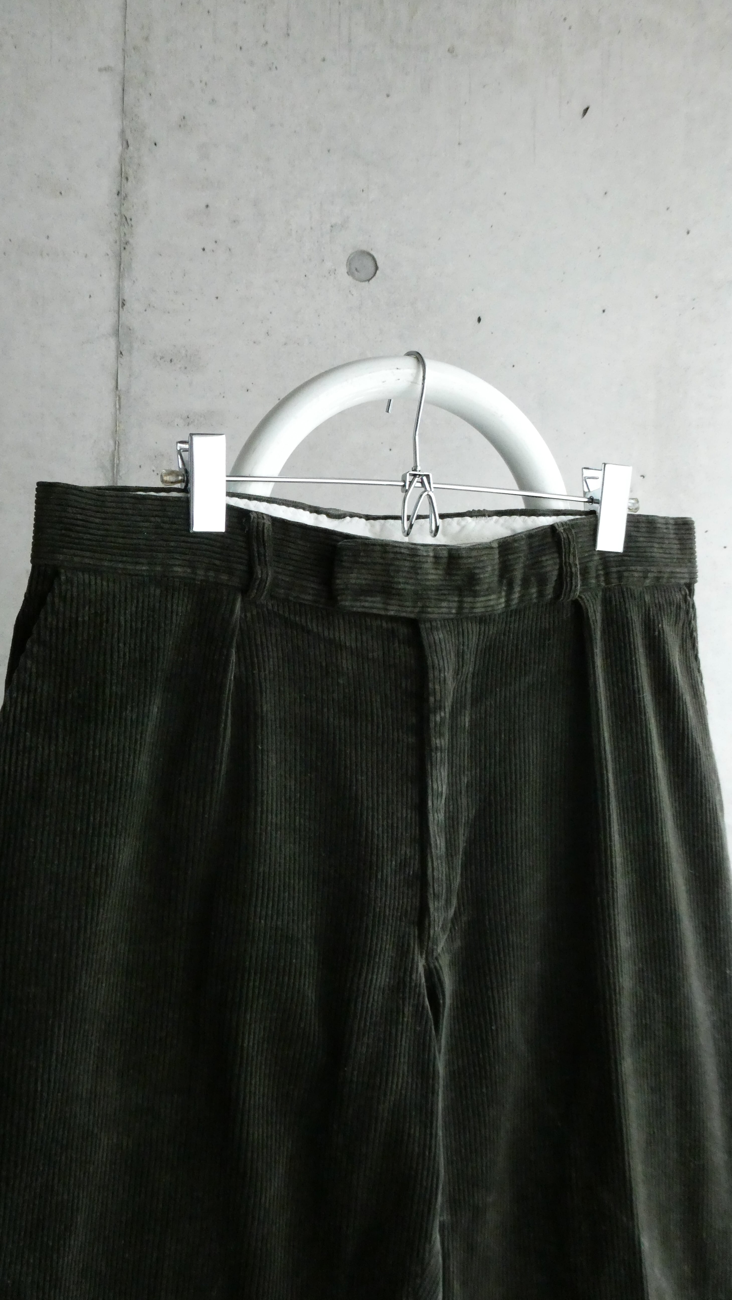 希少なイギリス製のコーデュロイスラックスの入荷です。色も珍しいオリーブ色。流石のイギリス製で高級感あるコーデュロイ生地。タック入りです。小柄なメンズ向けサイズです。