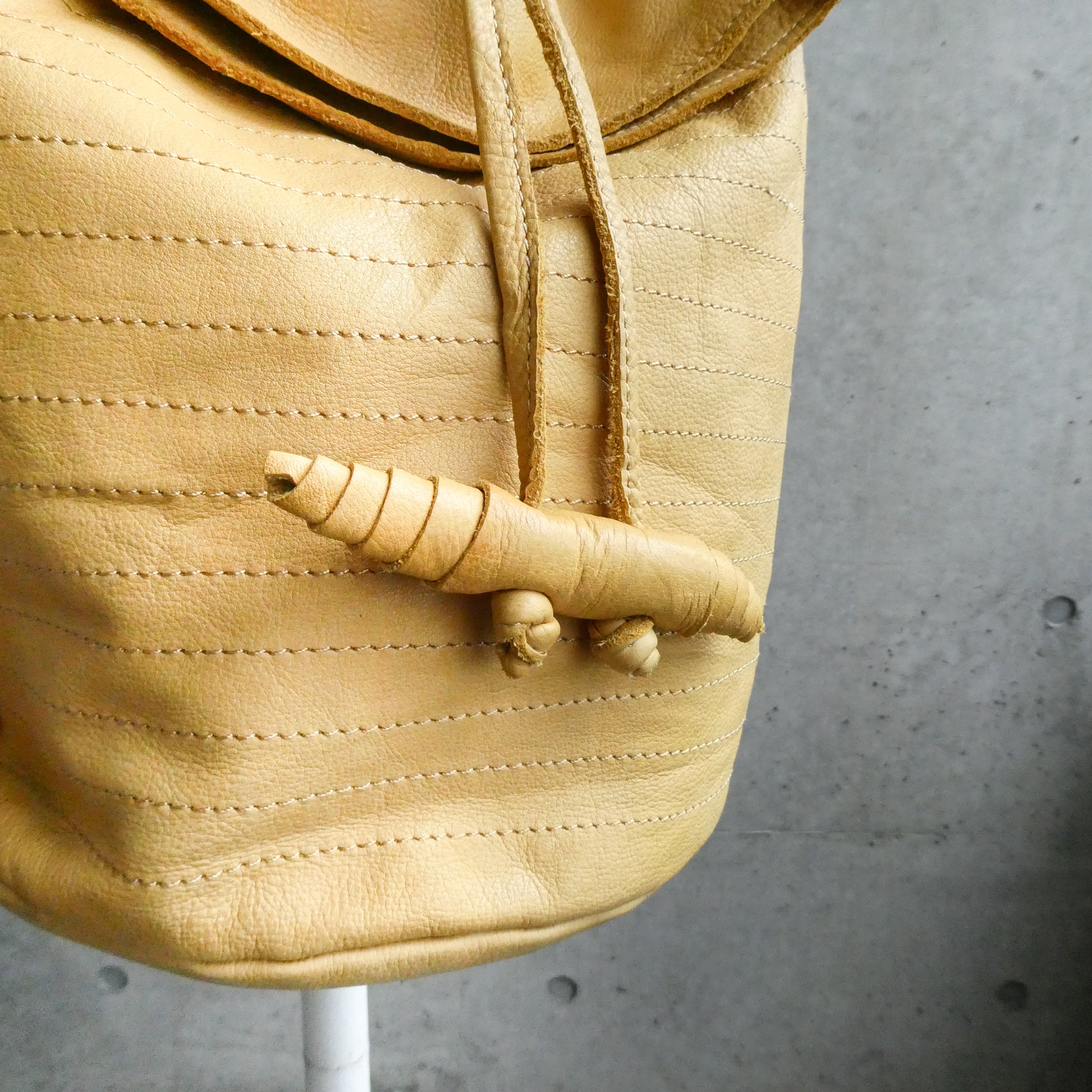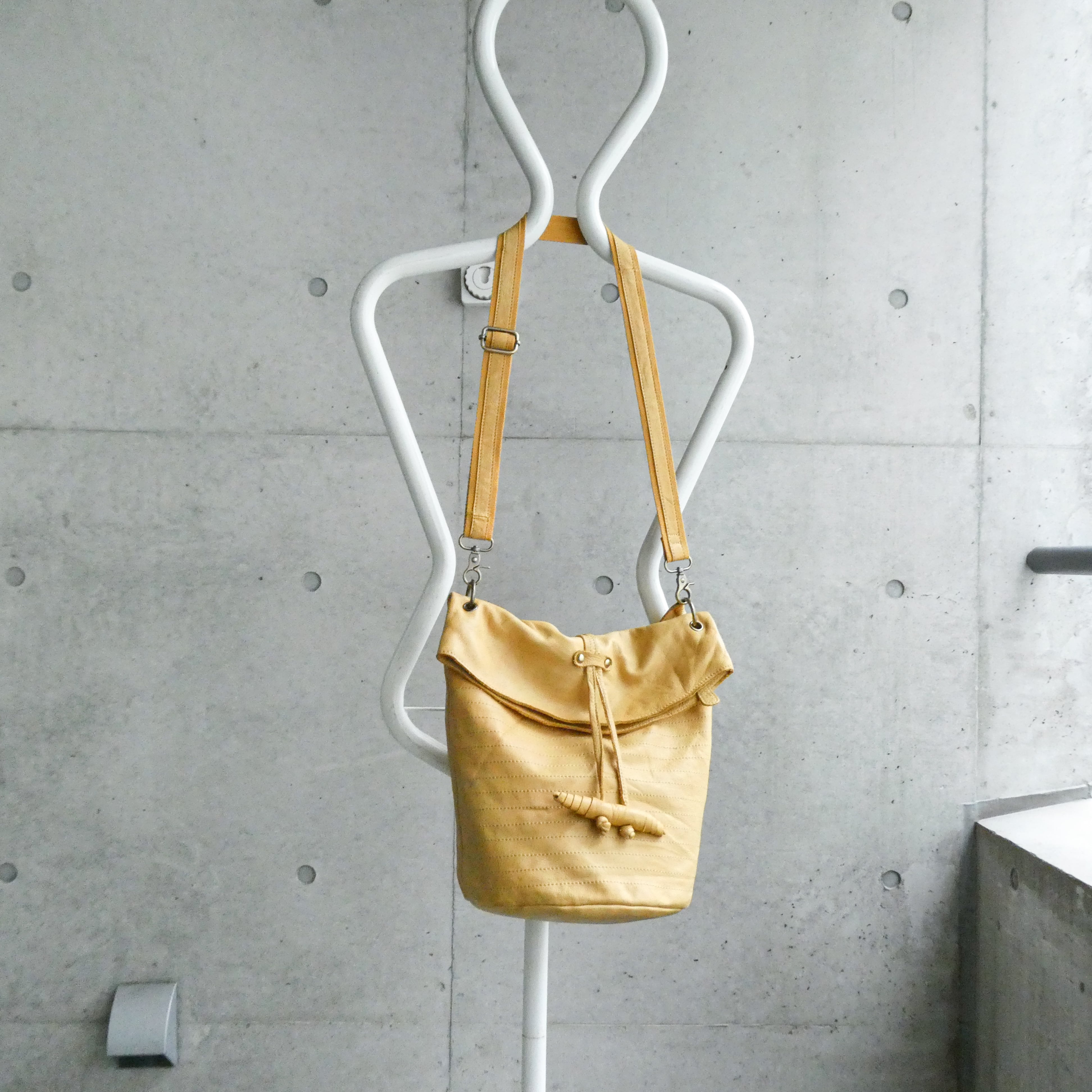 バケツ型のレザーショルダー。凄く発色綺麗なイエローが良くてピックしました。秋冬はブラウン、グレー系に合わせても可愛い色味です。革質も極上で柔らかいです。