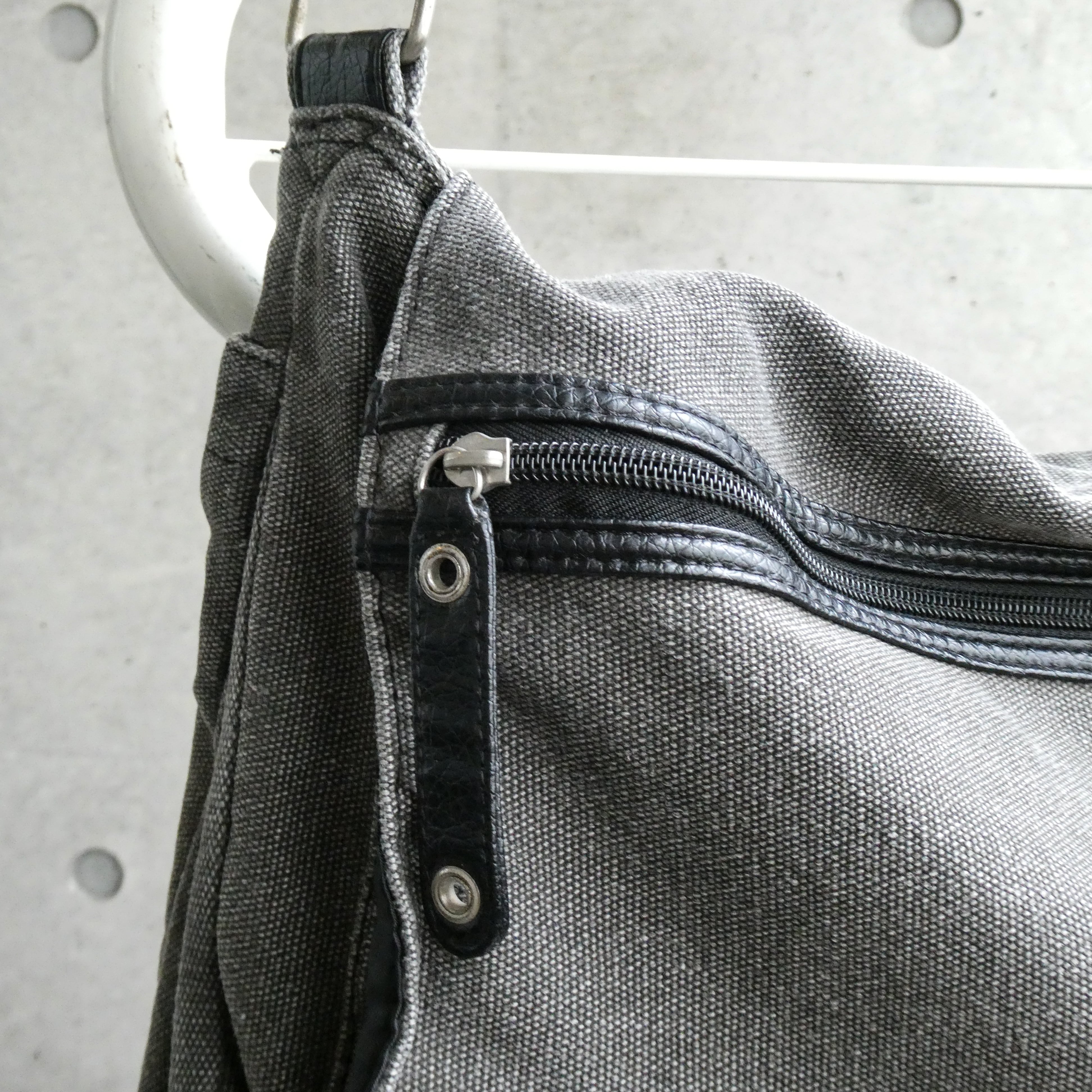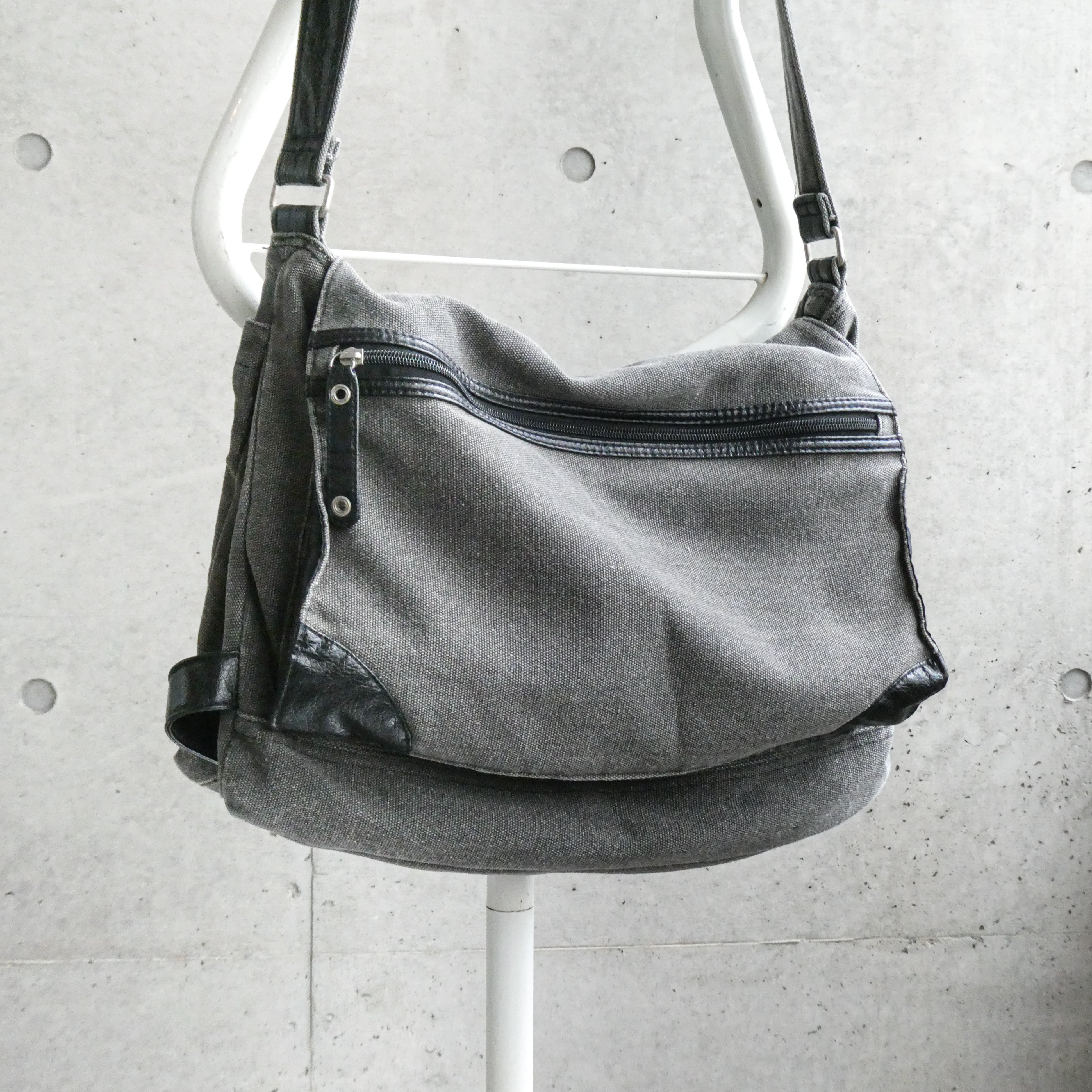 ブラックデニムとフェイクレザーの切替ショルダー。普段フェイクレザーはピックしないのですが、これは