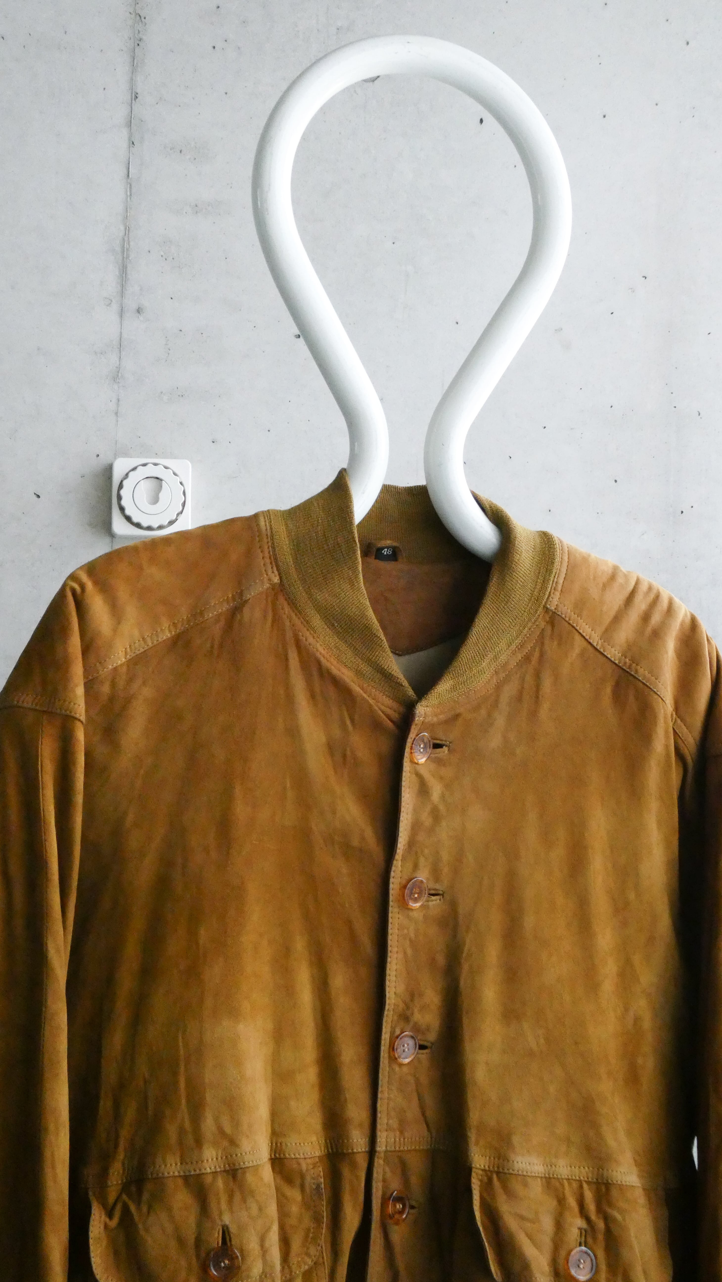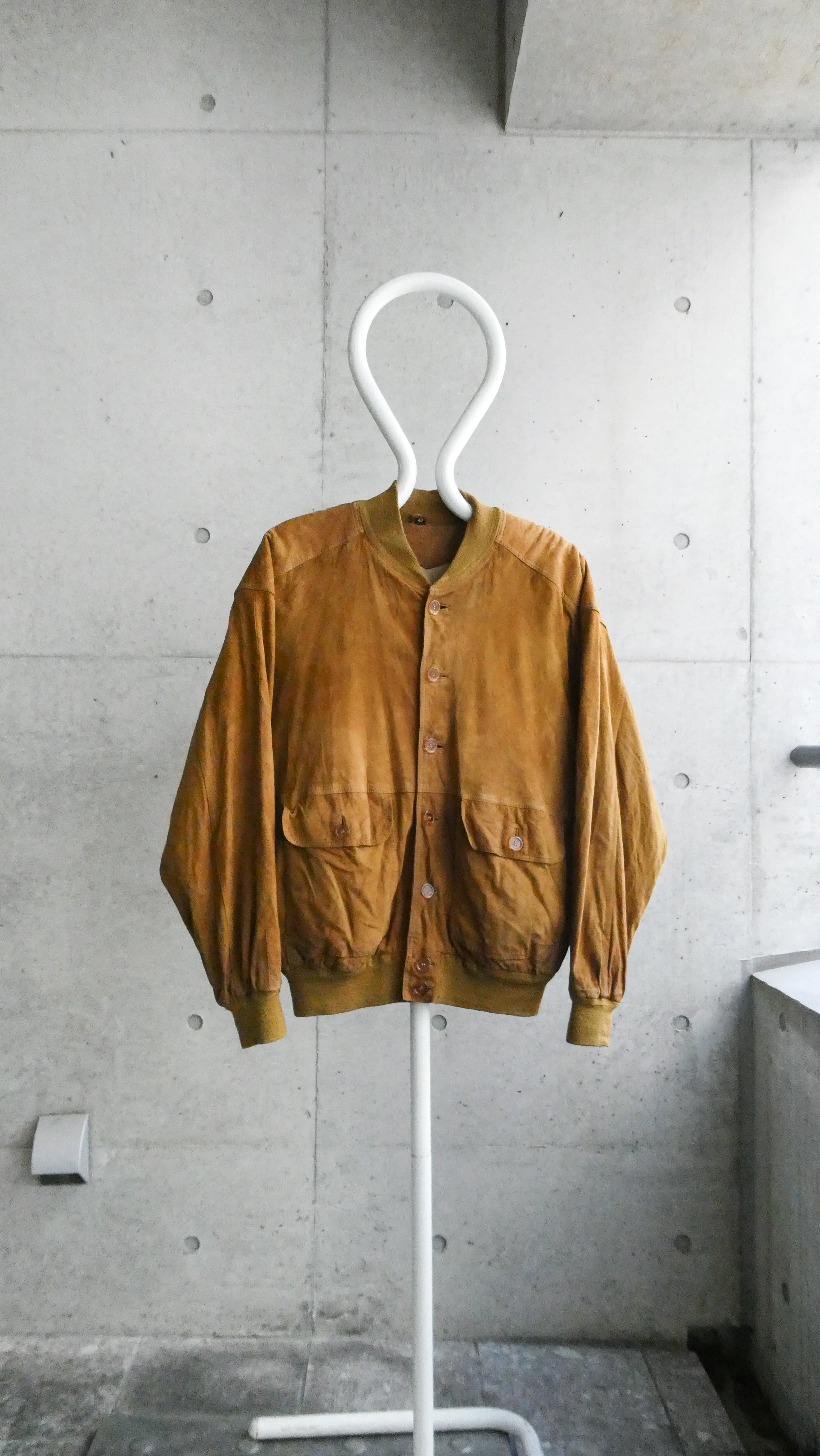 べっ甲色のような綺麗な飴色のキャメルカラーのレザー。シルエットが過去1良くてピックしました。短丈でアーム太めのシルエット。ボタンも透明のべっ甲柄。裏地付きで着心地抜群です。