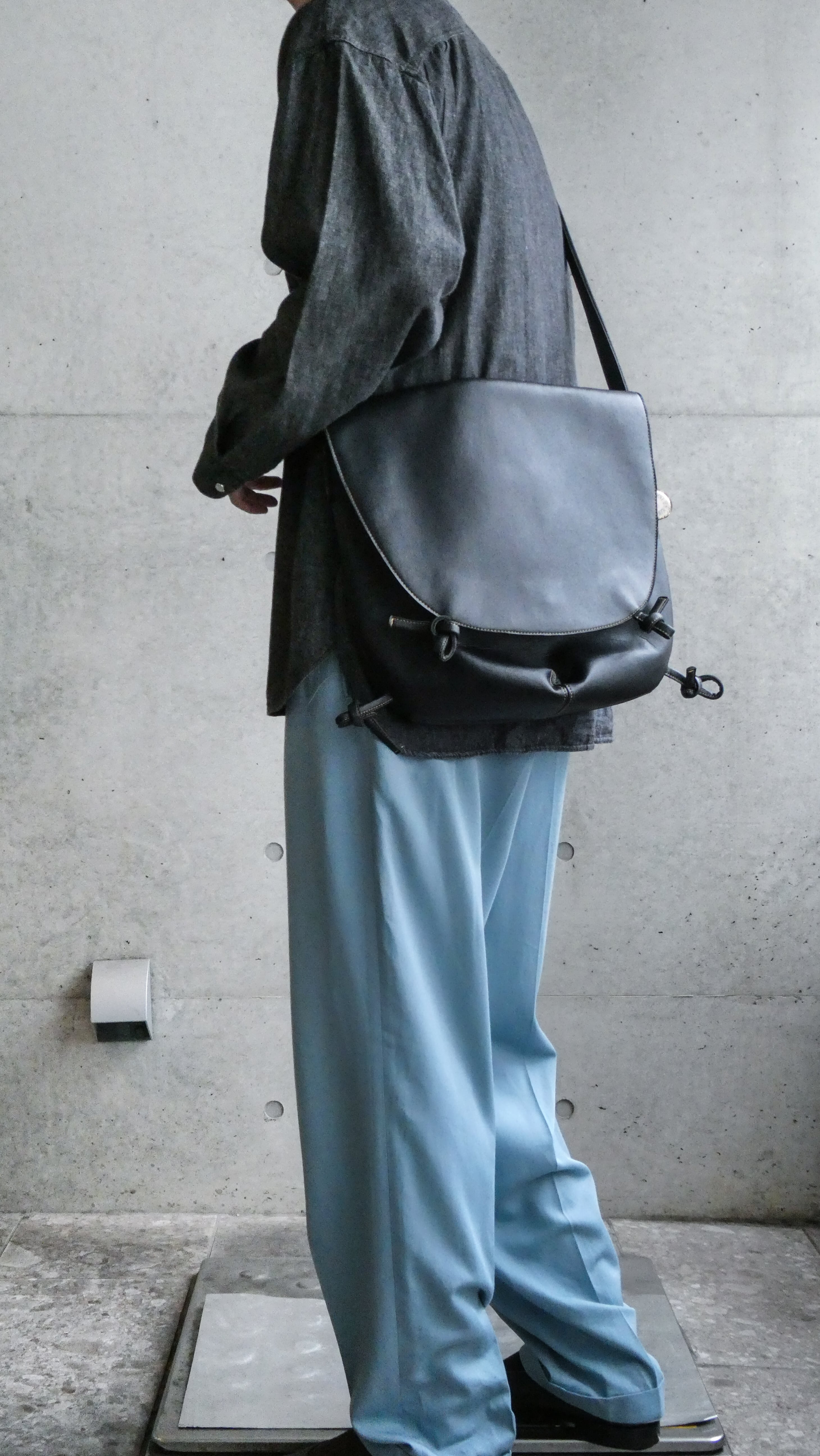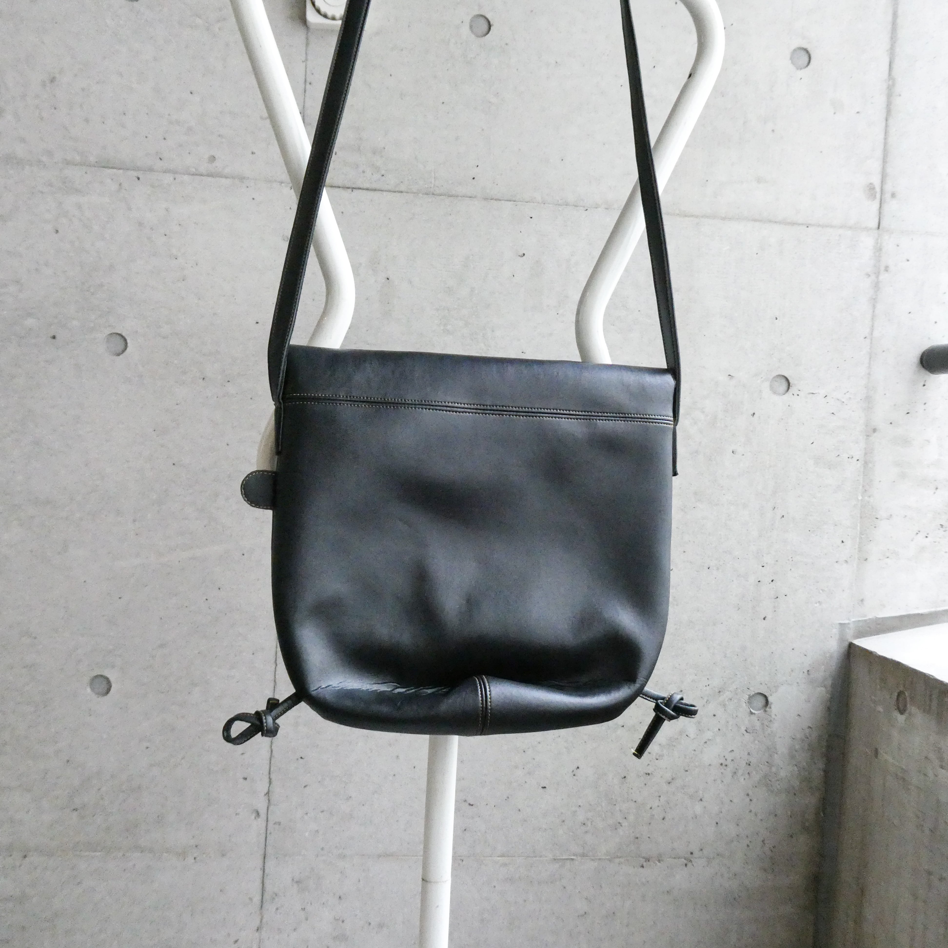 スペシャルなホースレザーのショルダー。表記ないですが、質感からホースレザーで間違いないと思います。ちょい大きめないいサイズ感。角の紐デザインもいいアクセントです。殆ど使用感ないコンディションです。