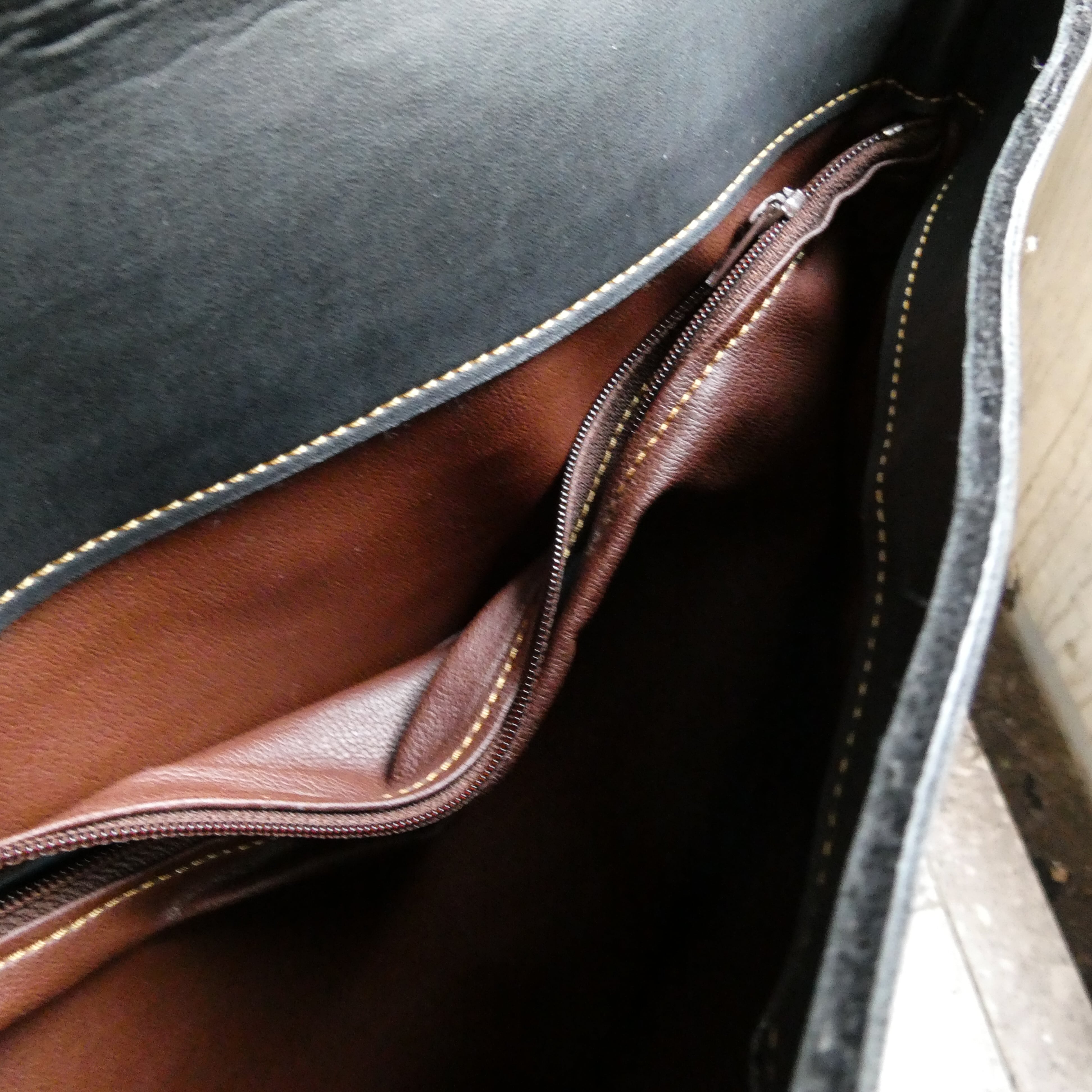 vintage black horse leather flap shoulder bag