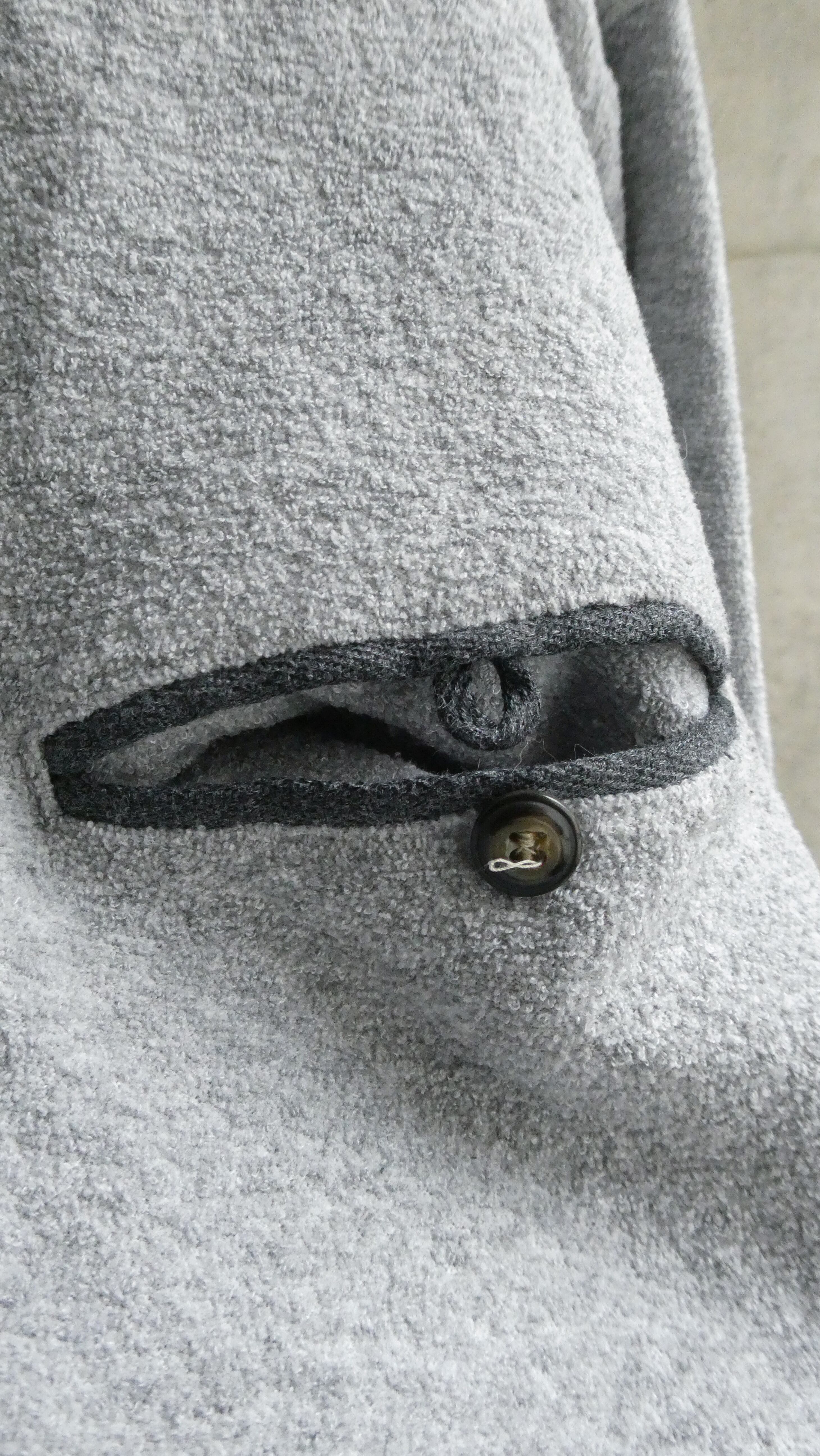 うちらしい、珍しいパイル地のニットポロです。パイル地のニットポロなんて年に2.3着も出ないと思います。レーヨン混で、滑らかさのある洋服向けに作られたパイル生地。ポケットもループが付いて可愛いです。