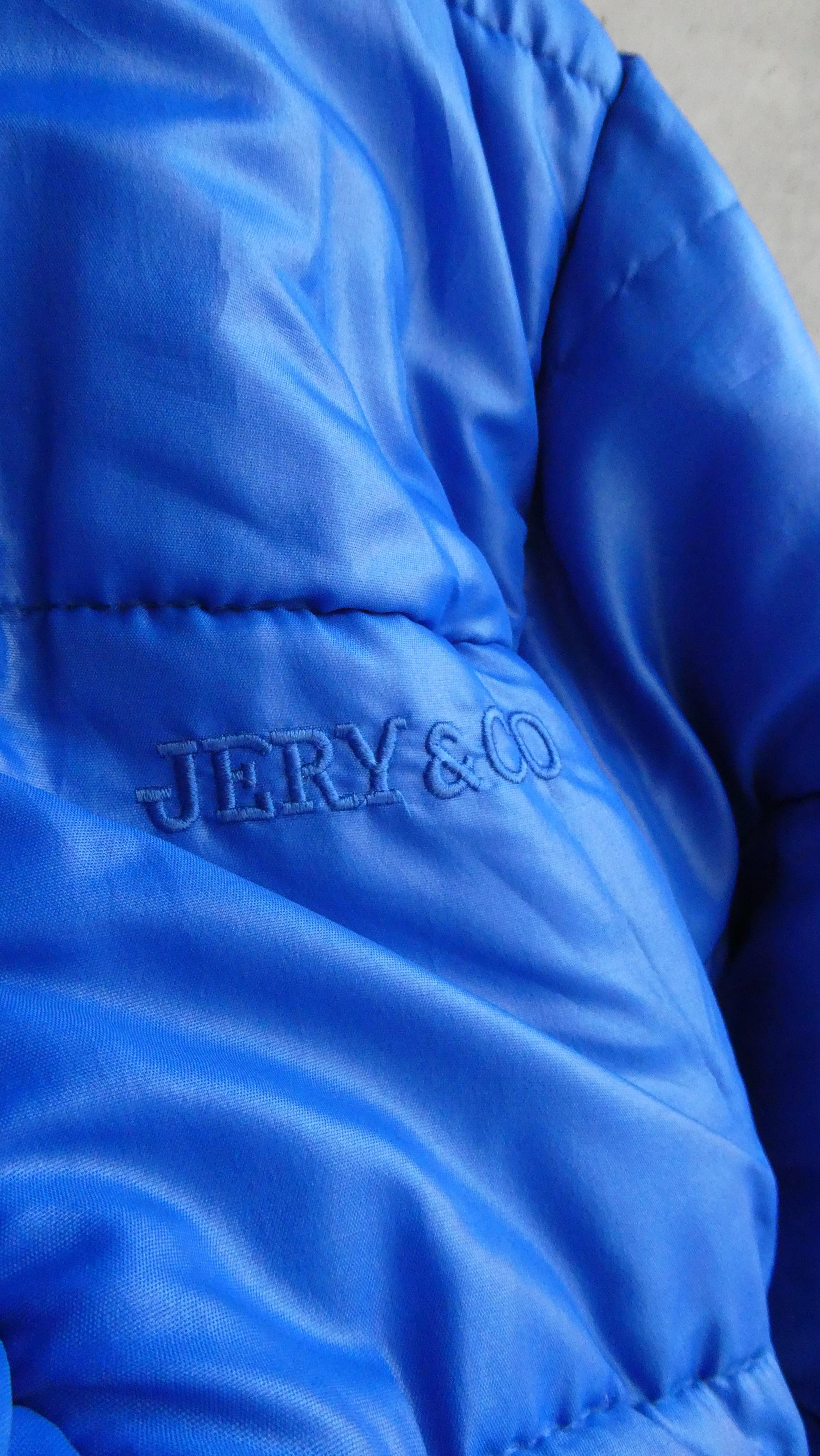 vintage blue short length puffer jacket