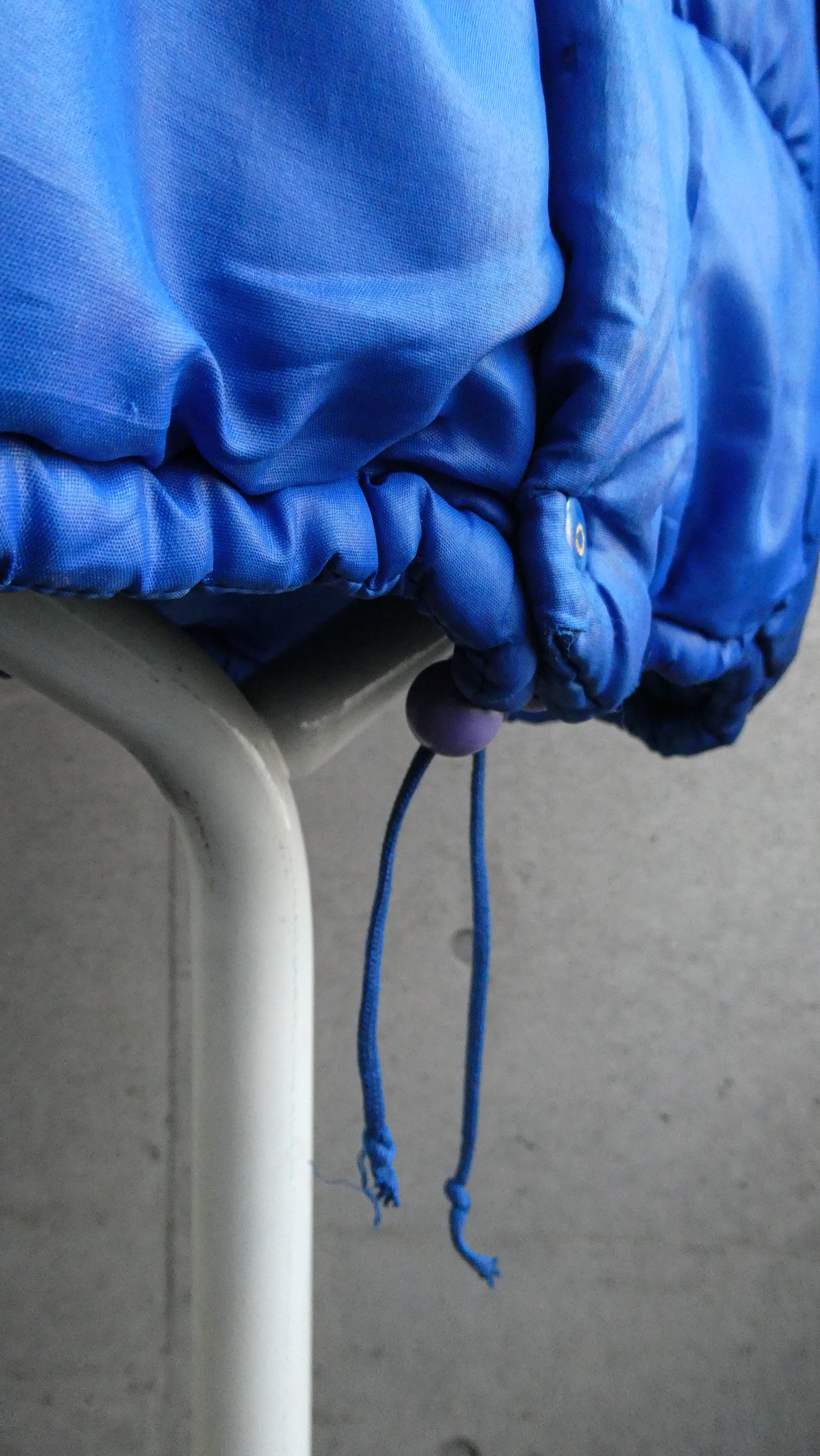 ユーロヴィンテージのパファージャケット。色味が最高すぎるブルーカラー。ボリュームも適度な感じでシルエット綺麗です。アーム、身幅太めで短丈シルエット。裾にドローコード付きです。