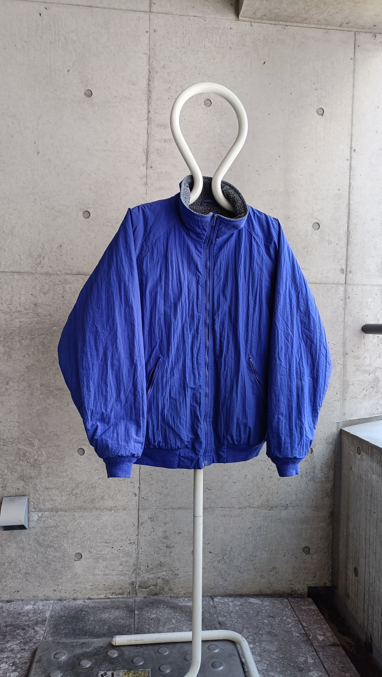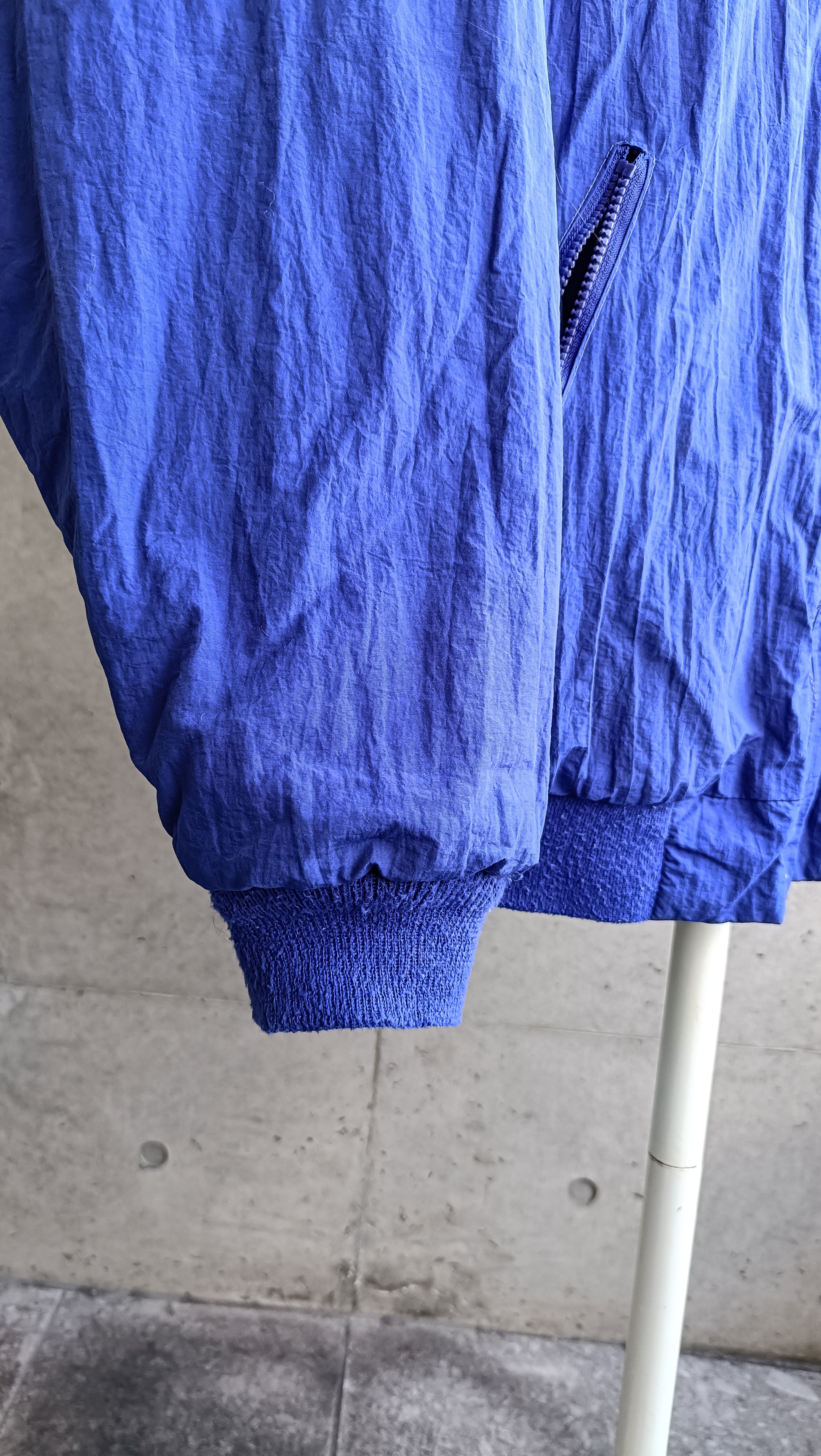 パタゴニア系にある独特なパープルブルーのシェルブルゾン。裏地はグレーのフリースでチラッと見えるアクセント。ラグランで丸いシルエットです。しっかりシャリ感あるヴィンテージらしい生地です。