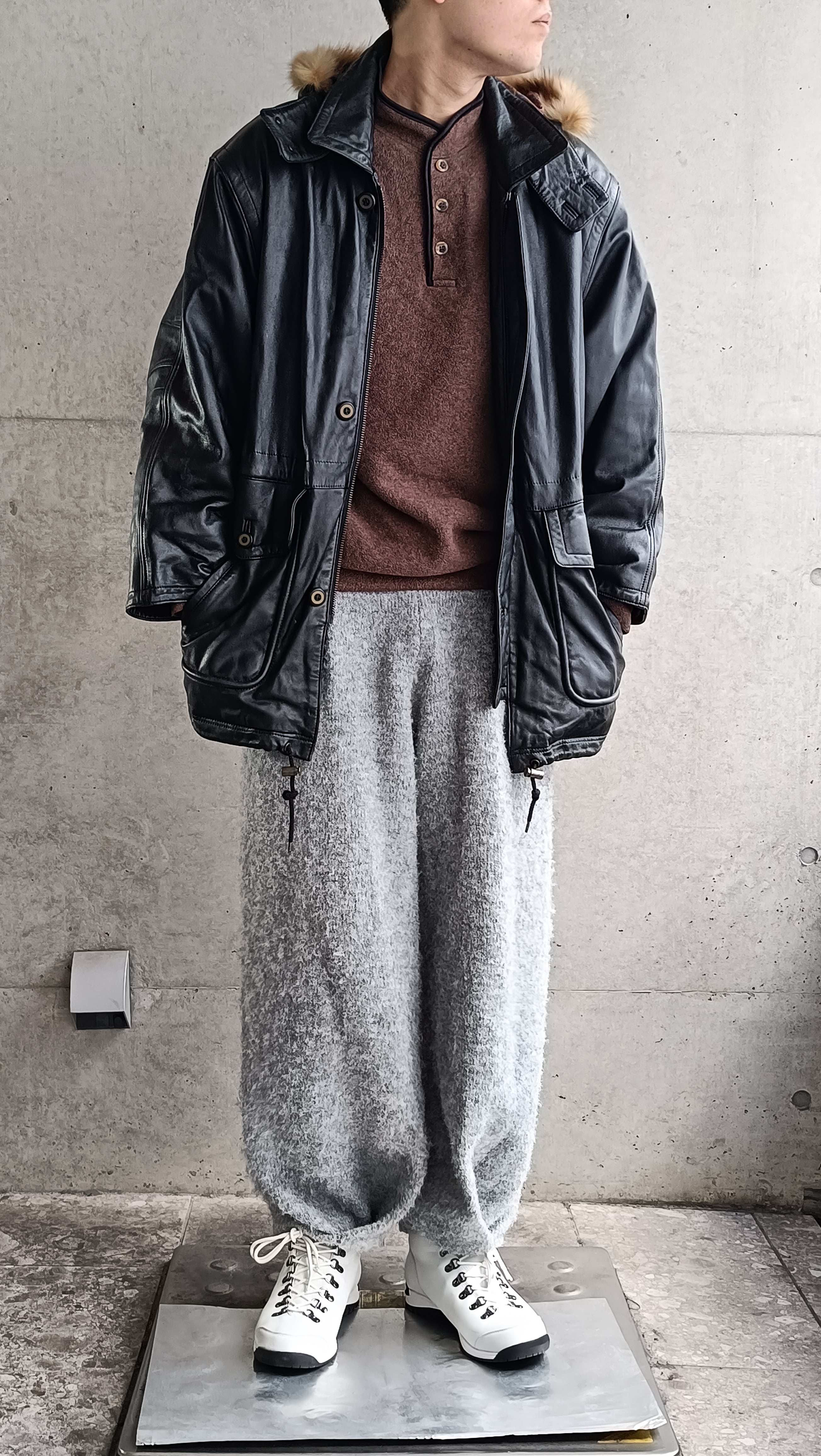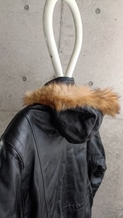 ブラックのレザーファーコートの入荷。今季当店イチオシのレザーコート。珍しいファーフードタイプ。モッズ的なノリで着れるのがカッコイイです。横から手を突っ込めるポケット仕様。革も柔らかくて着やすいです。