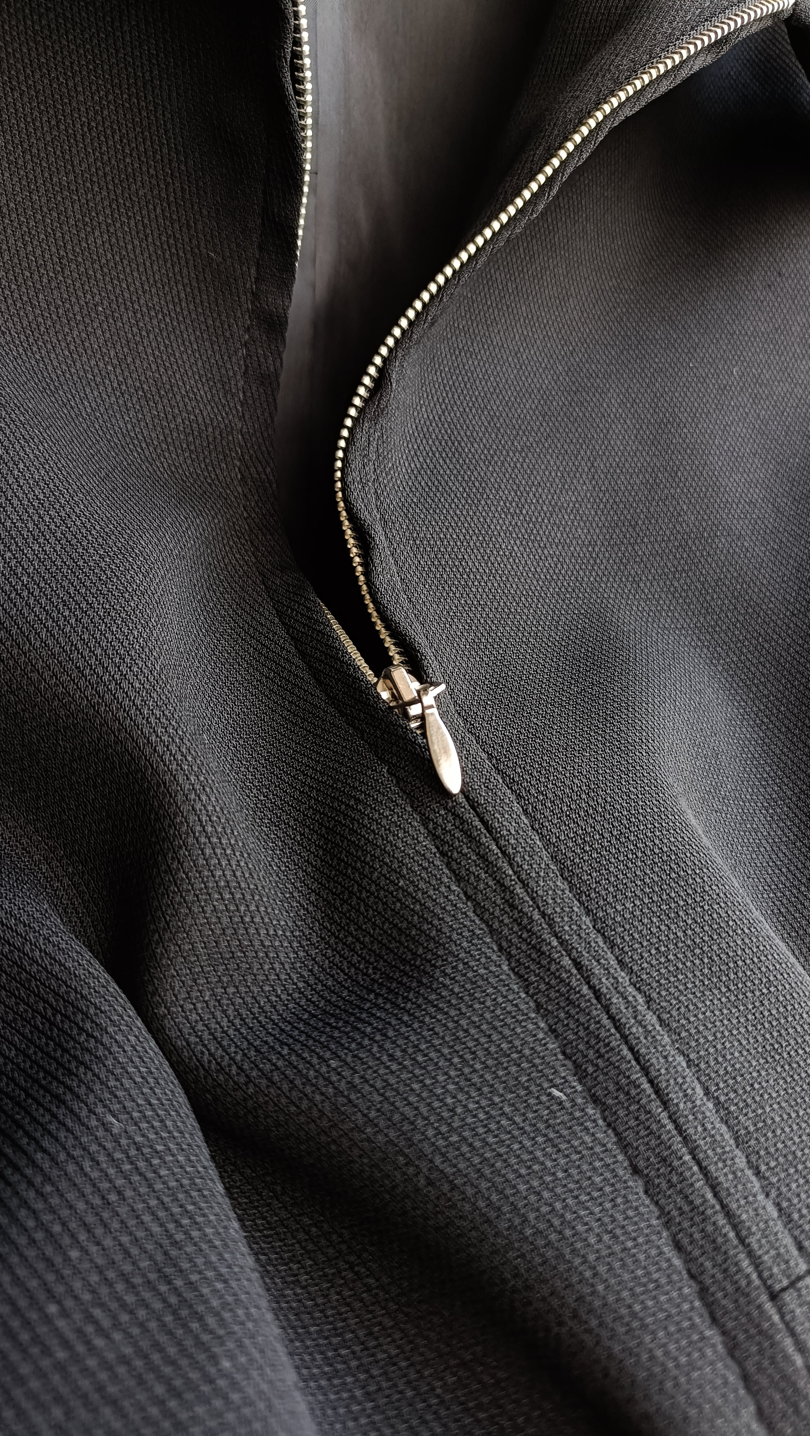 ブラックのツイルドリズラージャケットの入荷です。シンプルでモードなドリズラー。ジップチャームも繊細で洗練された雰囲気です。