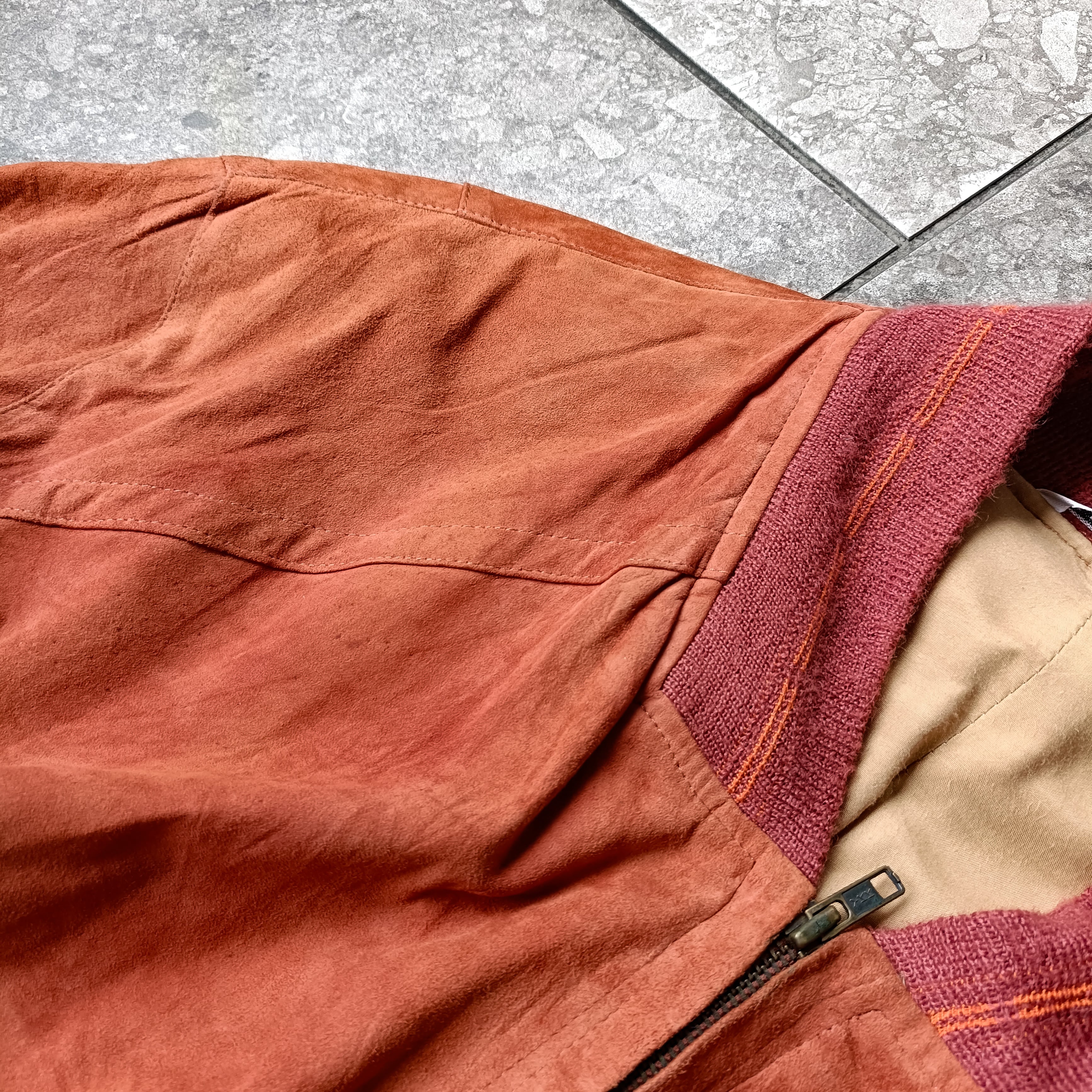 スペシャルカラーのレザーの入荷です。珍しいオレンジカラーのヌバックレザー。Ma-1型なのも凄くいいです。イタリア製。アーム太くてシルエットも完璧な一着。