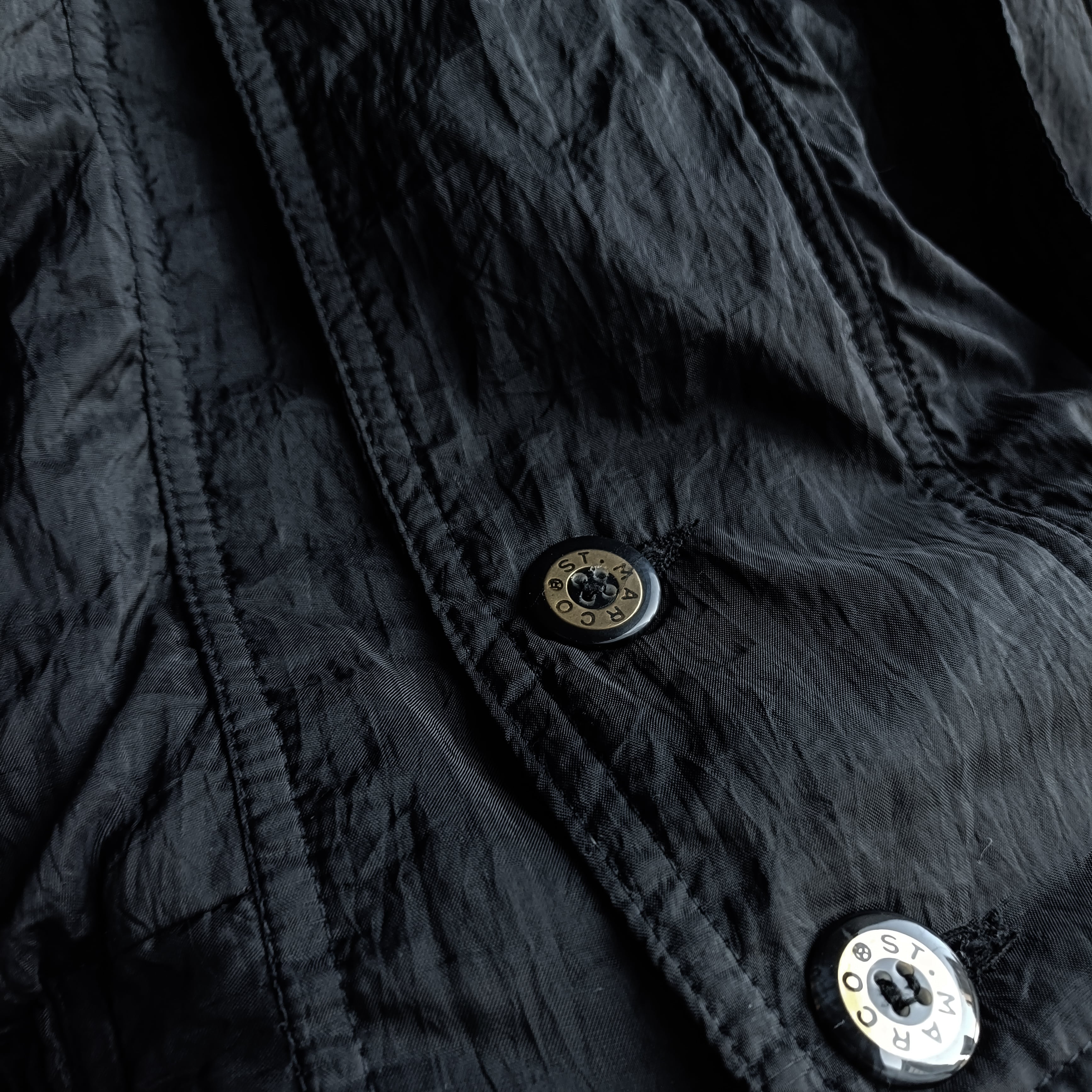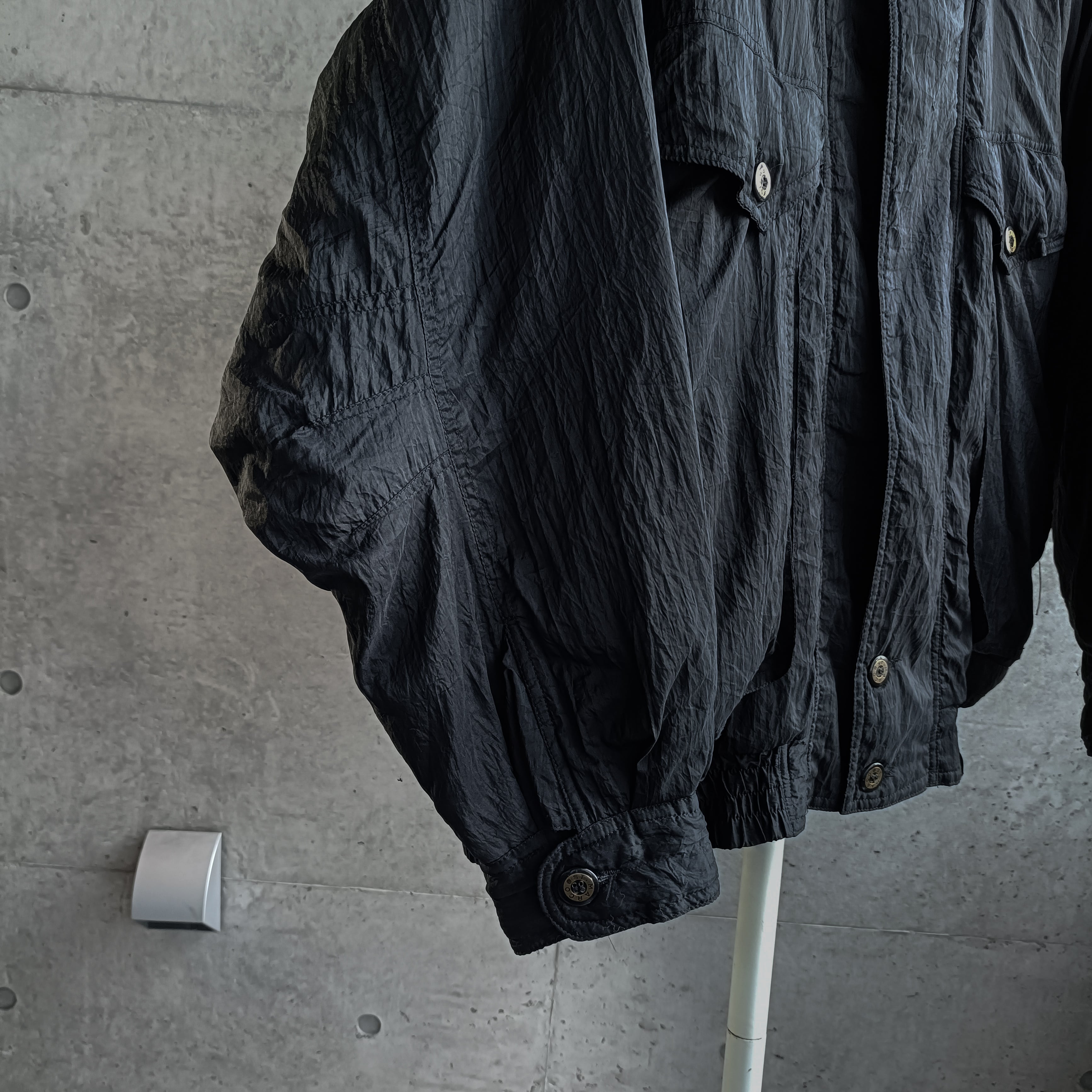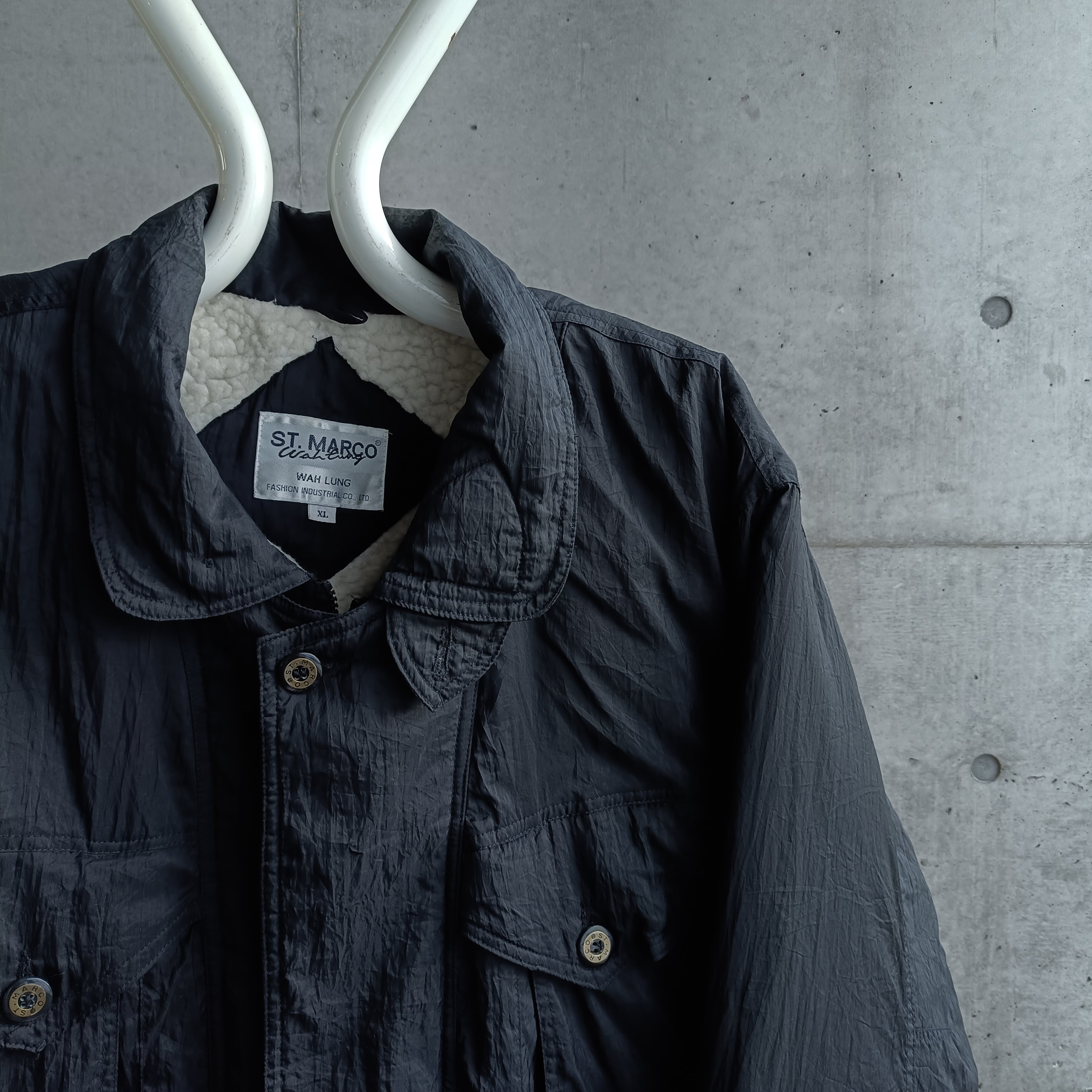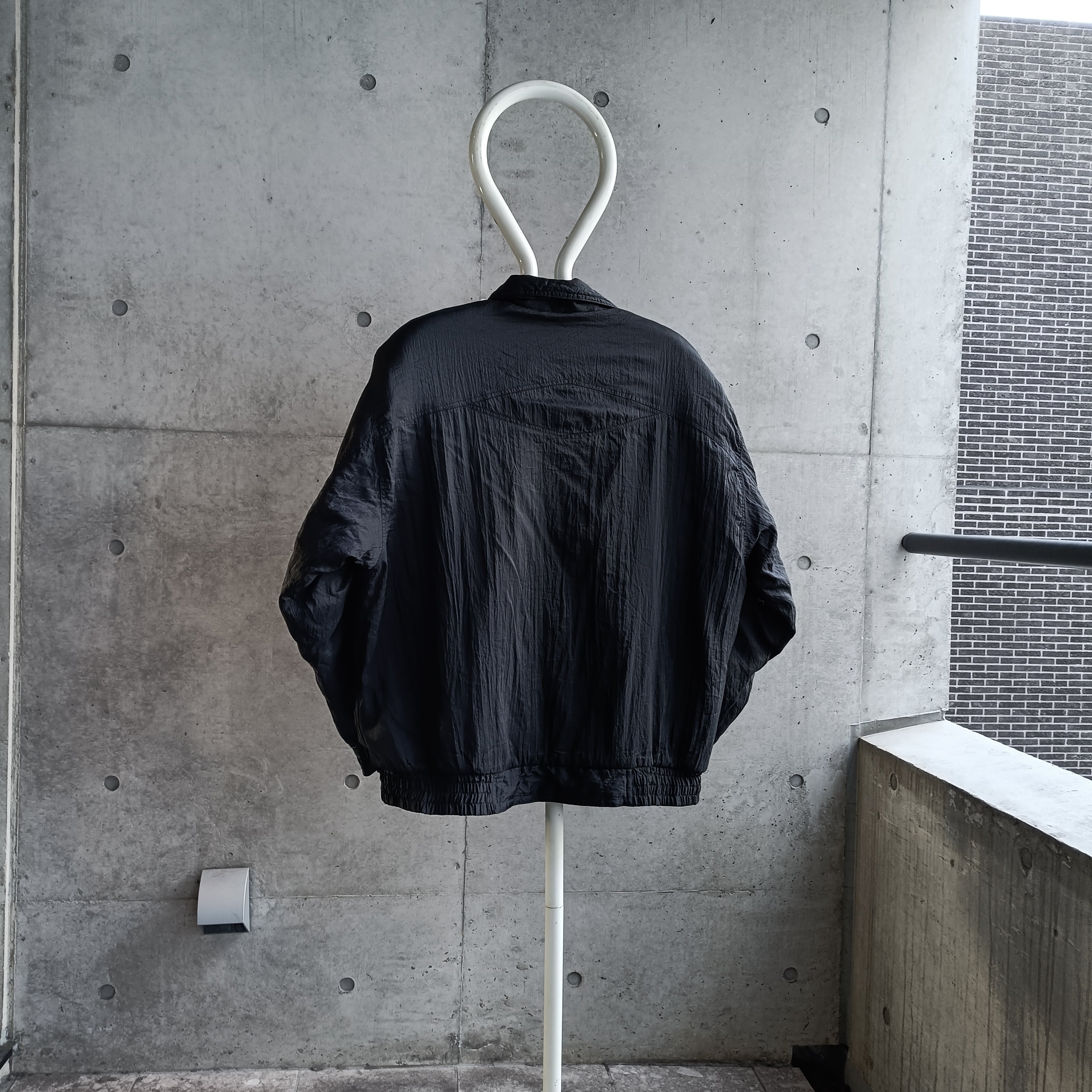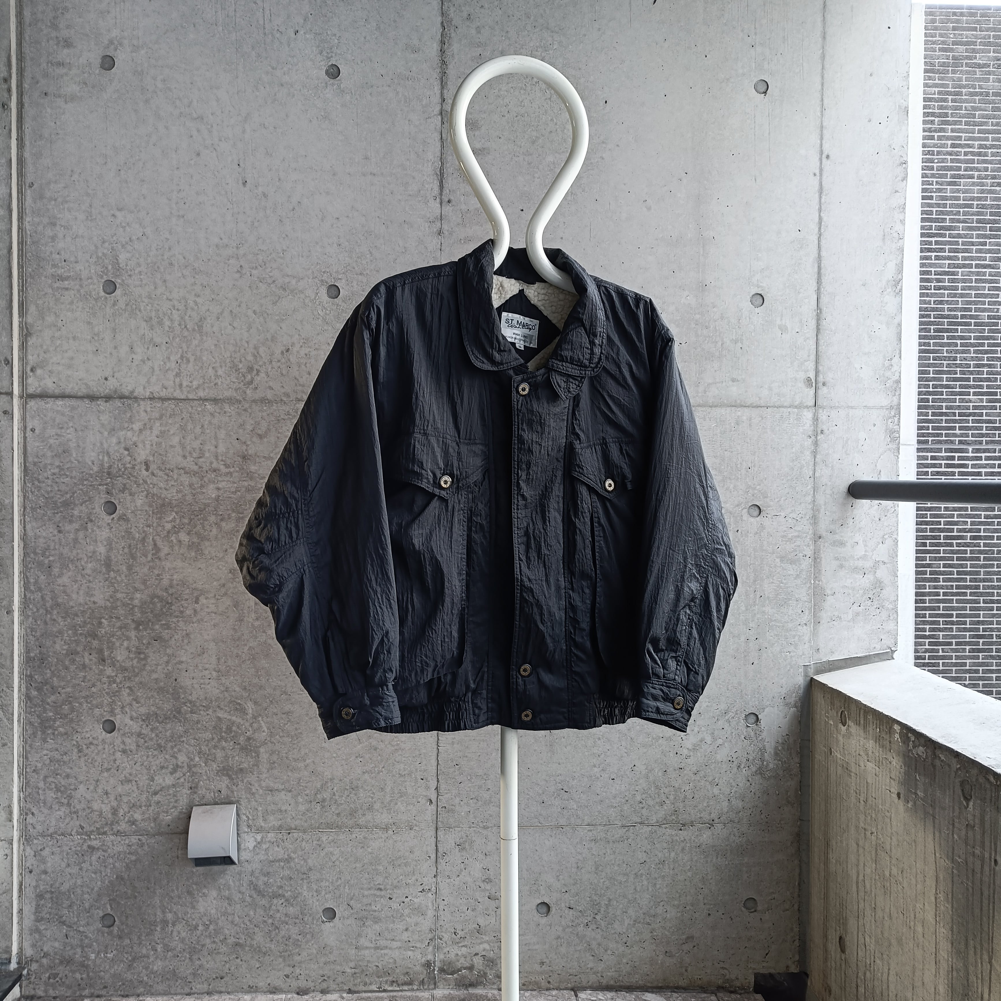 ブラックのシェルブルゾンの入荷です。シワ加工された生地感の生地。襟のチンストが丸くて、襟元にアクセントが出るデザイン。袖は極太でタック入り。裏地ボアで暖かいです。