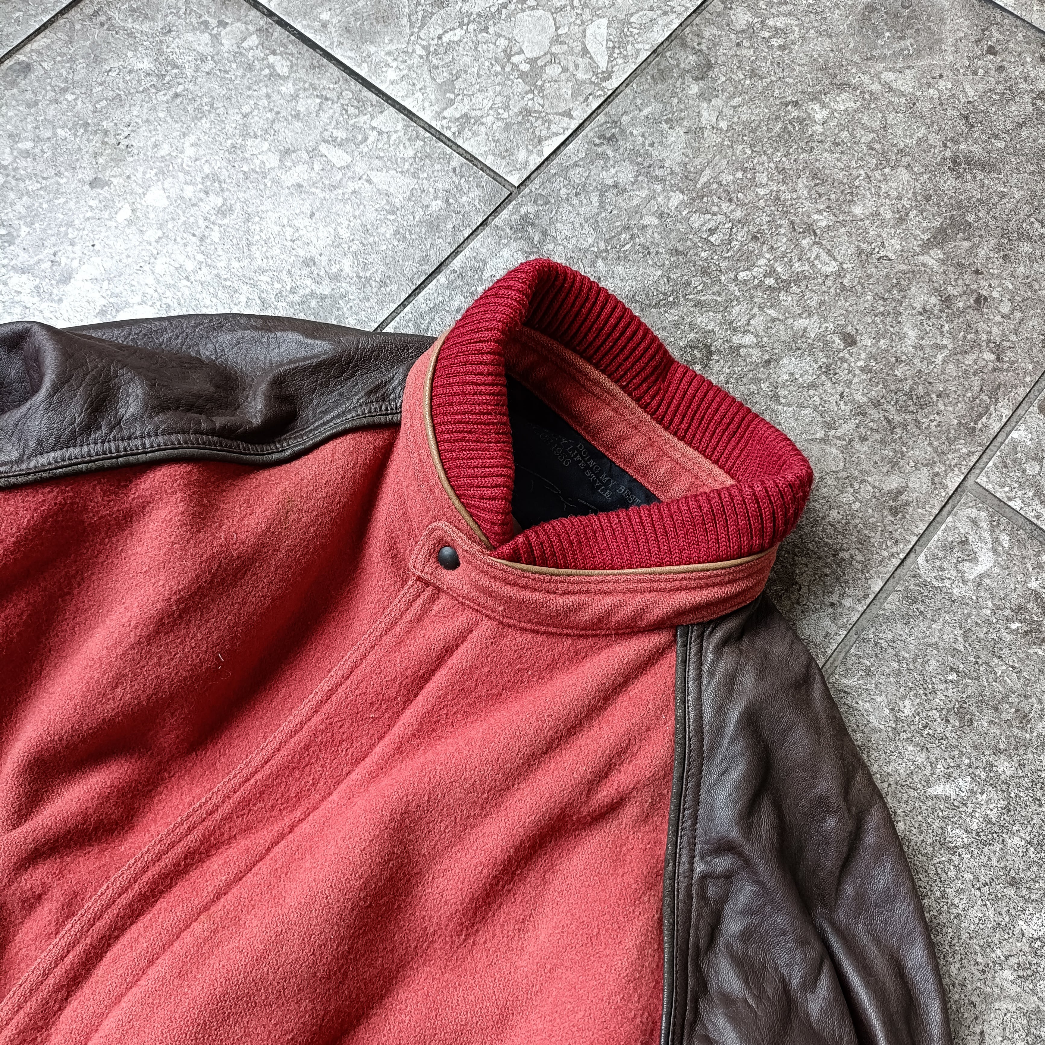 vintage smoky red leather switching blouson