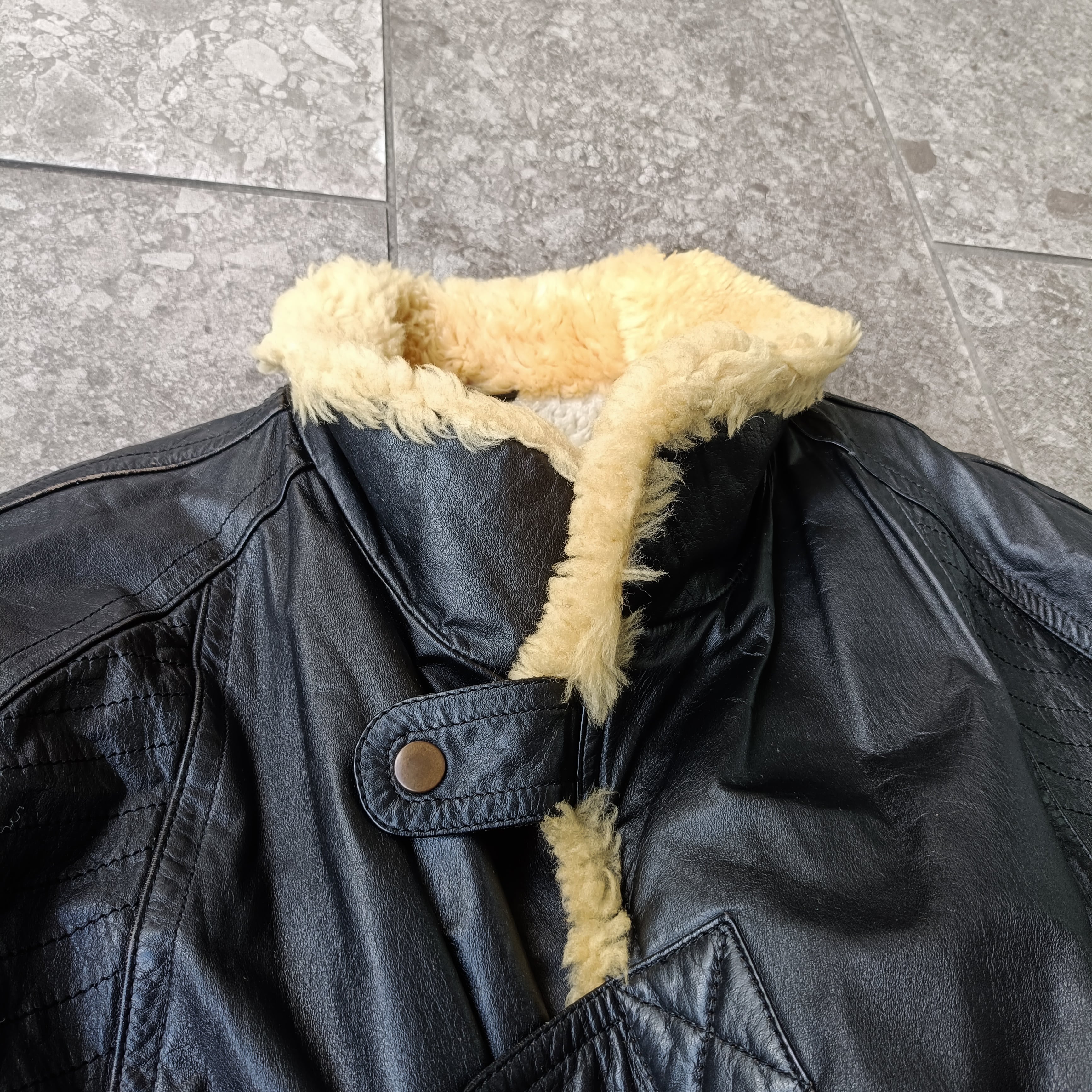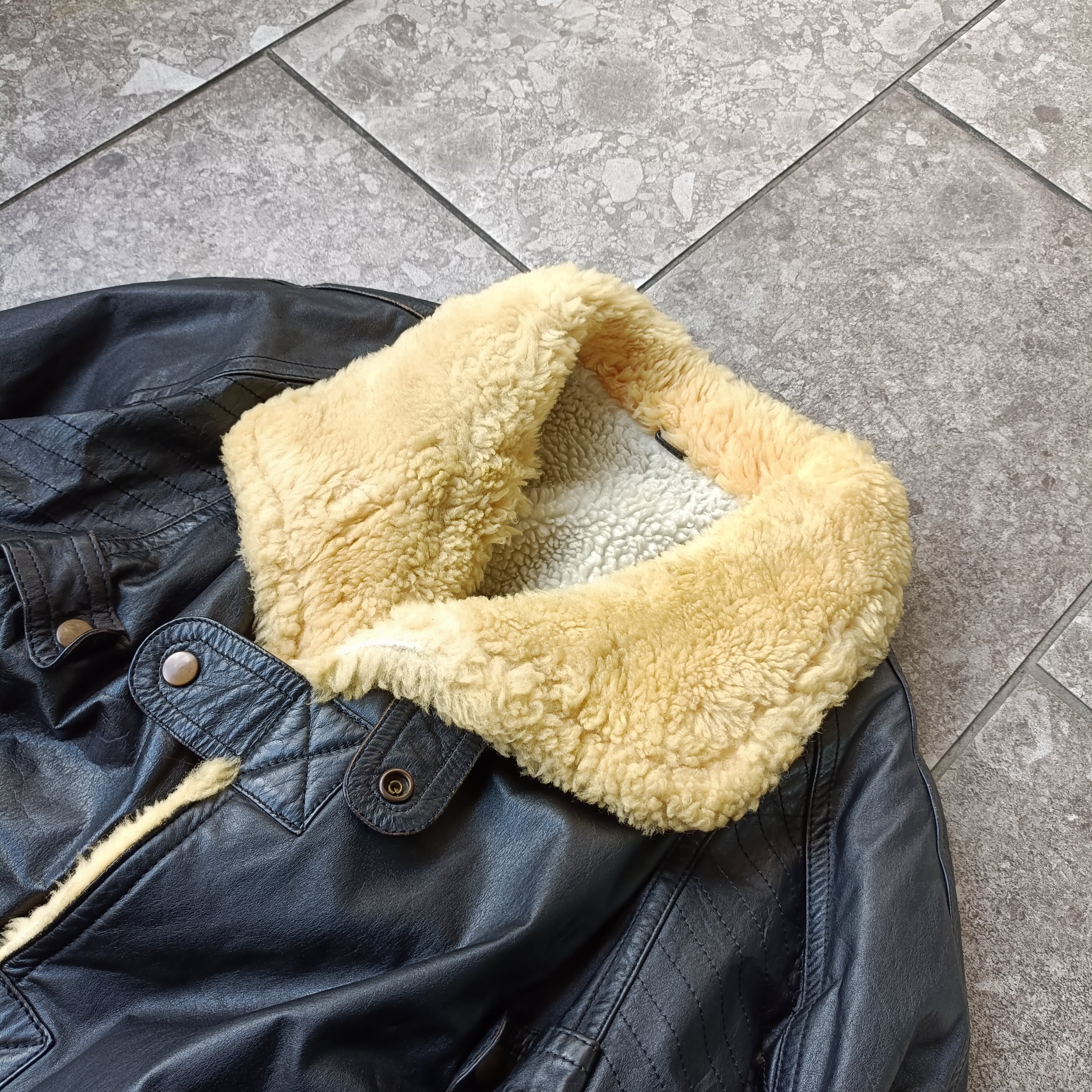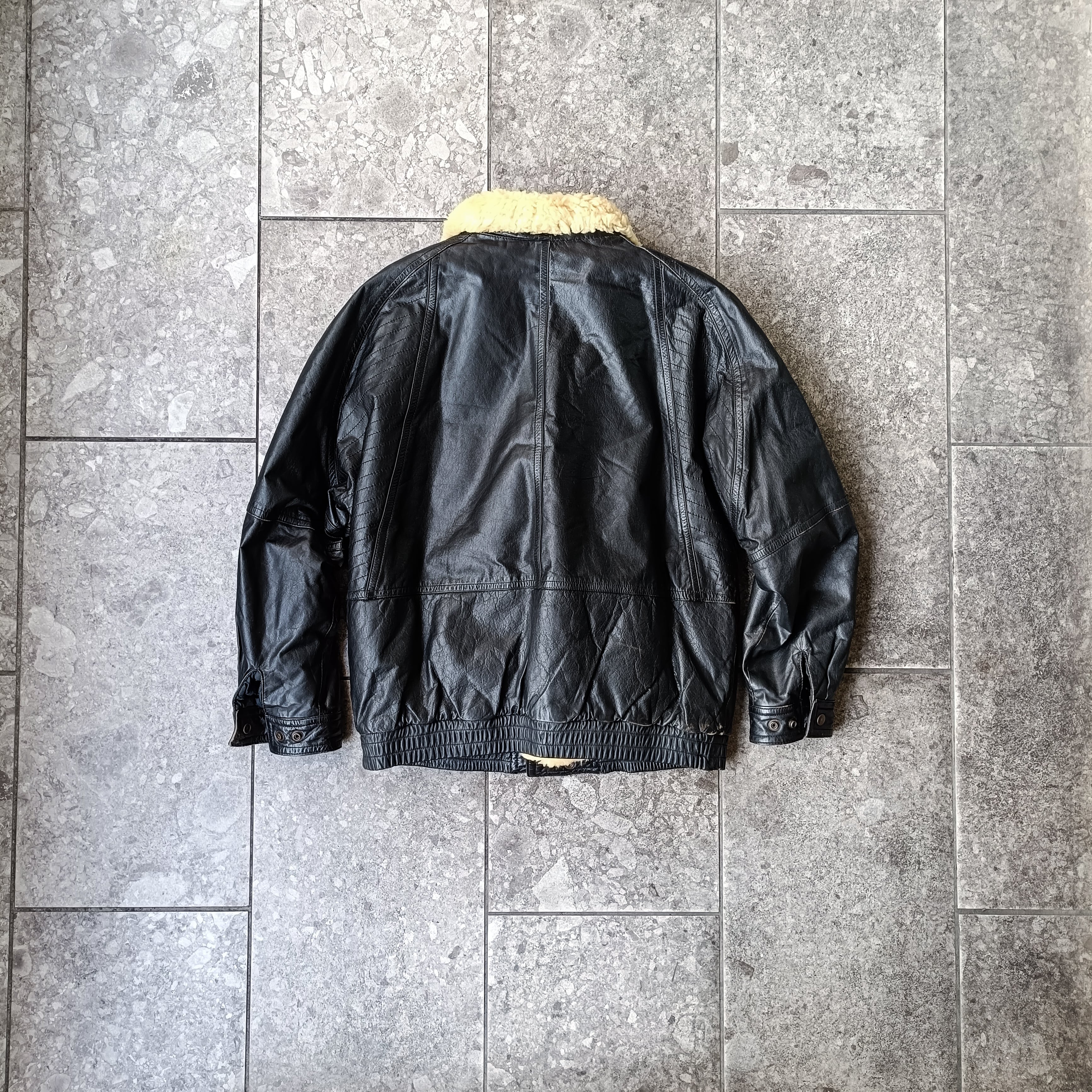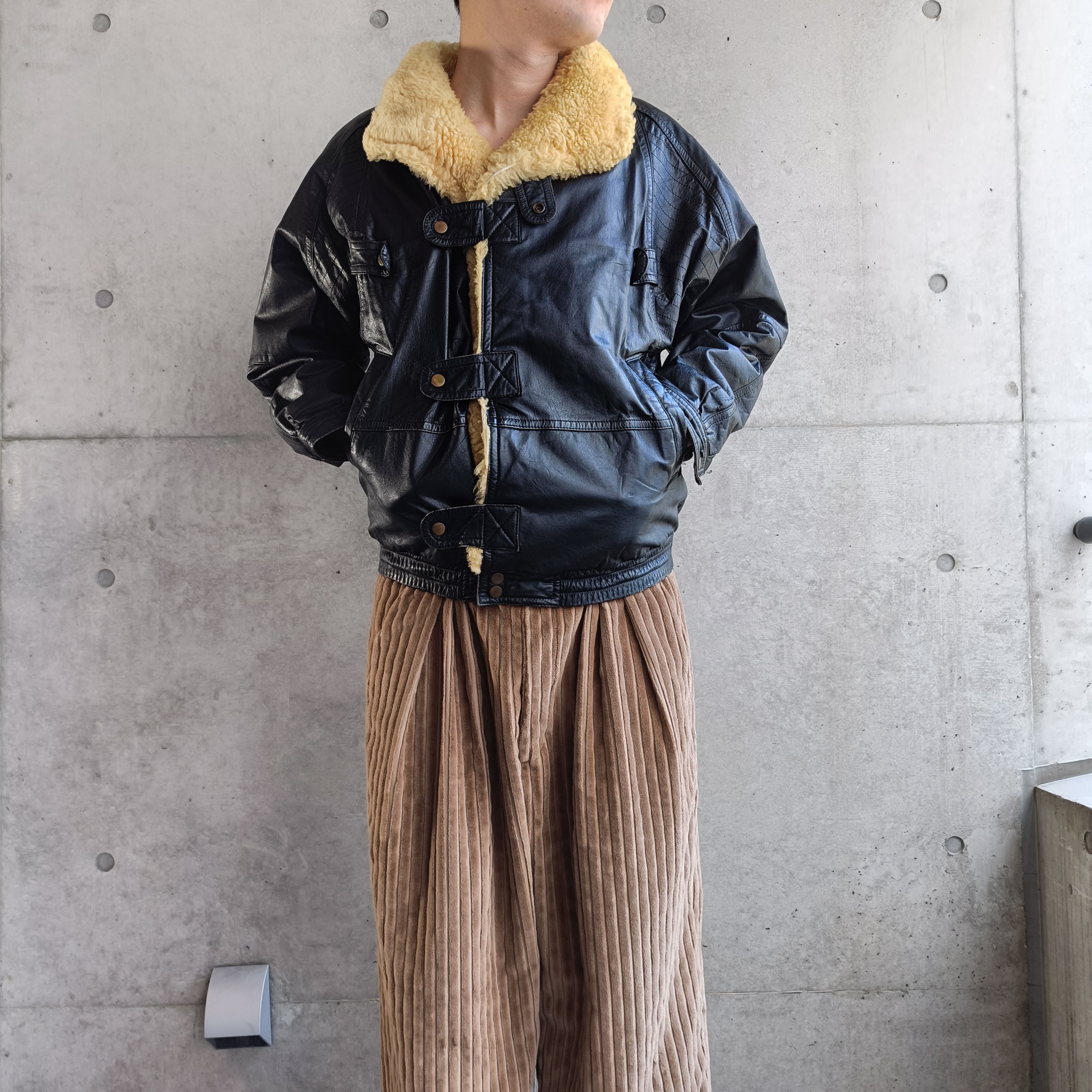 超スペシャルレザーの入荷。当店8年で初見なボアが前たてまで切替になったレザーブルゾン。フラップタイプのスナップなのもポイントです。黄色がかったボアなのもアクセント。襟立てても着用可能です。シルエットも完璧な一着。