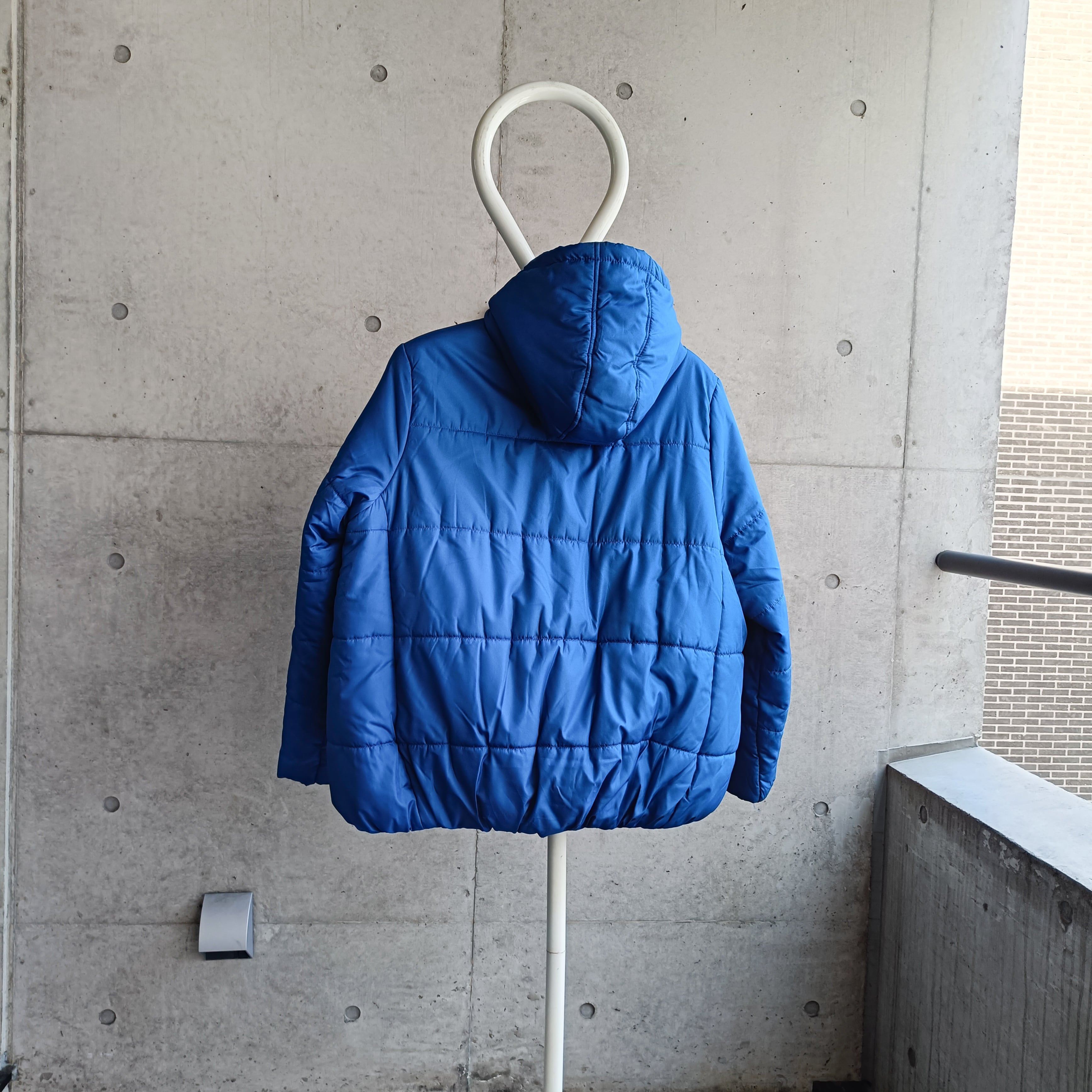 発色の綺麗なブルーカラーのダウンジャケット。フード付きで、A-2タイプのようなポケットが付いたデザインです。裾リブで、好きな丈感で着用可能。シルエットも綺麗です。横からも手を突っ込めるポケット仕様。