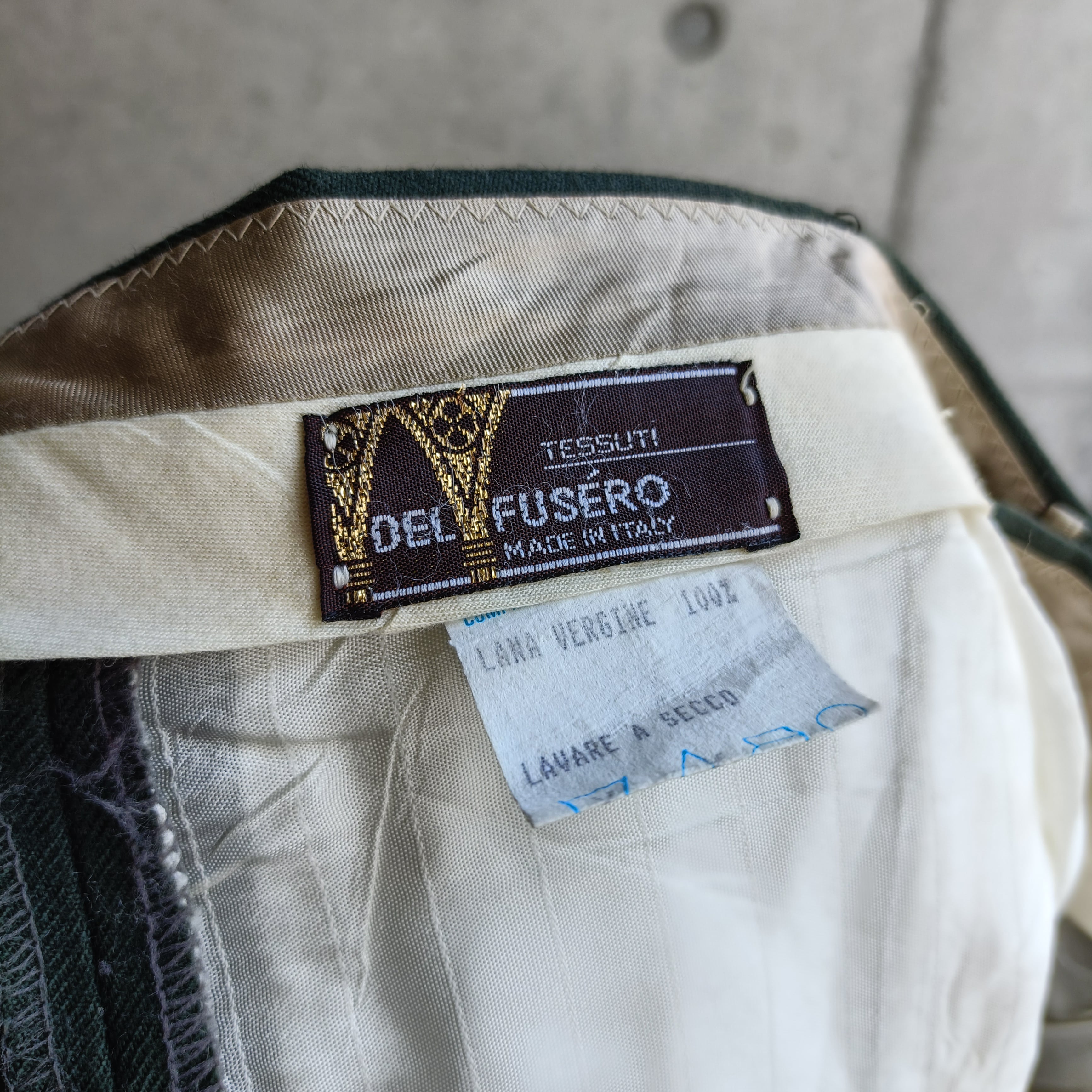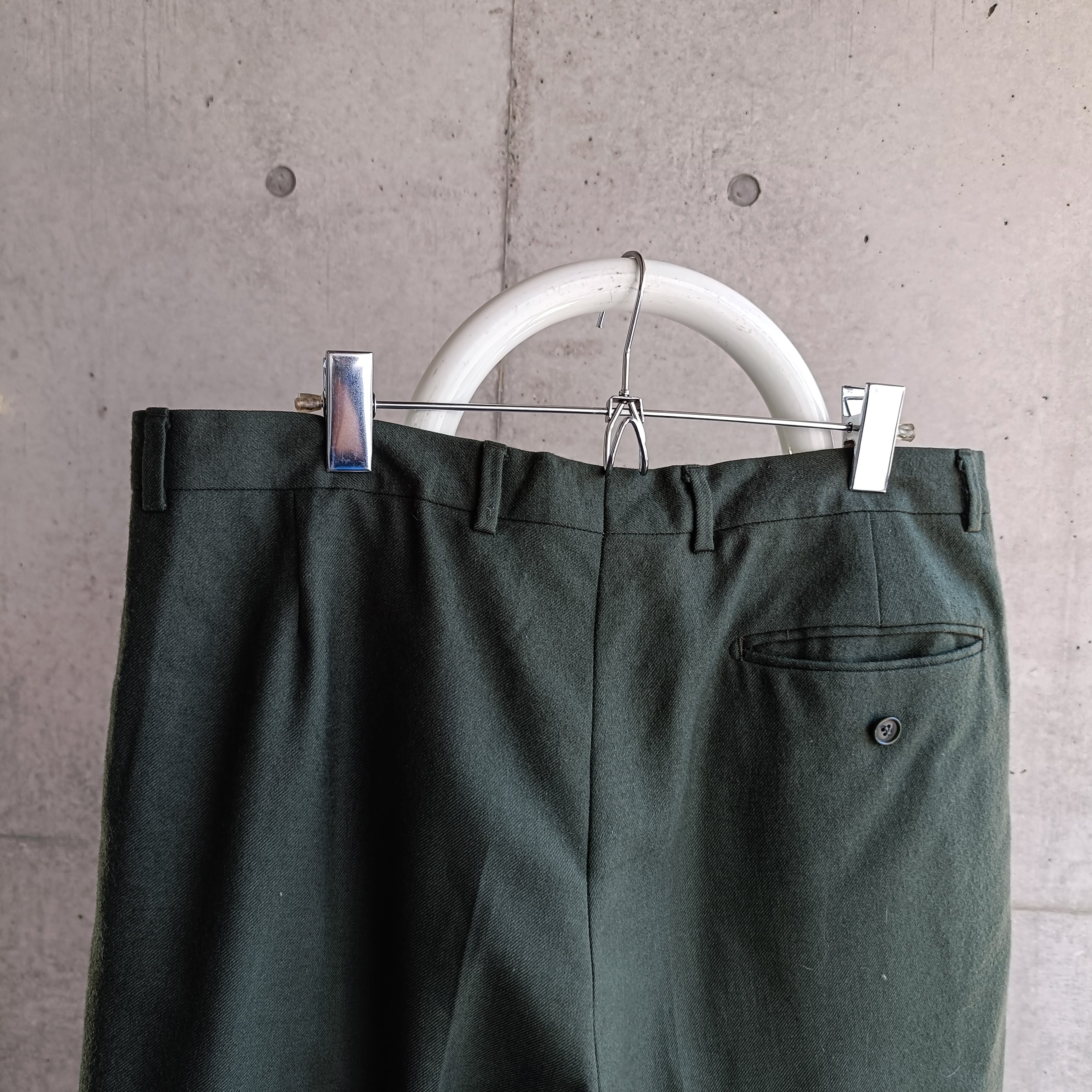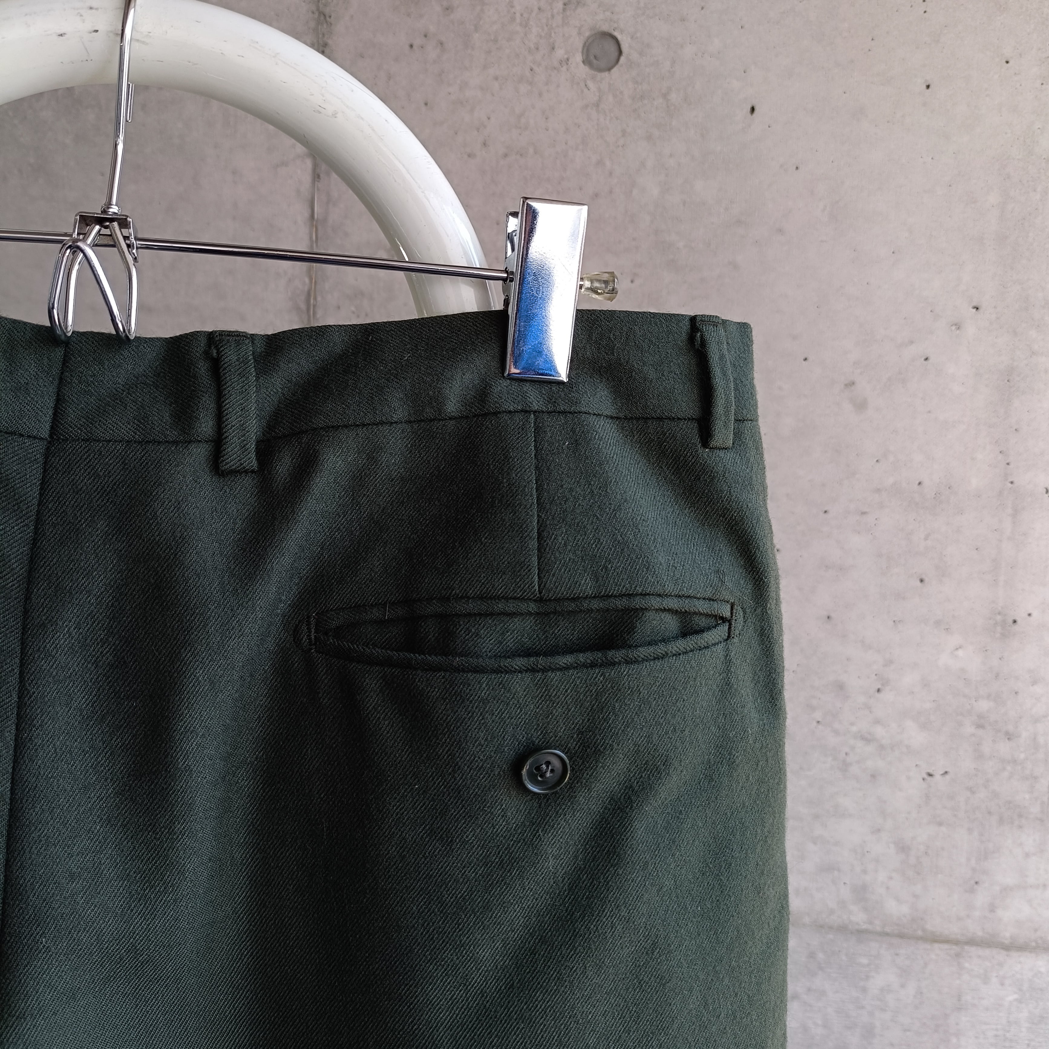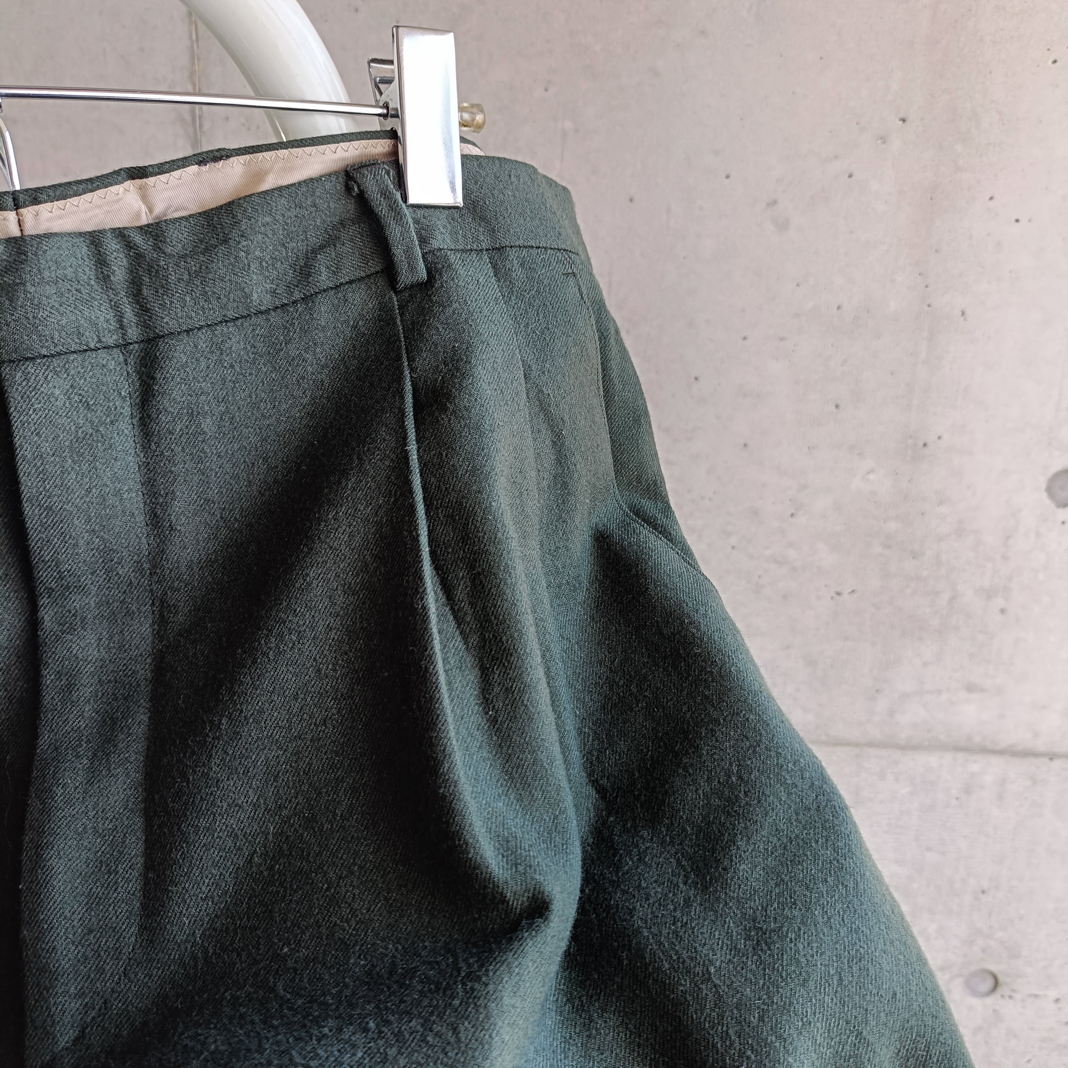 イタリア製のスラックス。希少なフランネルウール生地のスラックスです。色味はモスグリーン。2タック入り。シルエットも凄く綺麗です。