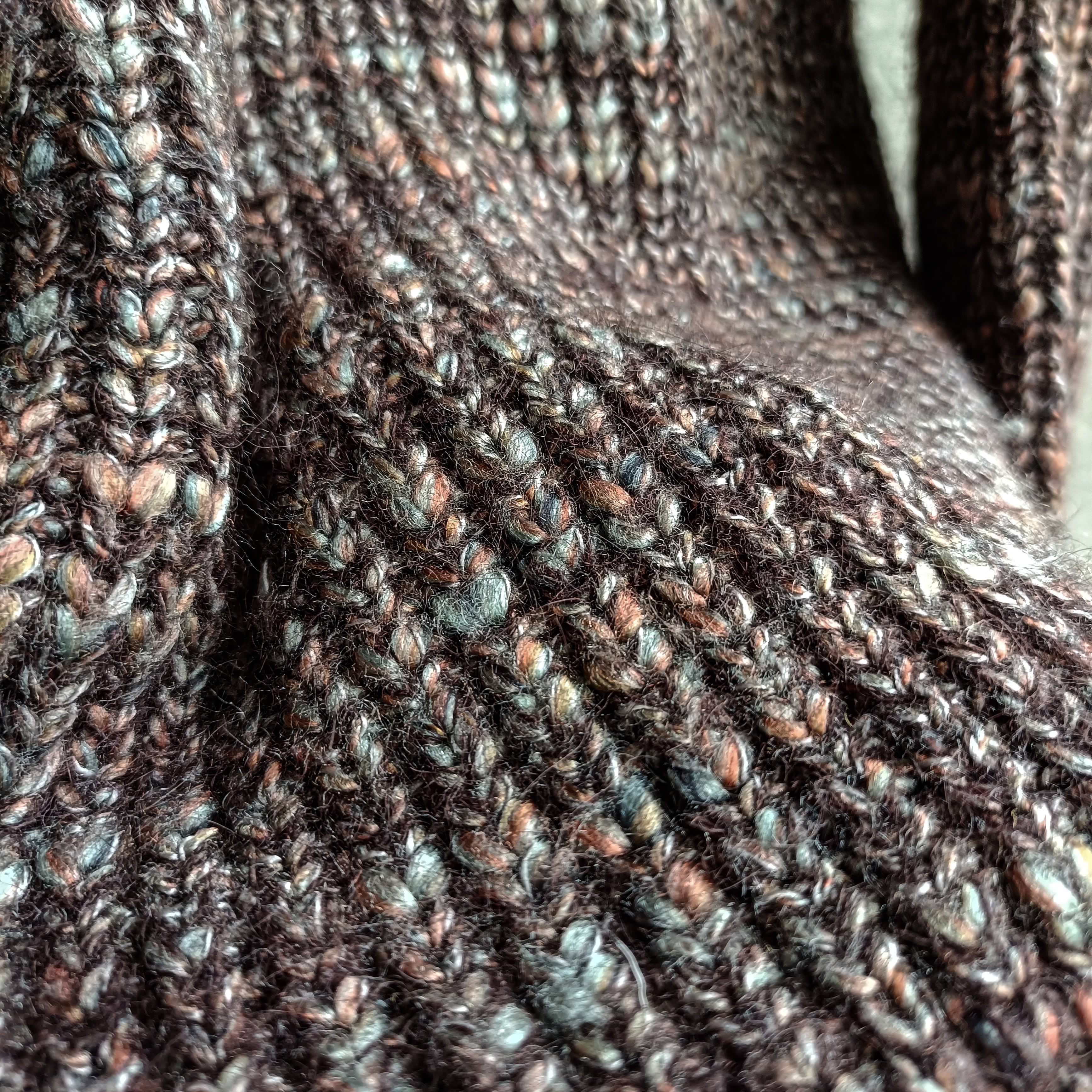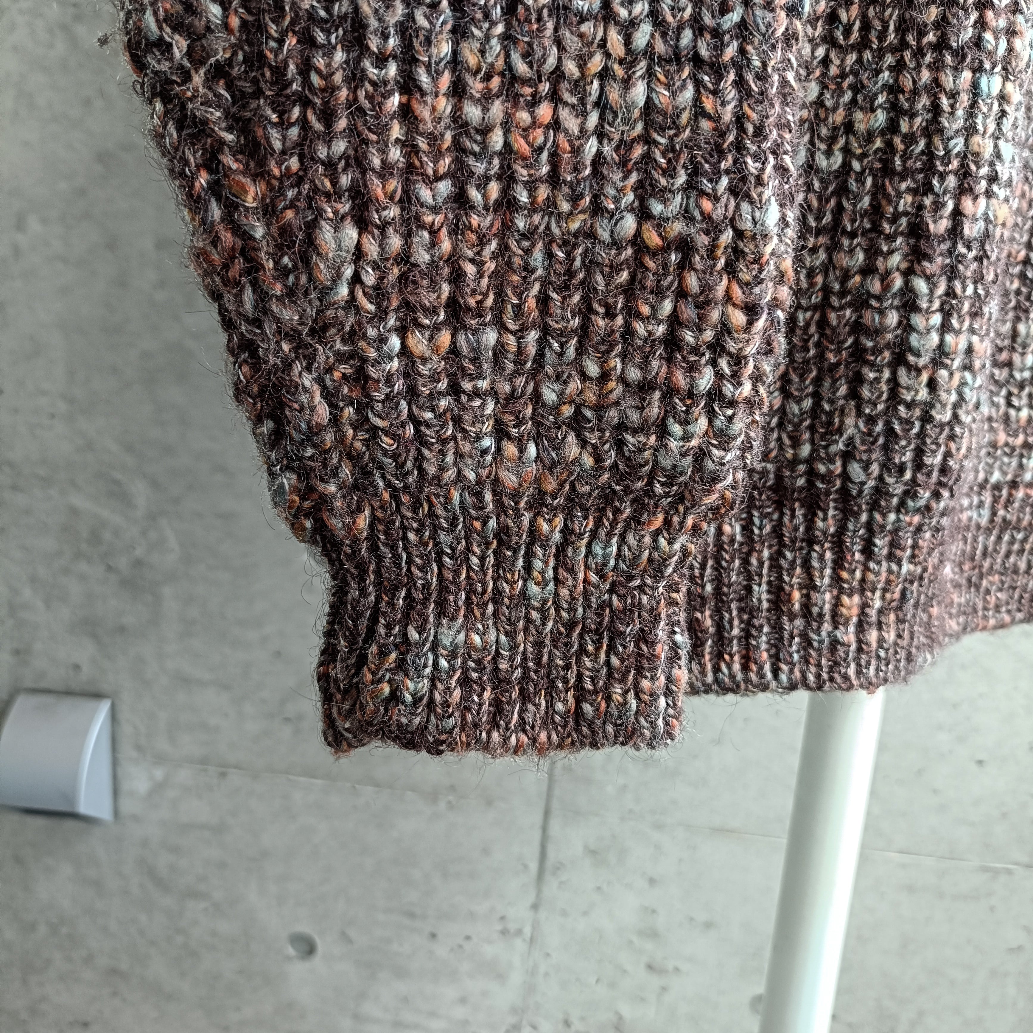 ブラウンとティファニーブルー色のチャンキーニット。探してますが全く見つからないチャンキーニットです。メンズが適度に緩く着れるサイズ感。