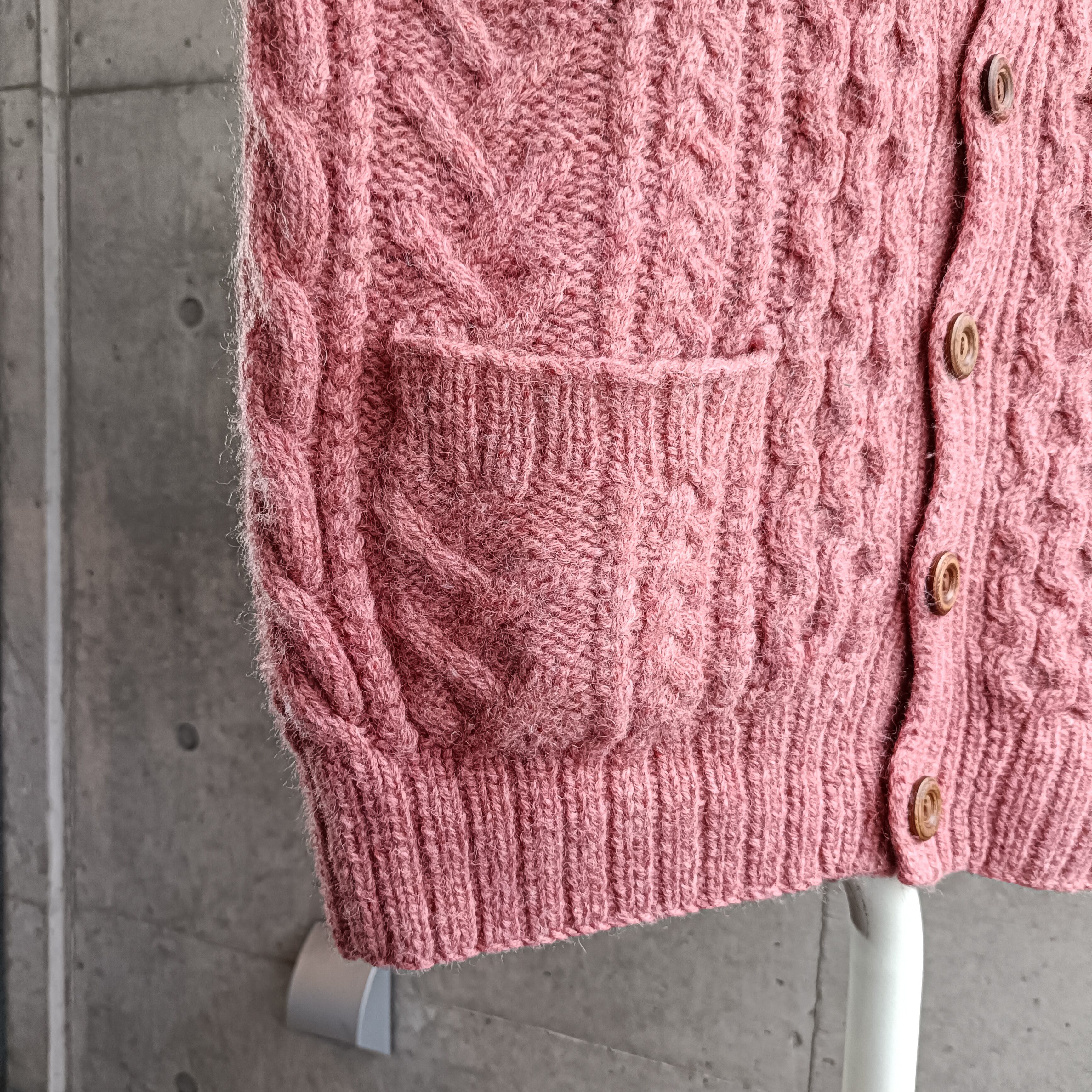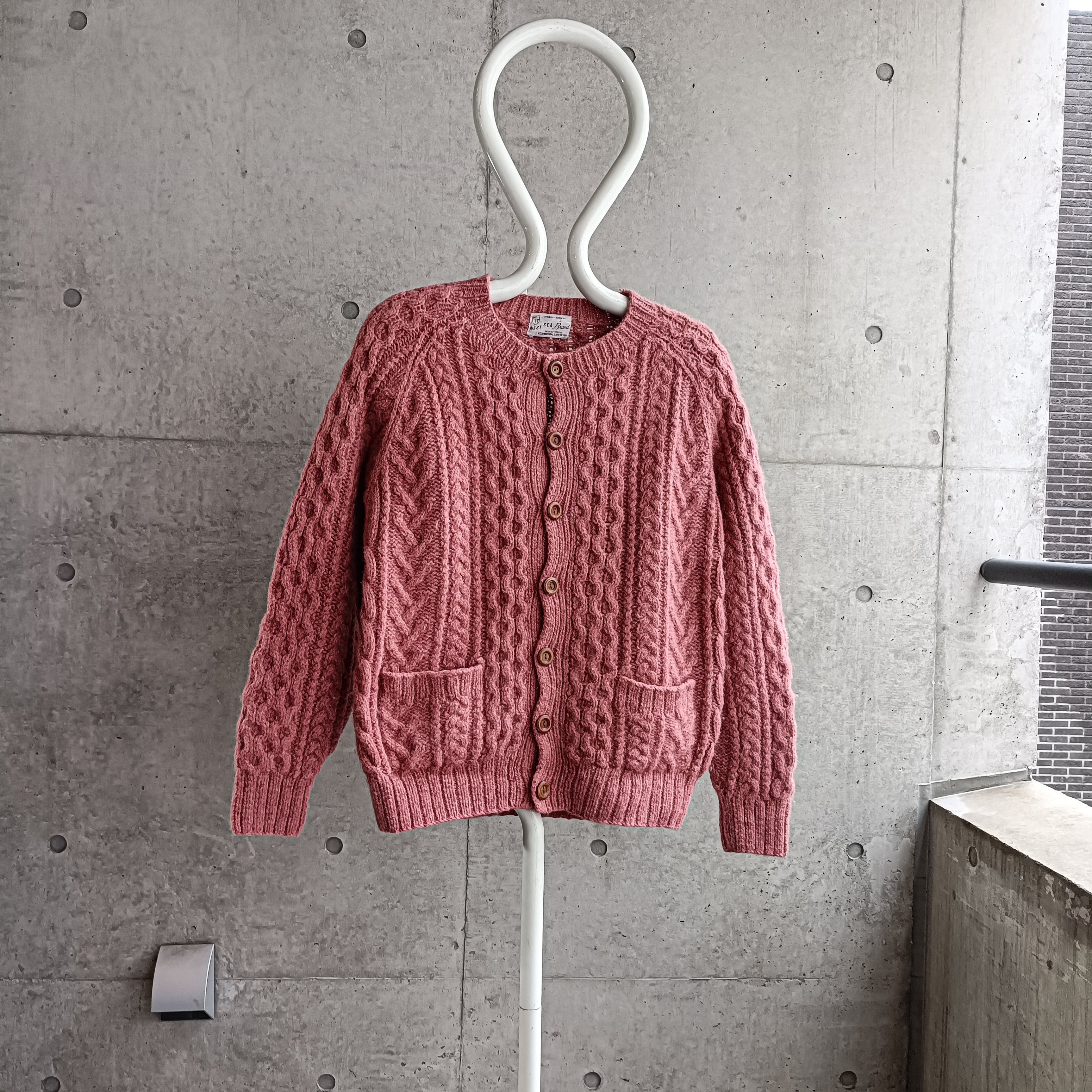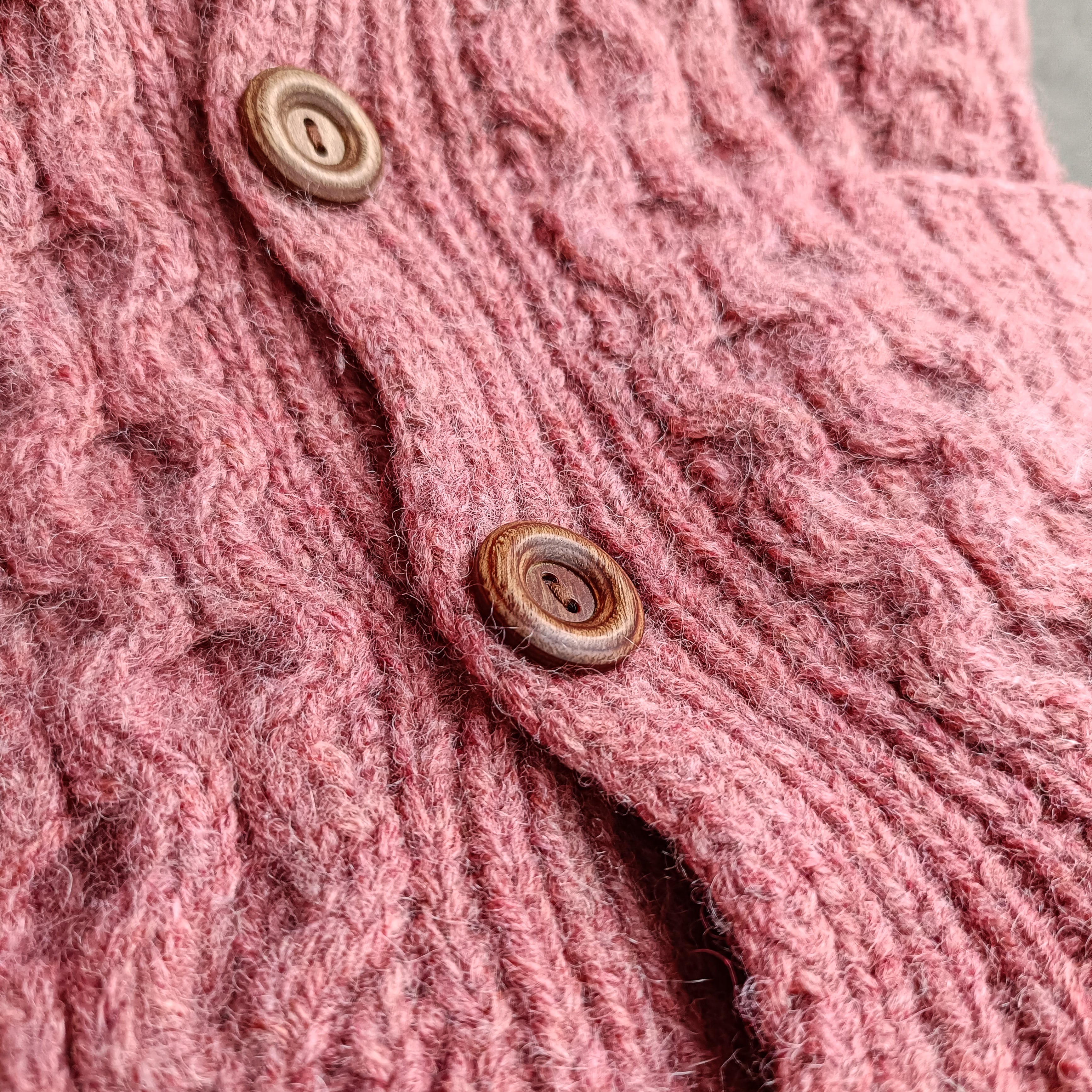 ベリーピンク色のケーブルニットカーディガン。カーディガンタイプなのが凄くいいです。ボタンもウッドボタン。裾リブ効いてて、好きな丈感で着用可能です。