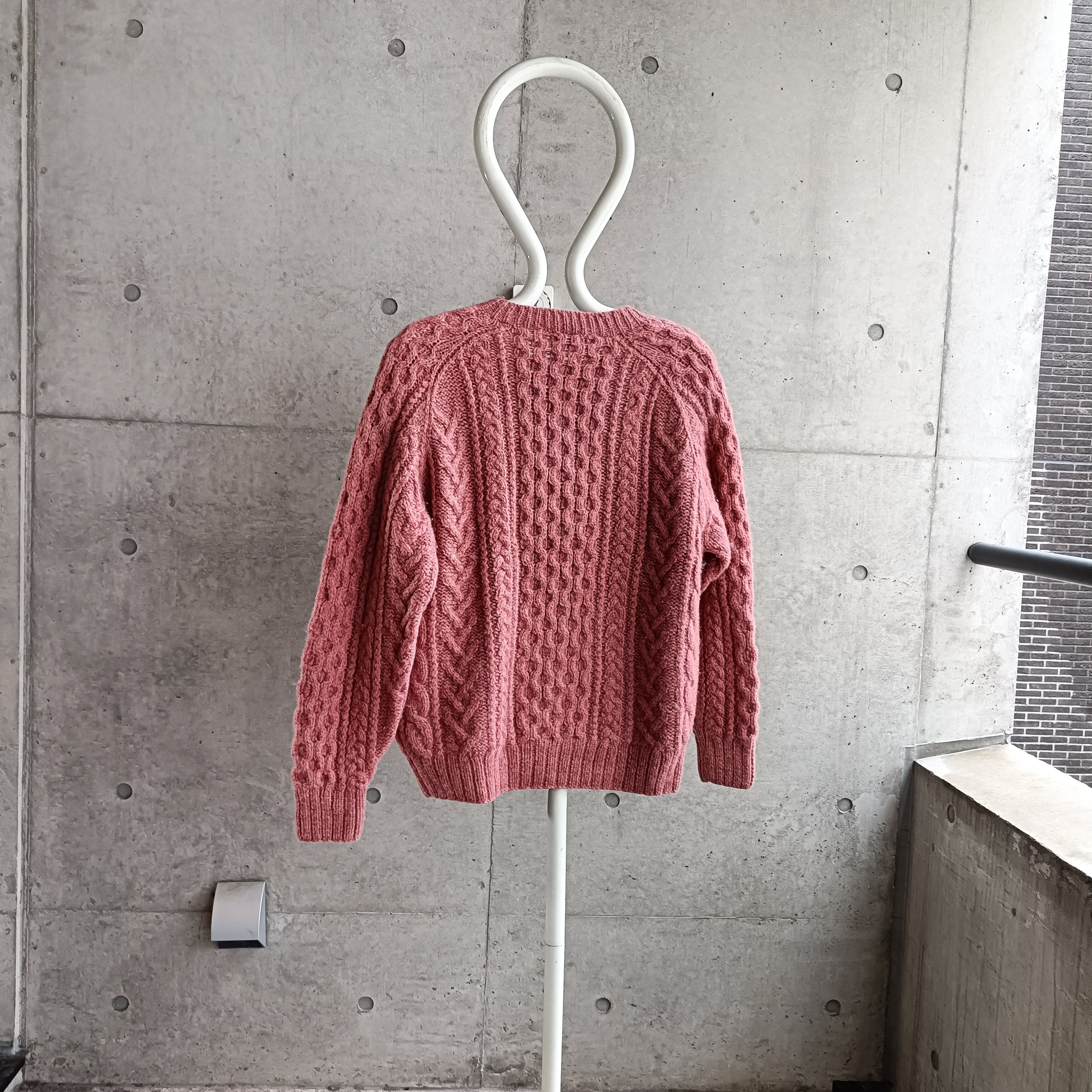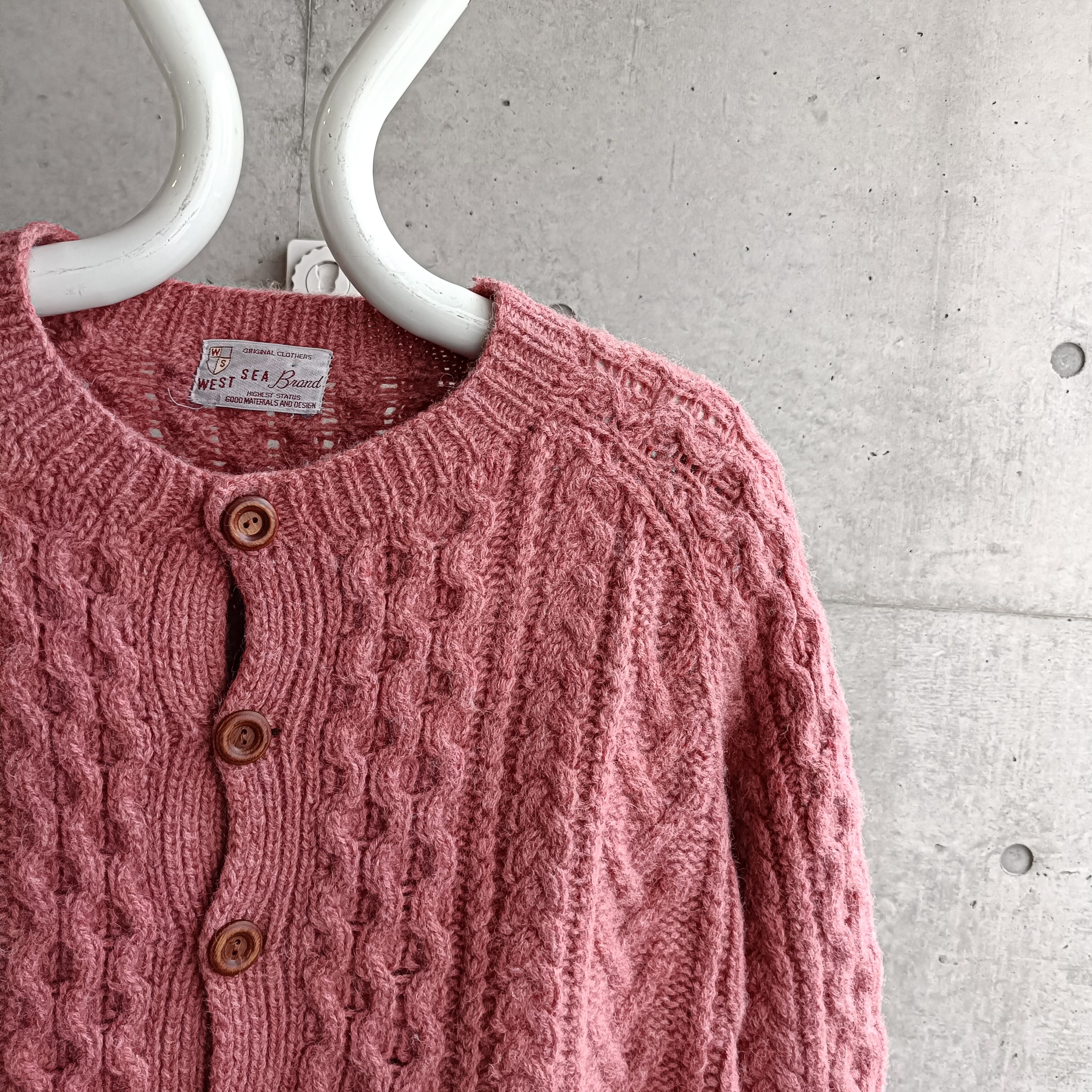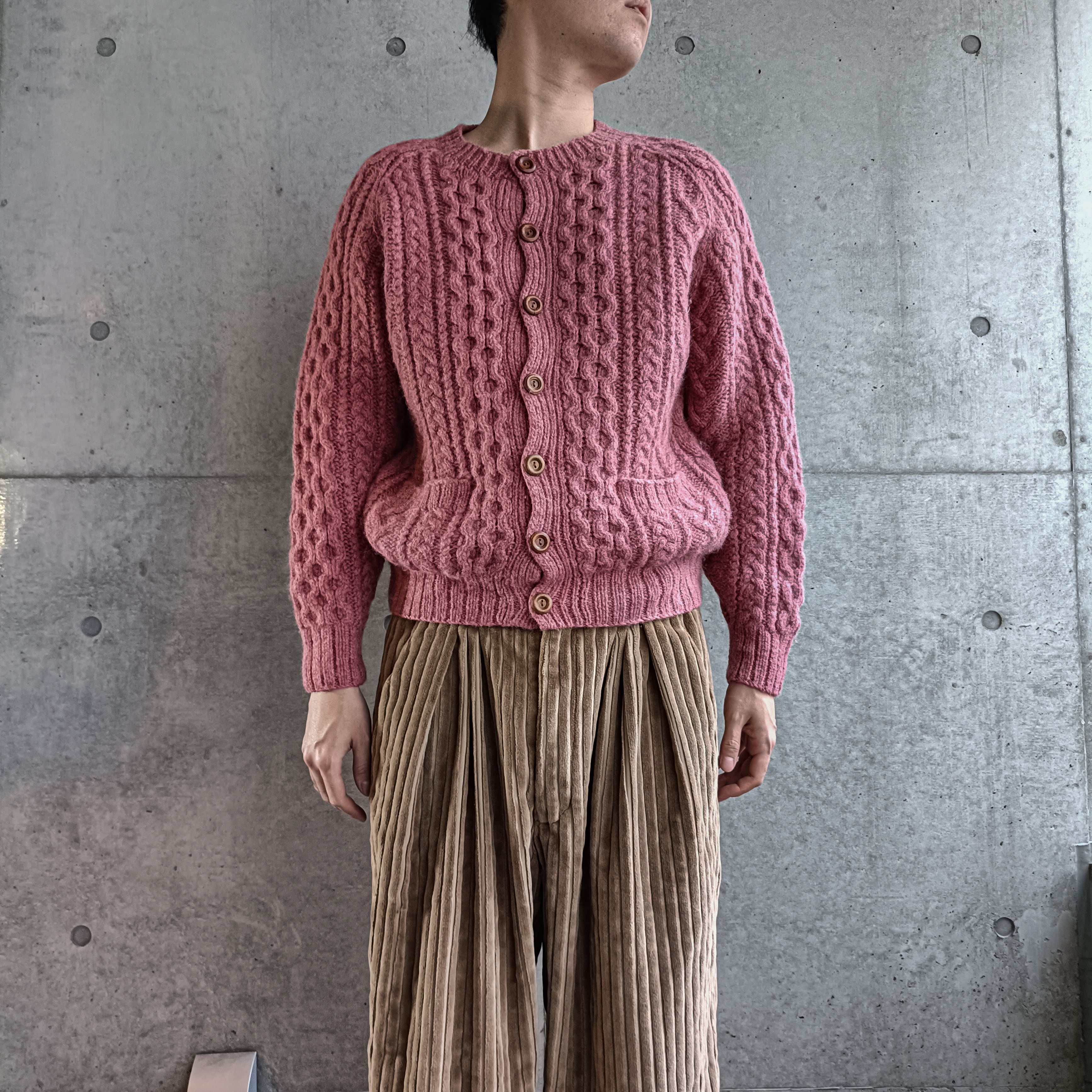 ベリーピンク色のケーブルニットカーディガン。カーディガンタイプなのが凄くいいです。ボタンもウッドボタン。裾リブ効いてて、好きな丈感で着用可能です。