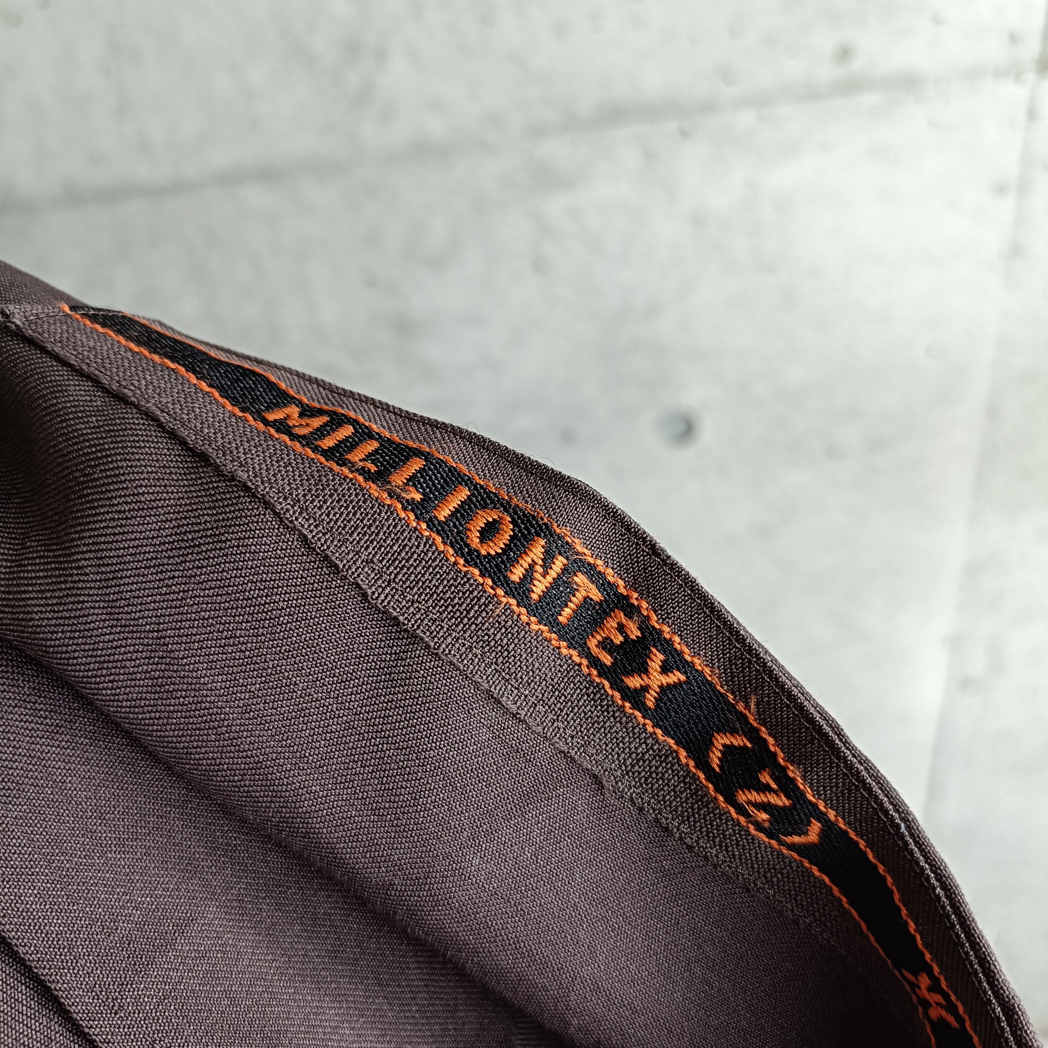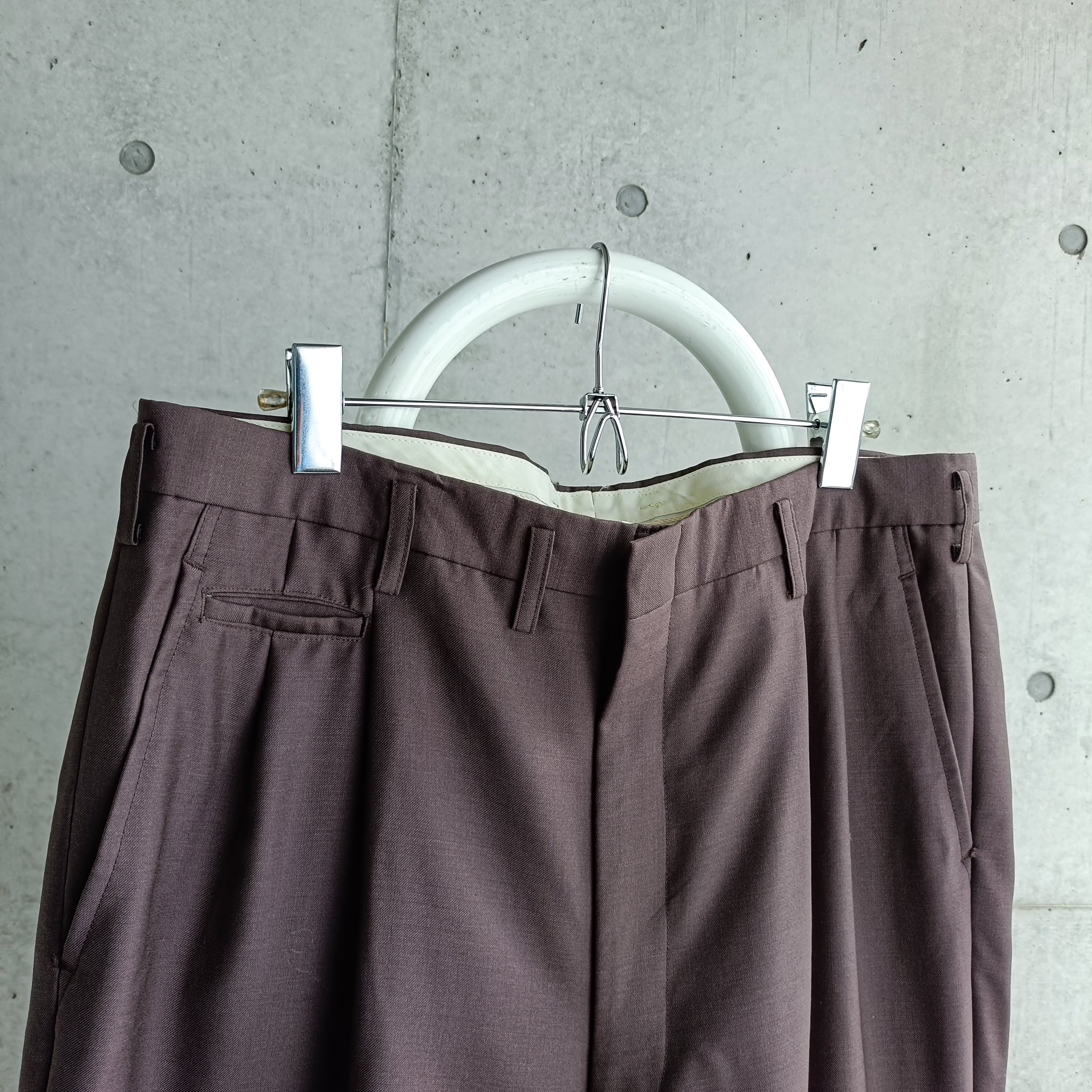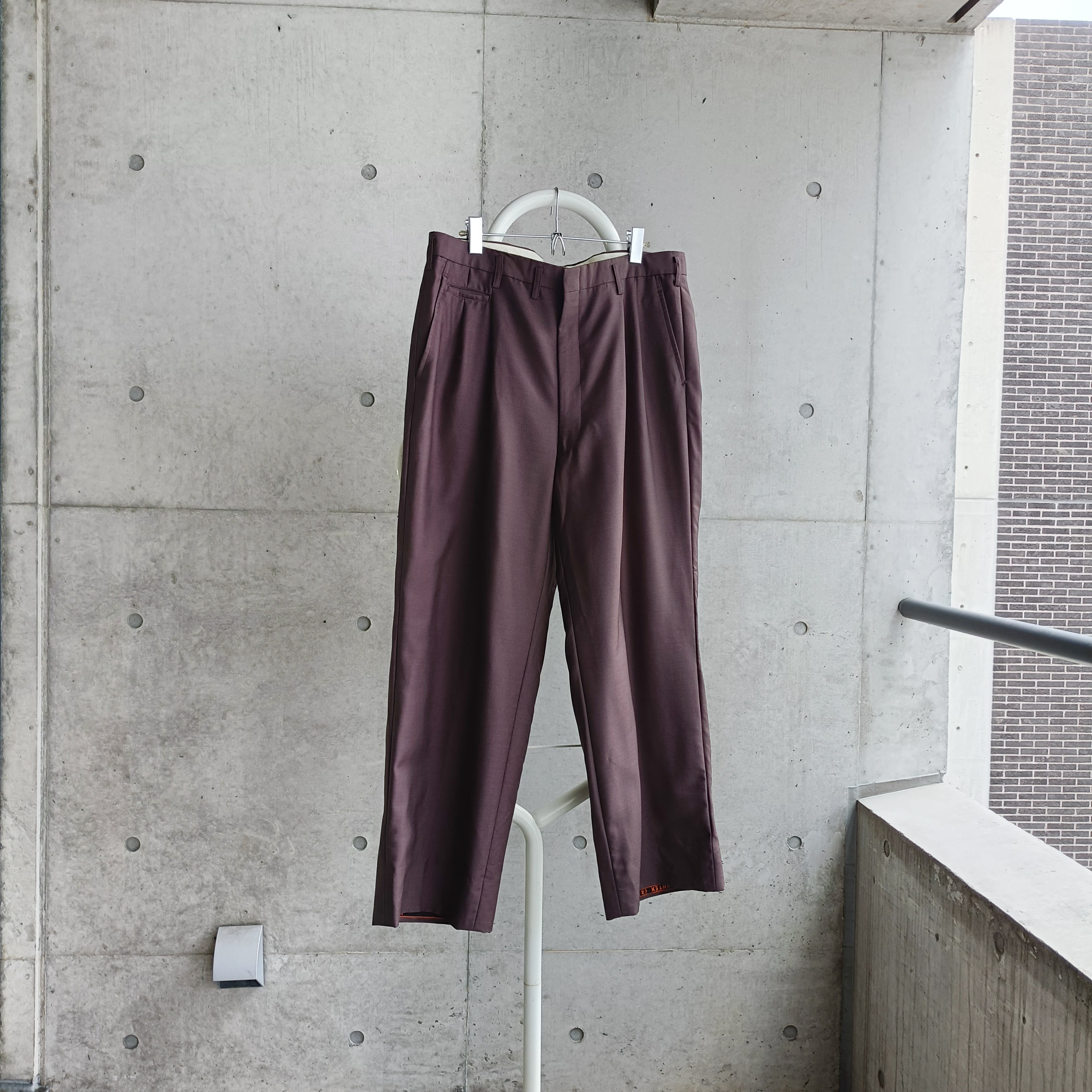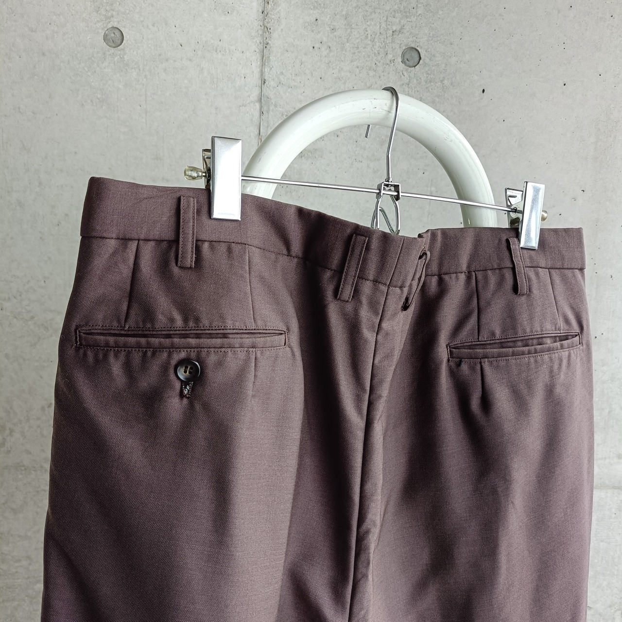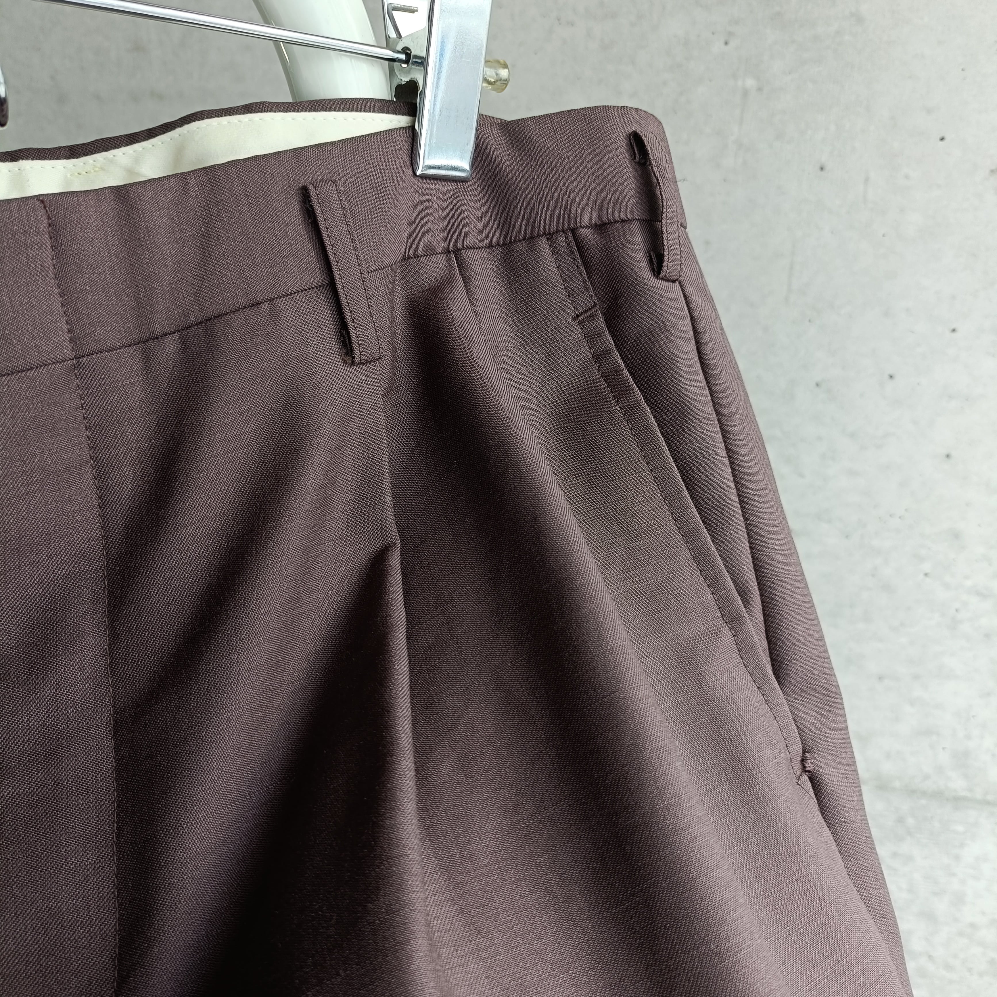 アズキ色のウールスラックス。生地からオーダーメイドで作られたスラックスです。探しても中々ない絶妙な色味。わたりが広くて、少しテーパードしている王道なシルエットです。小柄なメンズ向けサイズです。