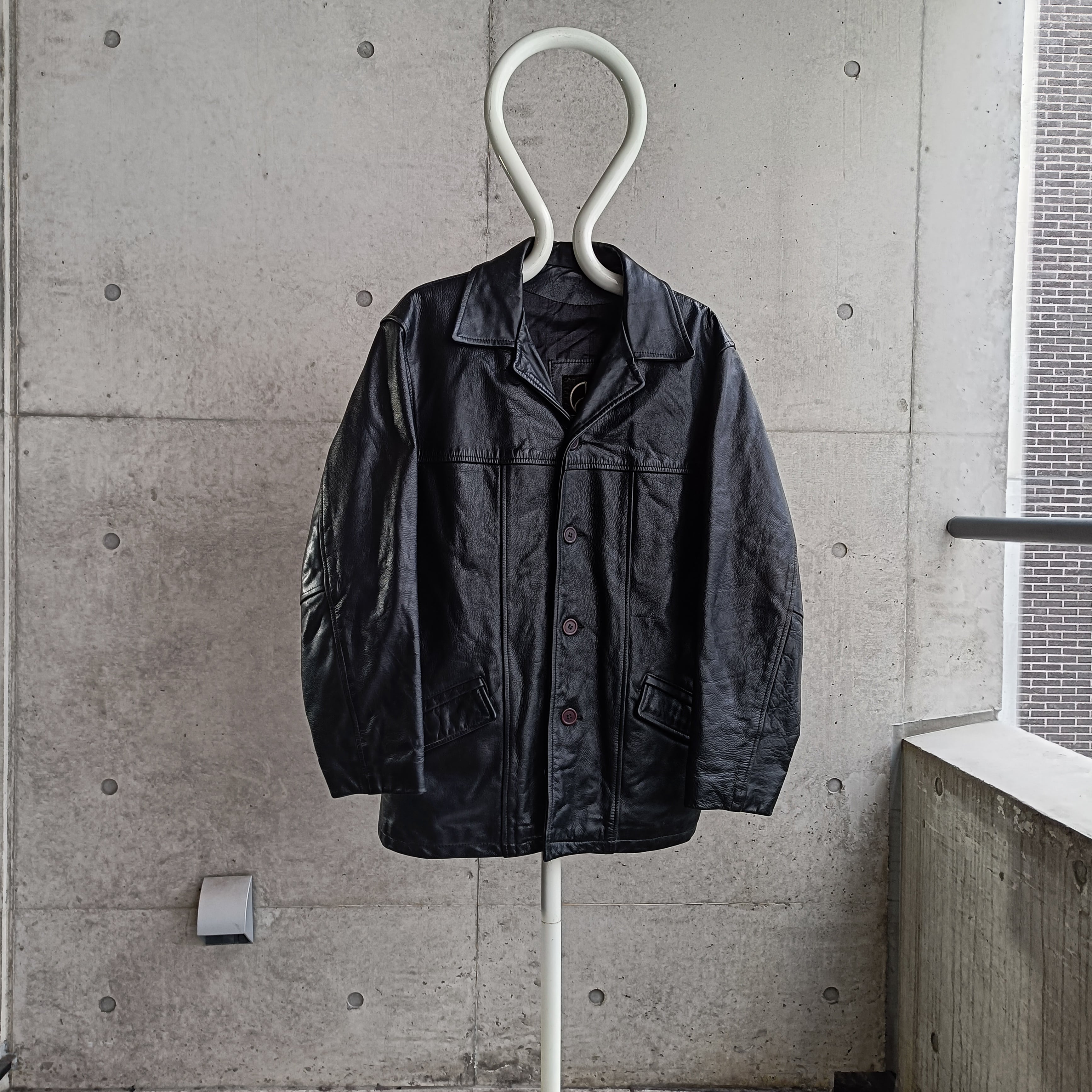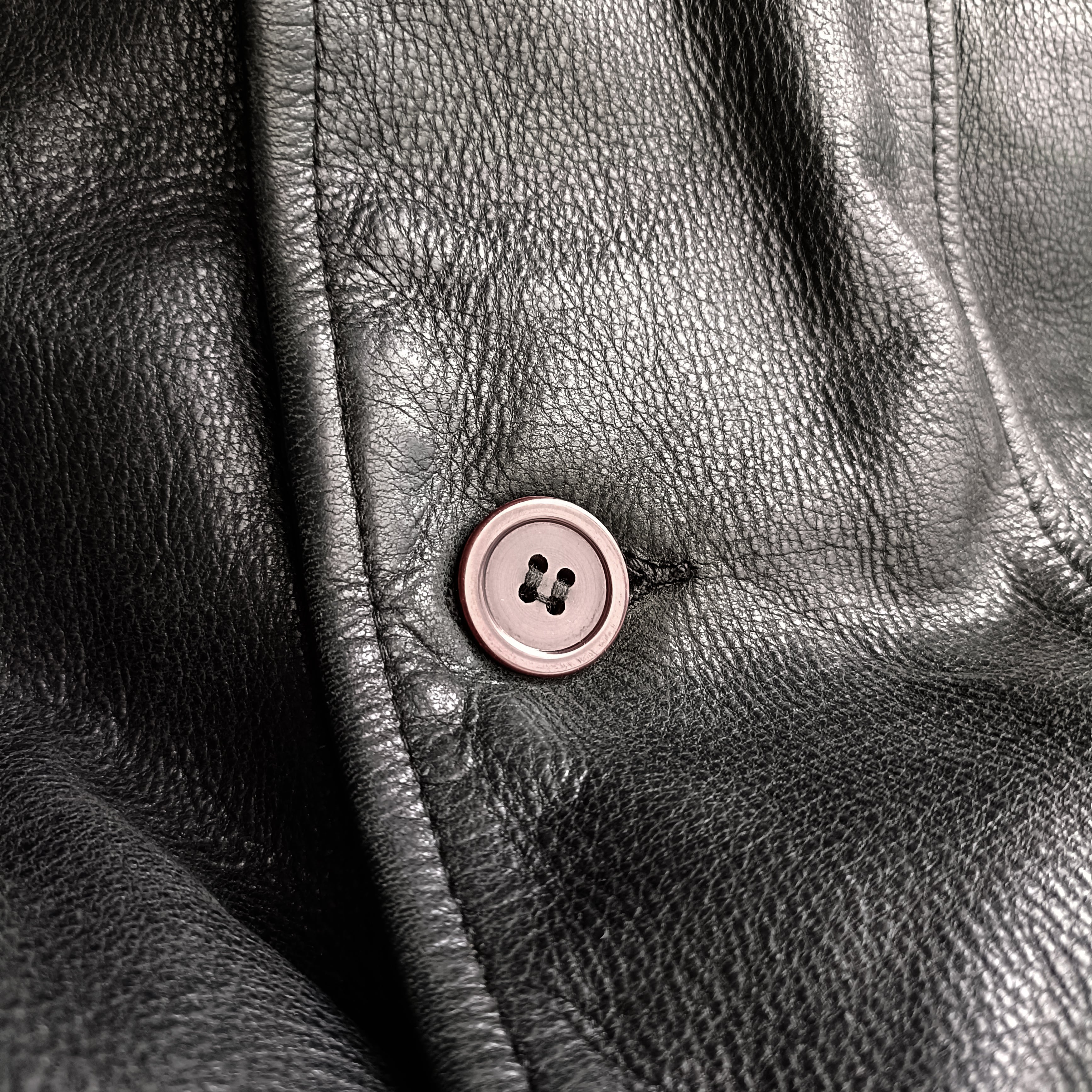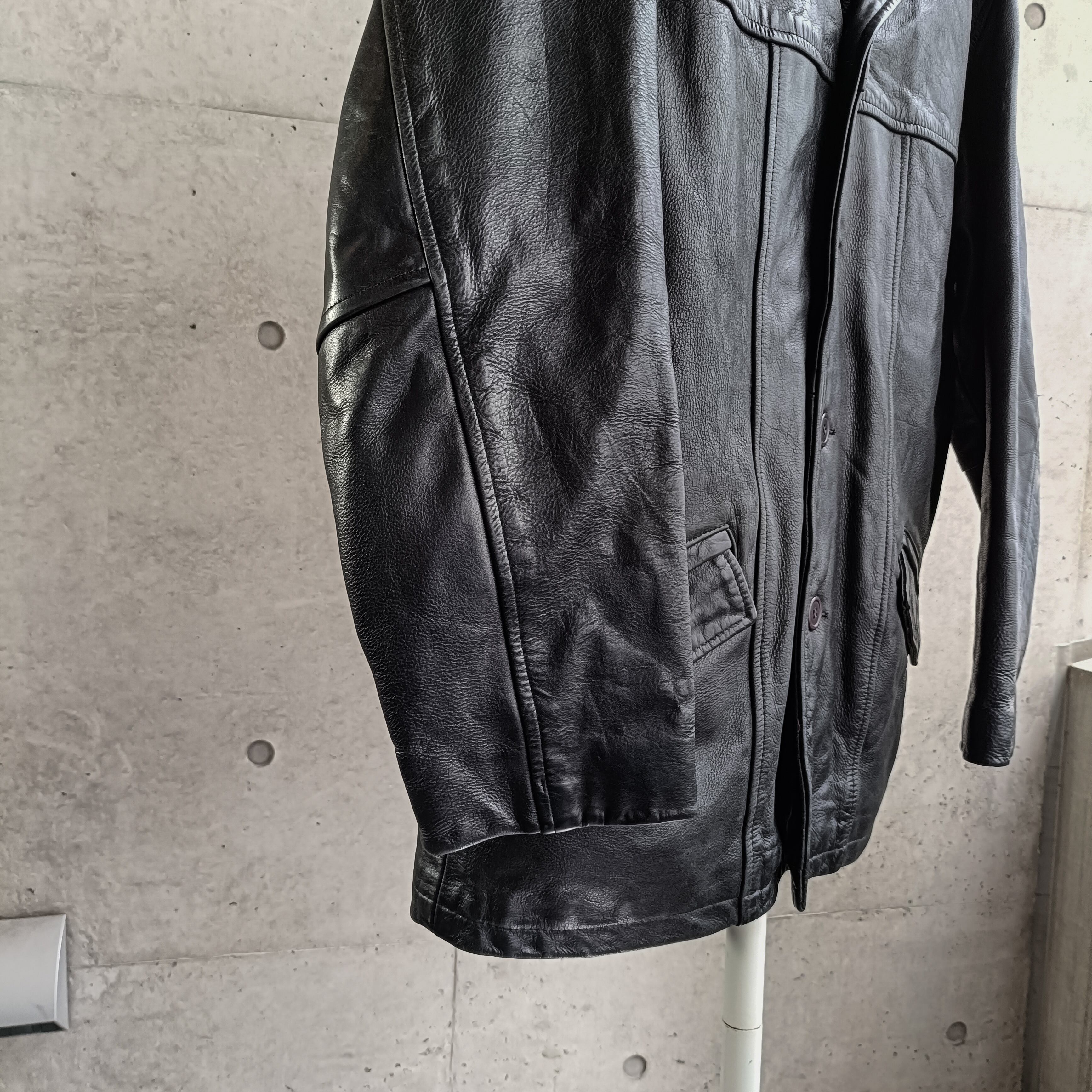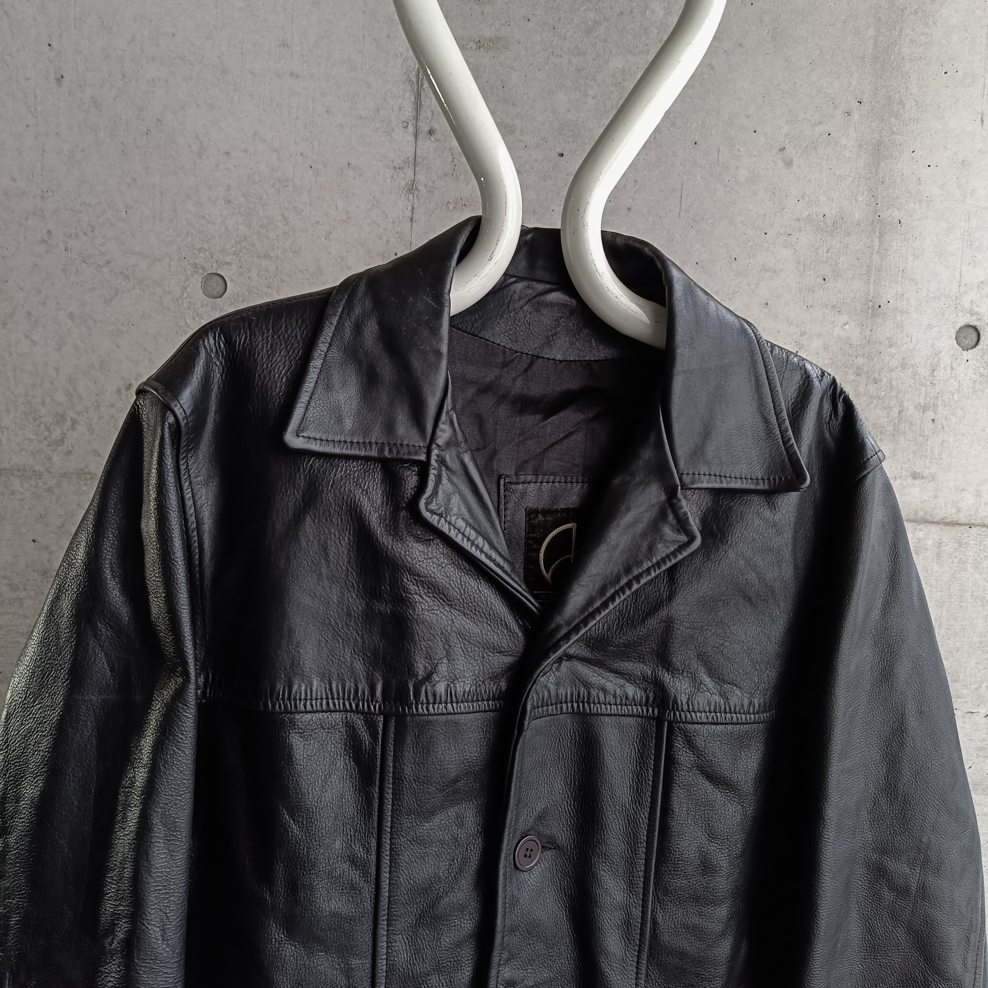 vintage black grained leather tailored coat